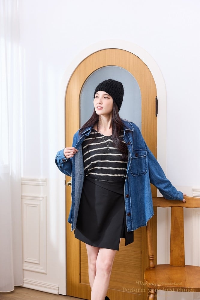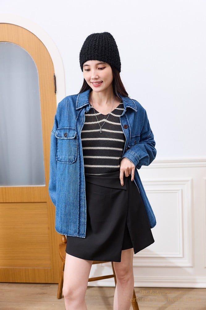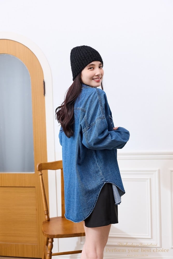 2501-113 水洗牛仔棉微刷破造型外套(2色)
