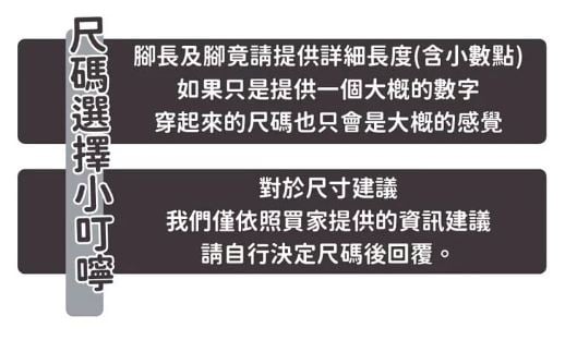 裸腳/穿襪子建議可依照正常尺寸挑選!