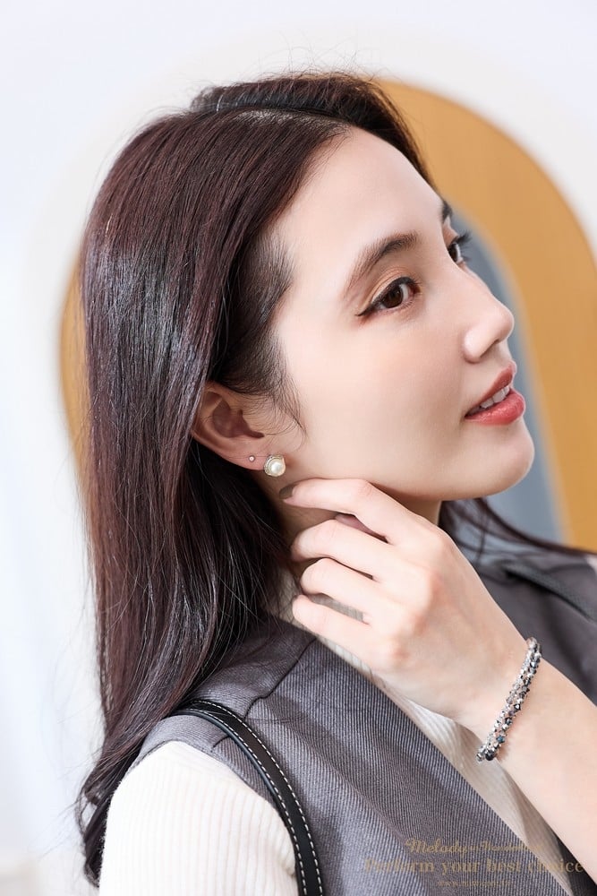 亮鑽鋯石/8mm施華洛世奇水晶珍珠/純銀耳針