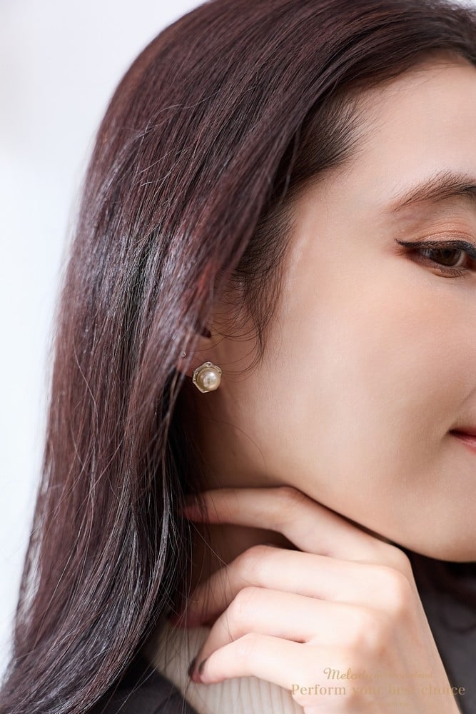 六邊璀鑽鑲珍珠造型耳環