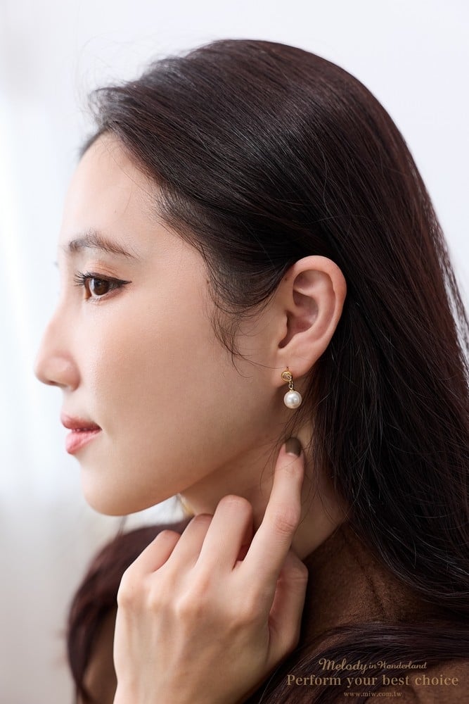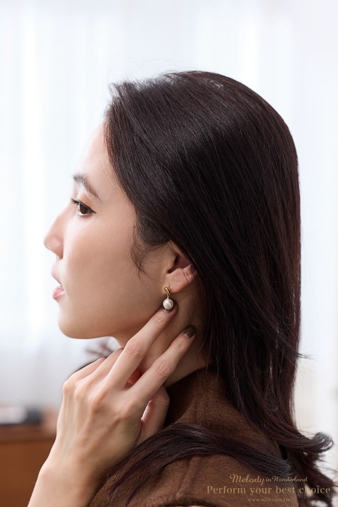 亮鑽鋯石/8mm施華洛世奇水晶珍珠/純銀耳針