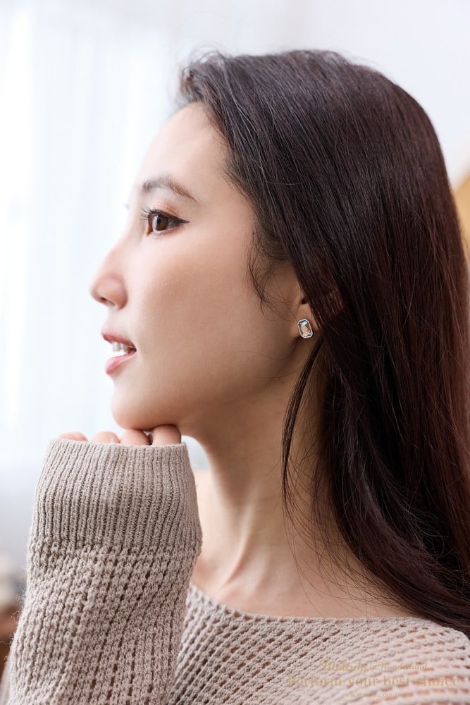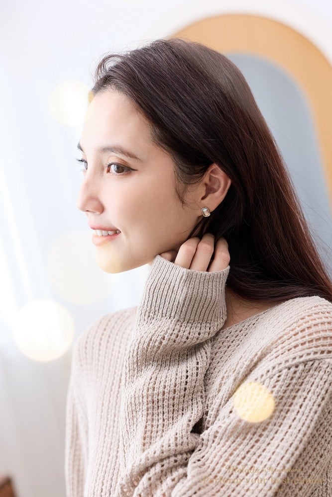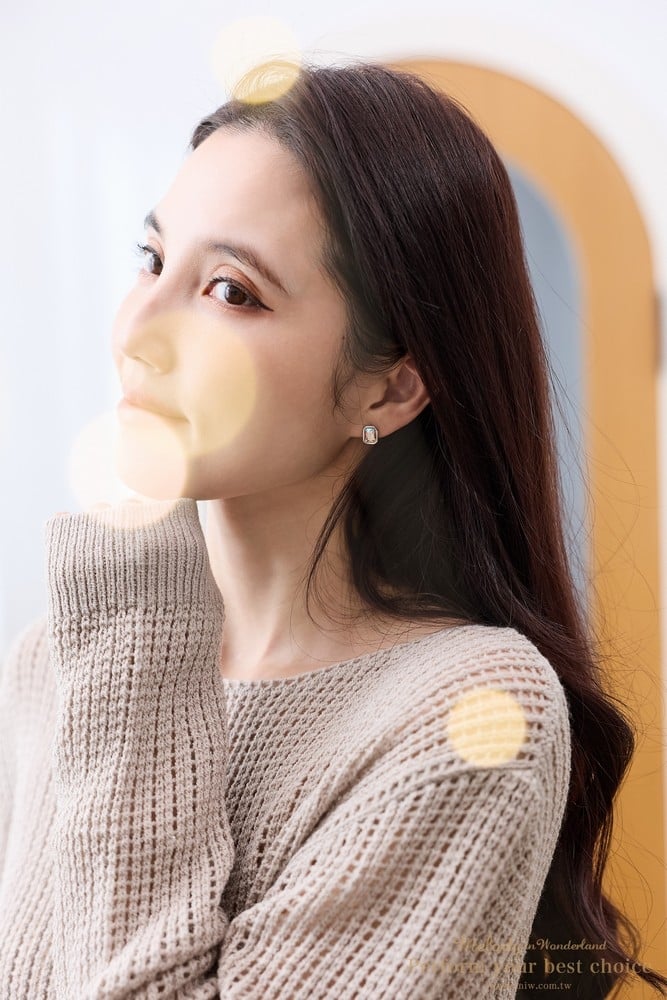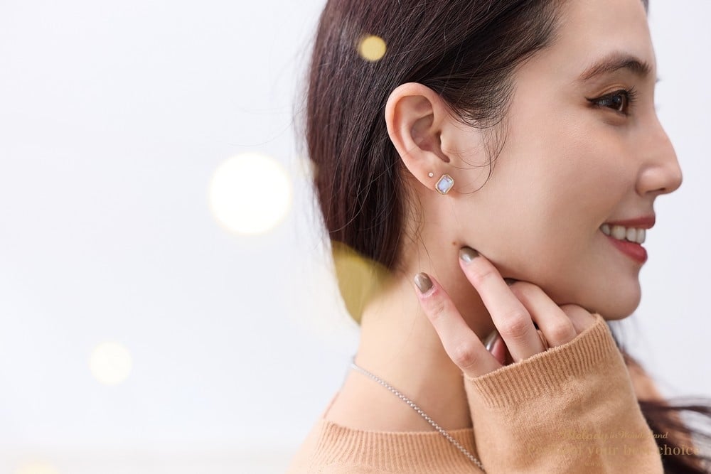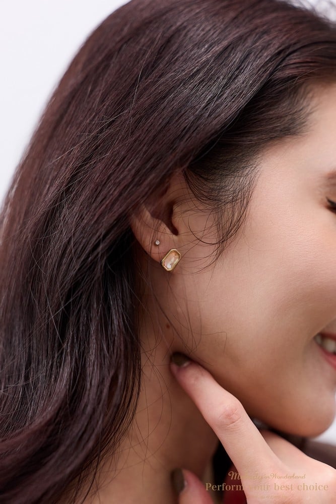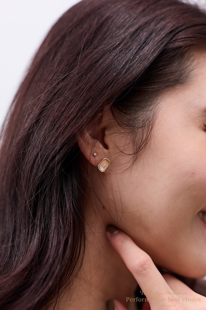 施華洛世奇8x5.5方鑽水晶/純銀耳針