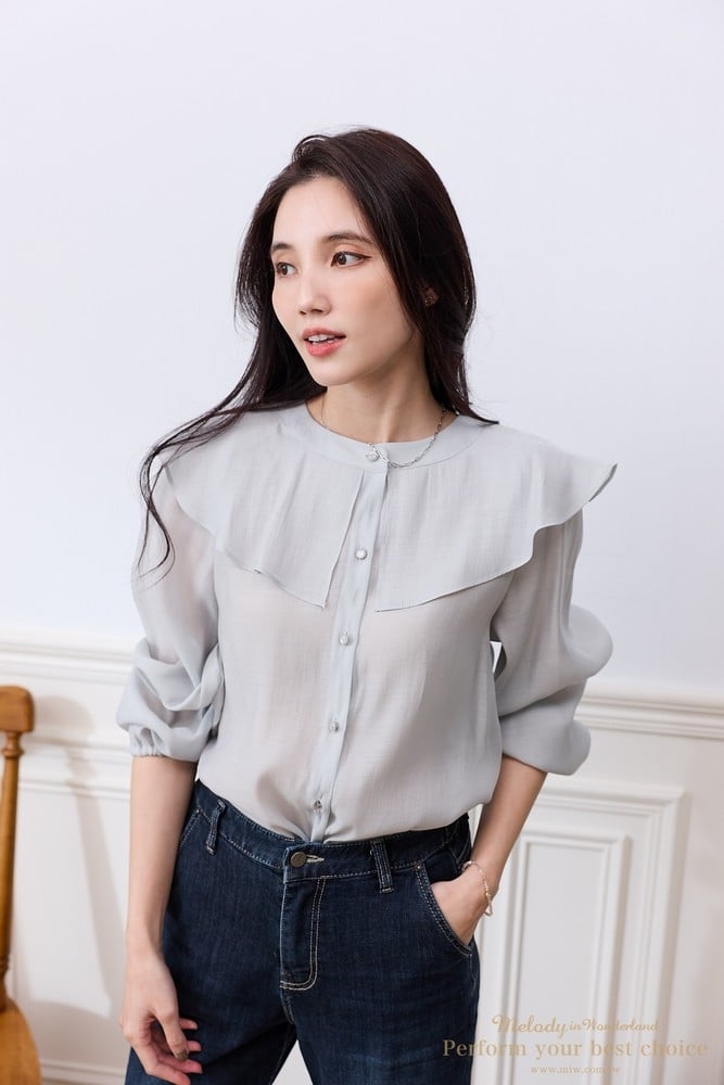 2511-001 質感兩面穿荷葉領上衣(3色)