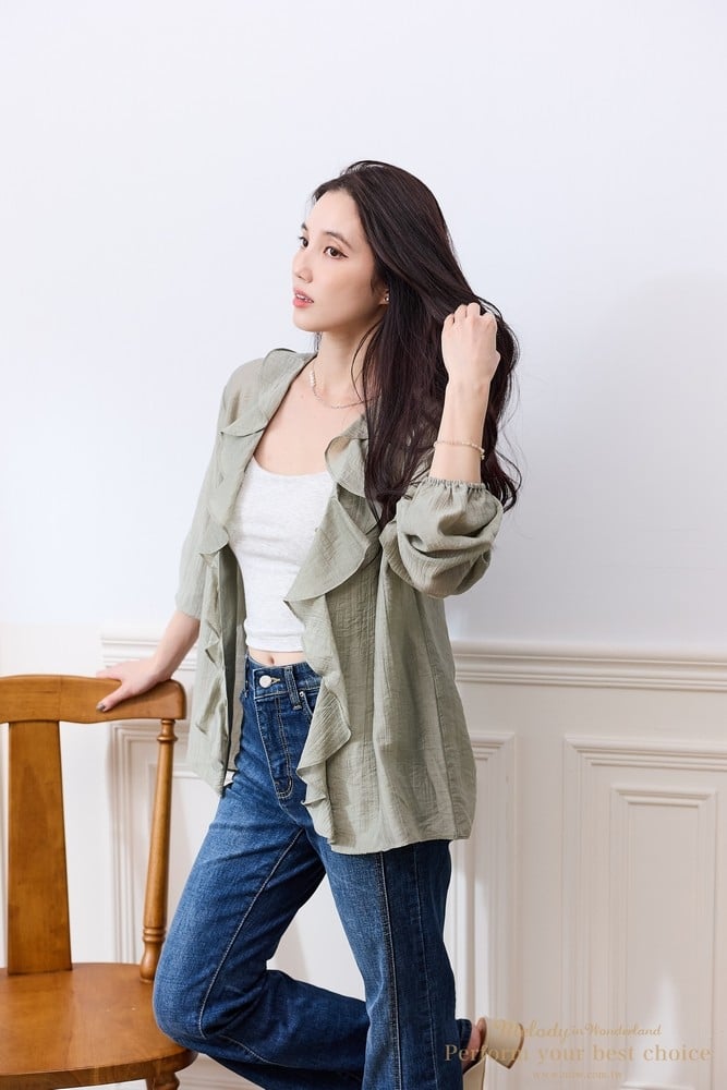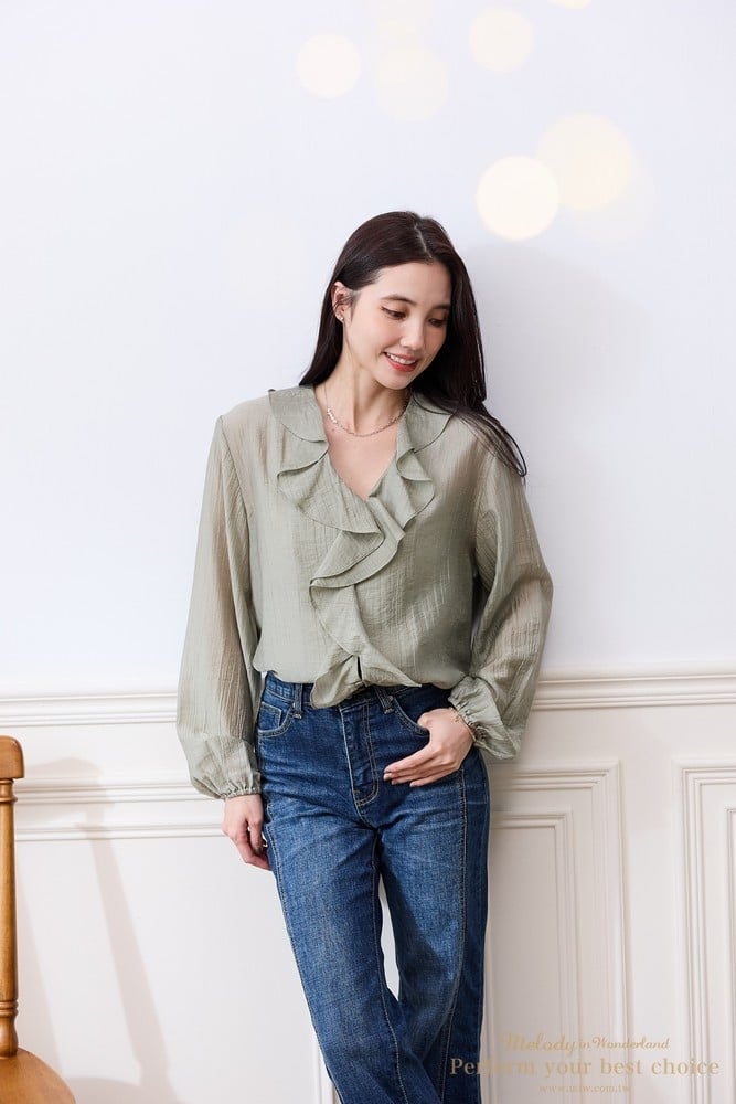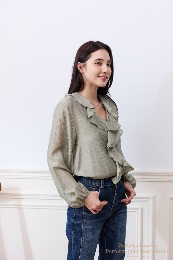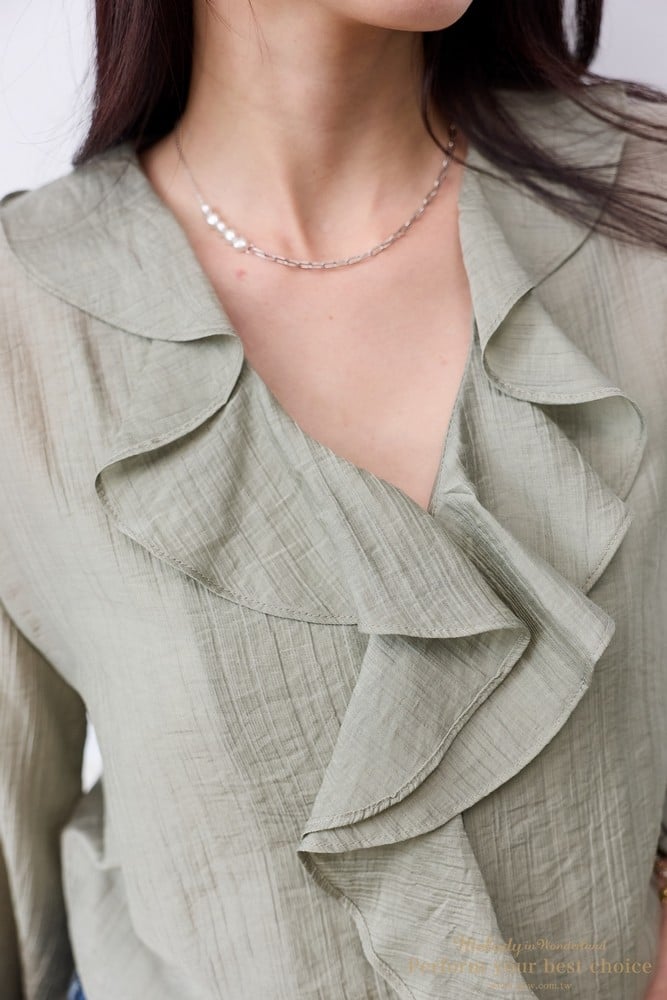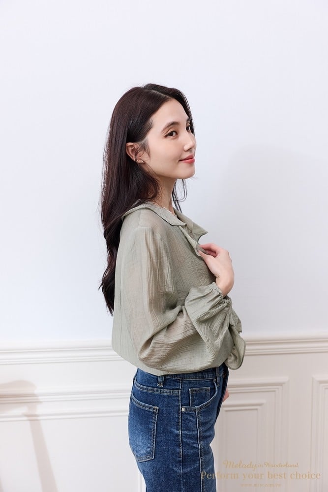2511-005 2WAY荷葉領造型袖口鬆緊上衣(3色)