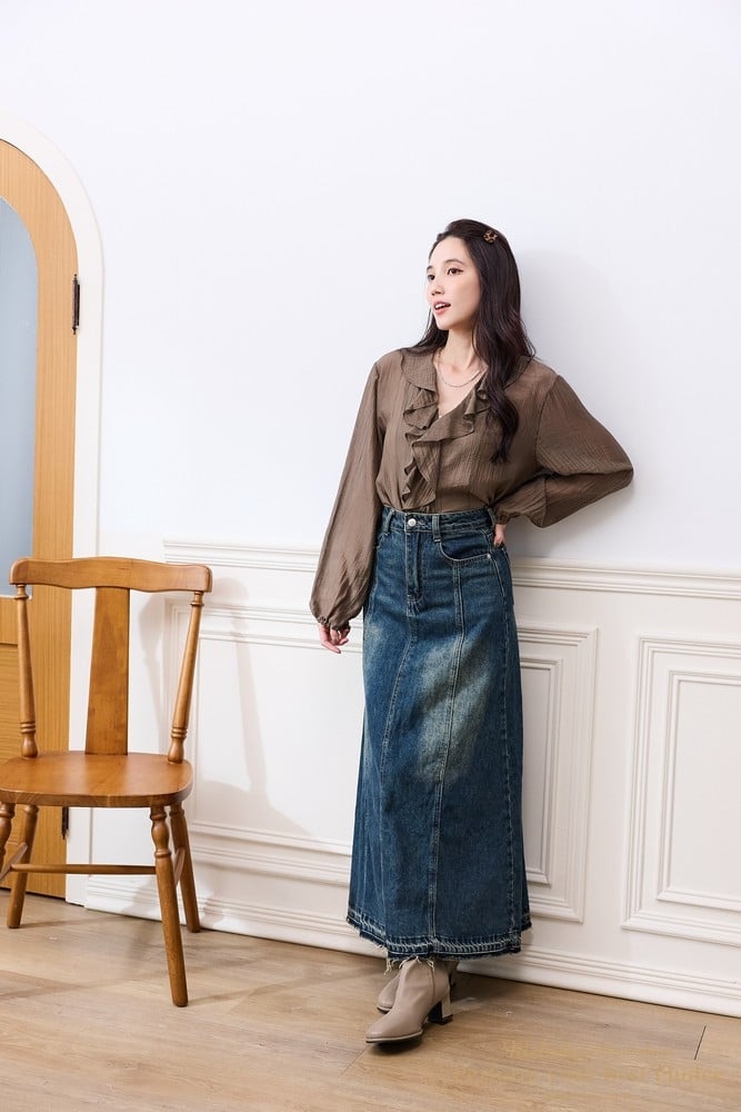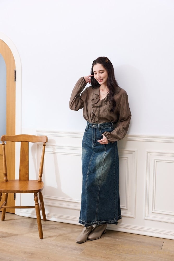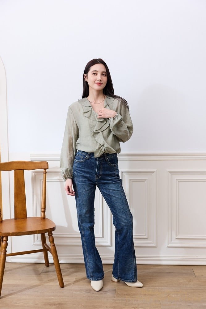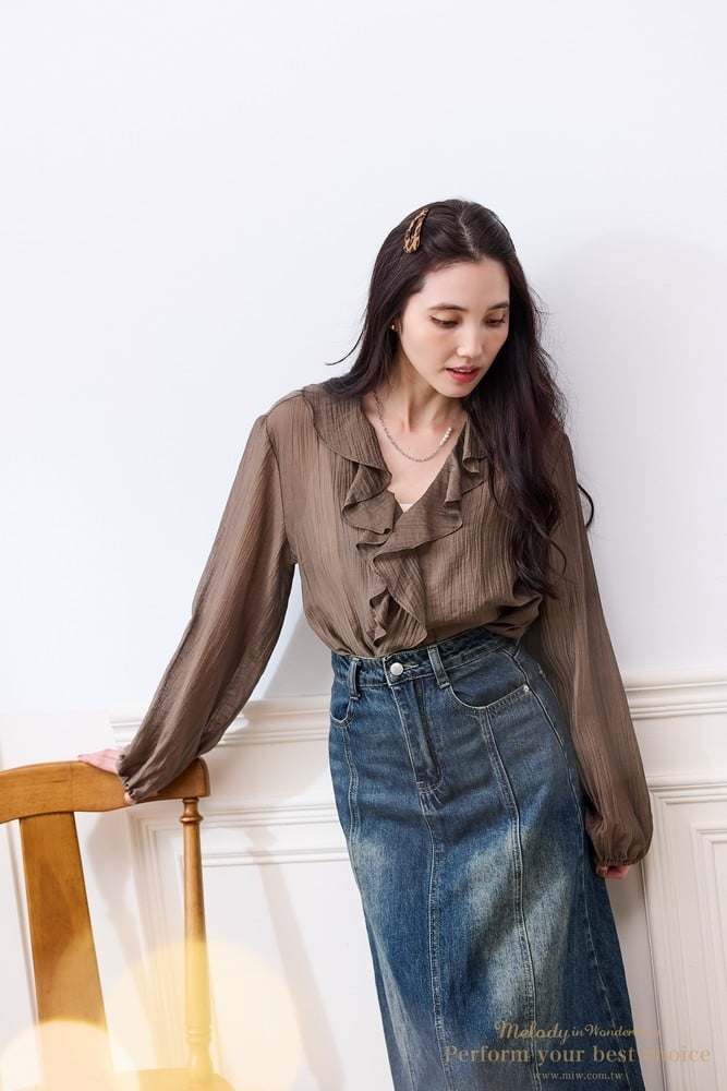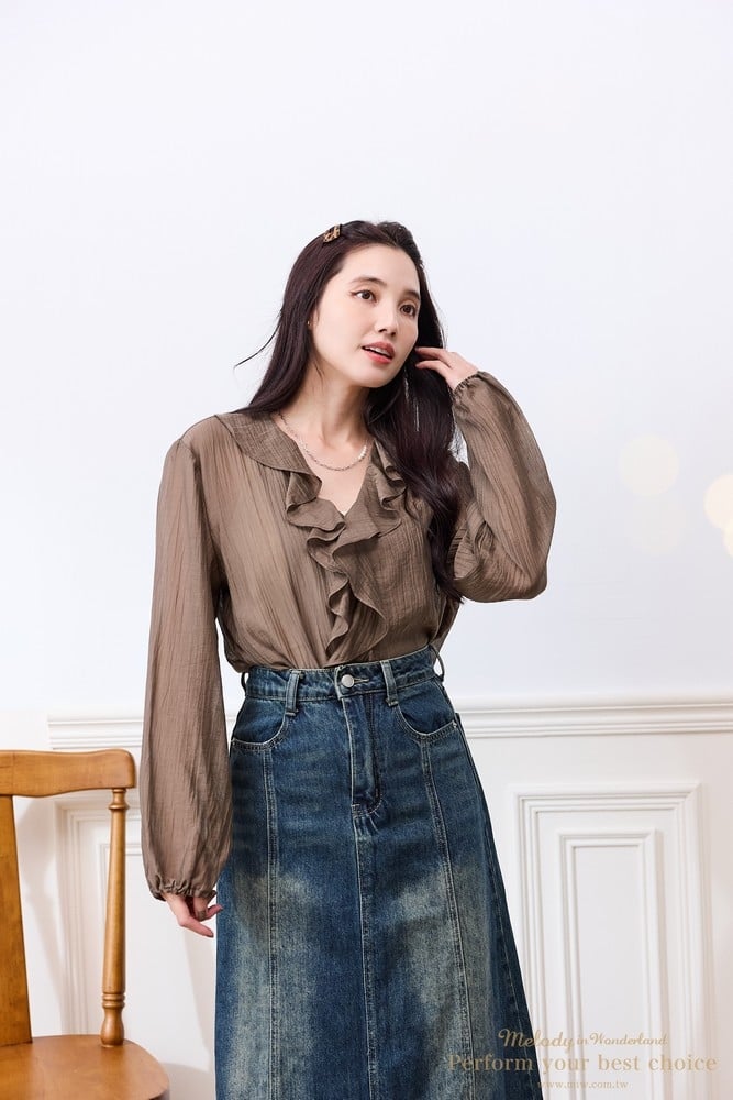 2511-005 2WAY荷葉領造型袖口鬆緊上衣(3色)
