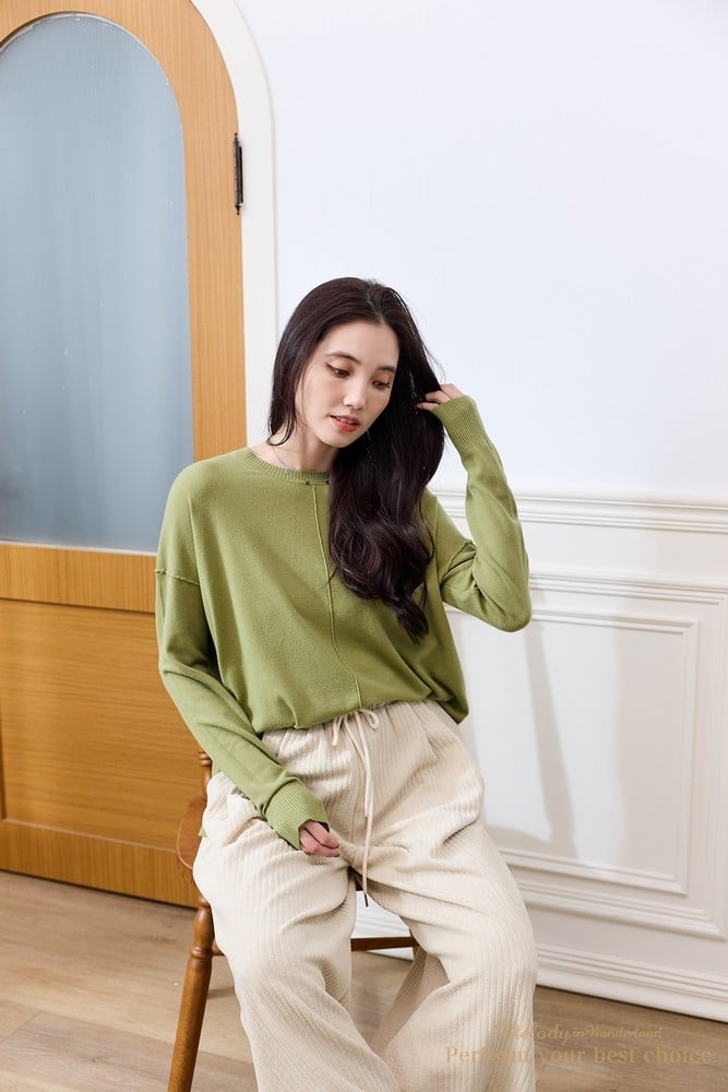 圓領立體外車線羊絨上衣(5色)