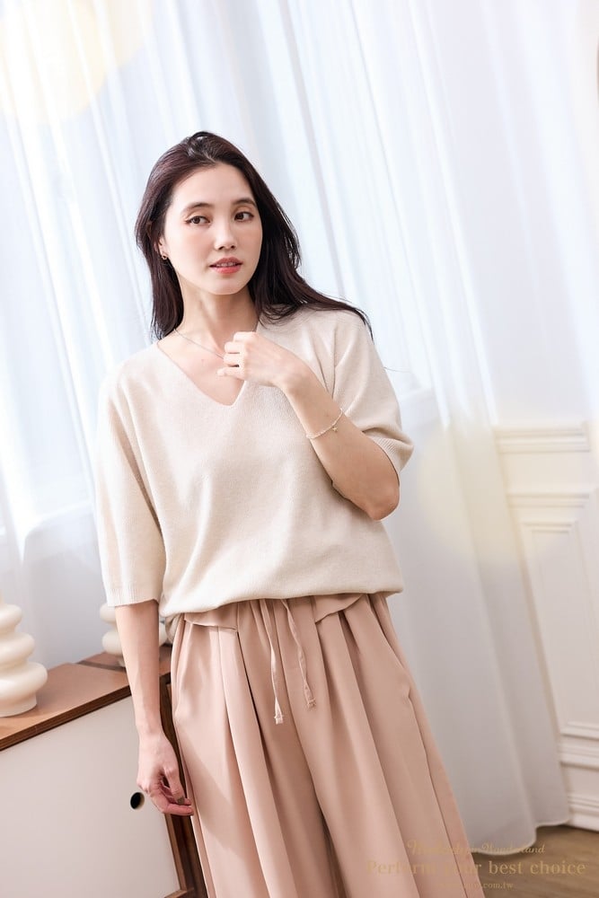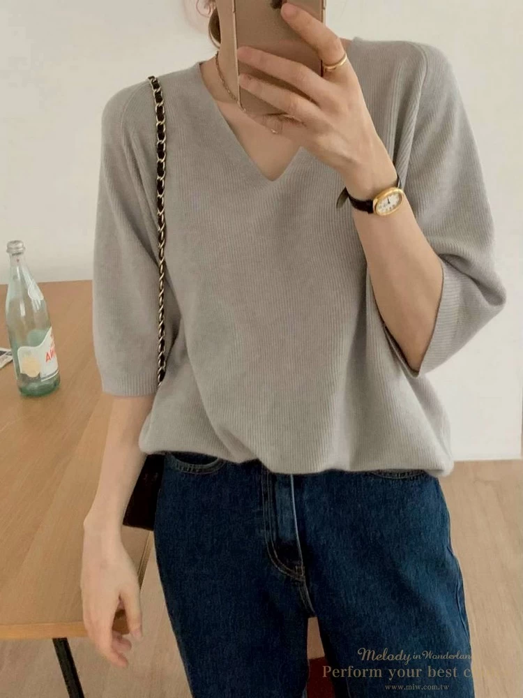 2511-033 簡約七分袖V領羊毛上衣(3色)