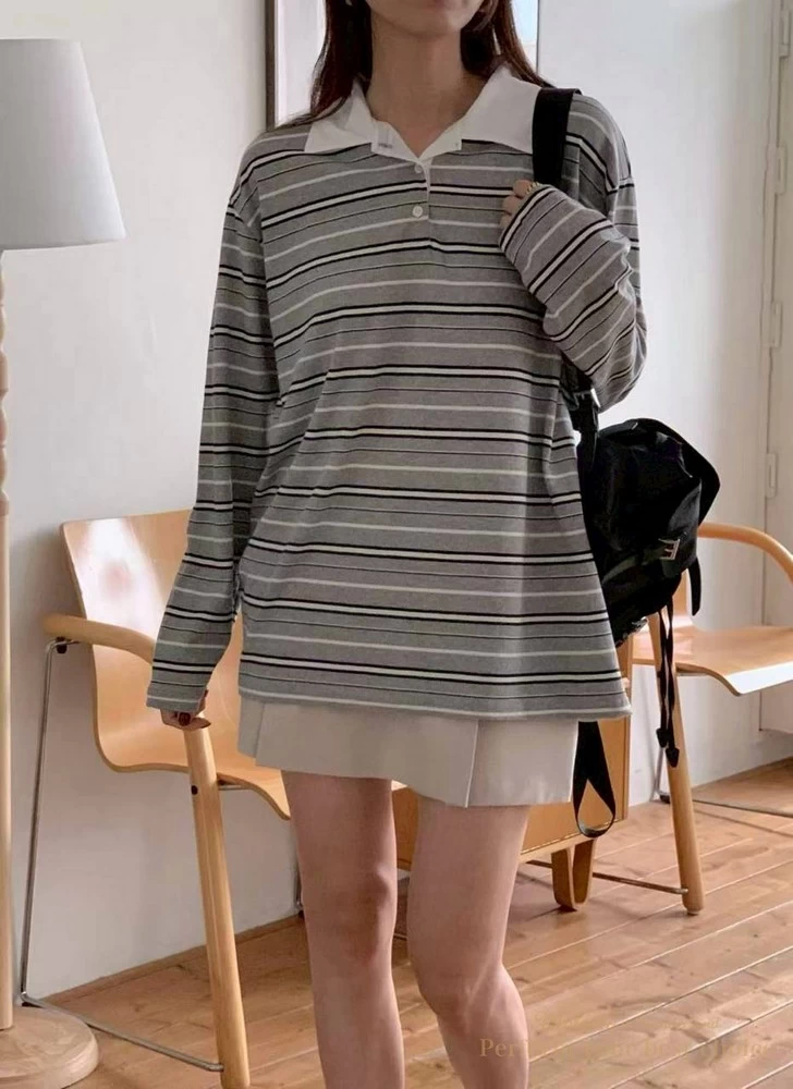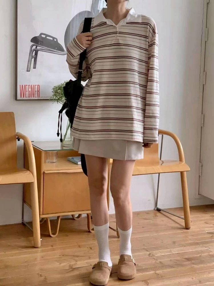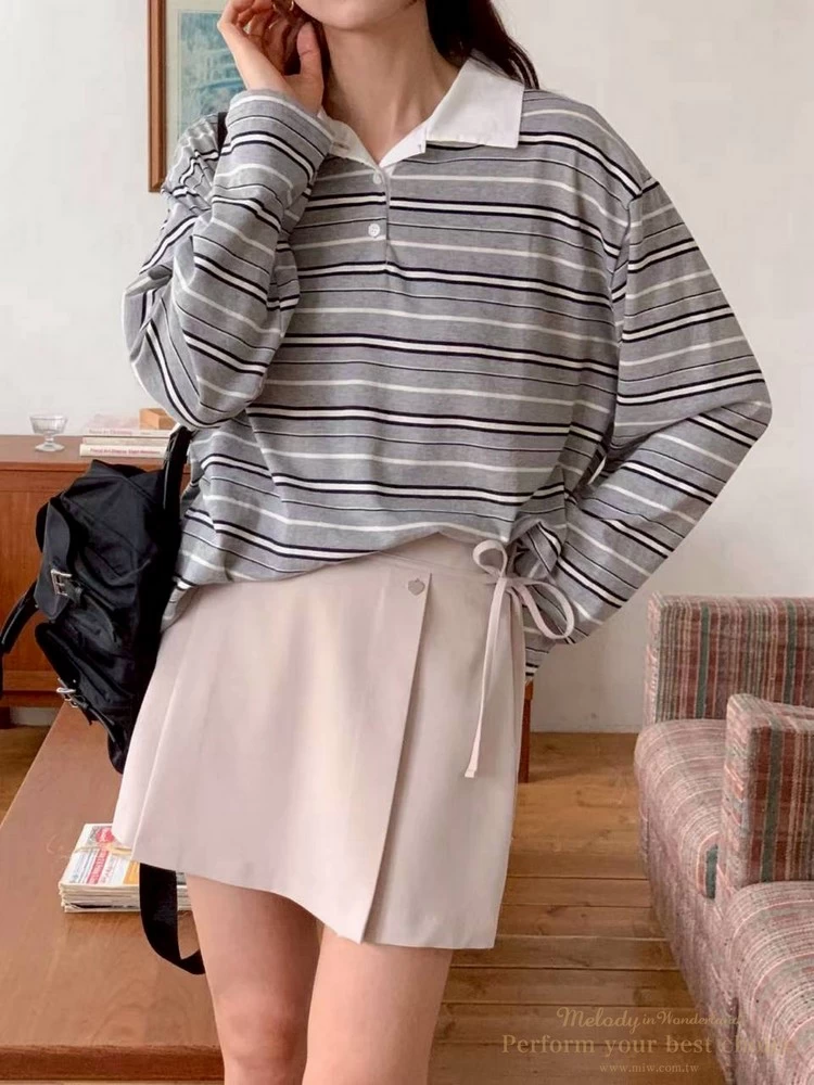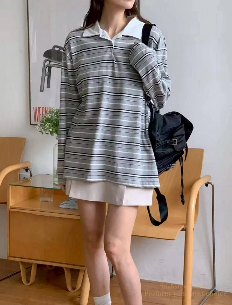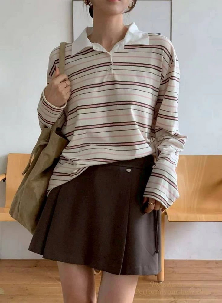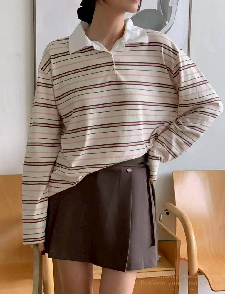 2511-018 休閒拚色條紋POLO領上衣(2色)
