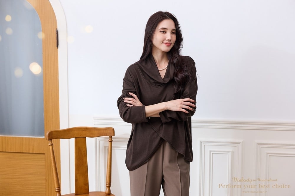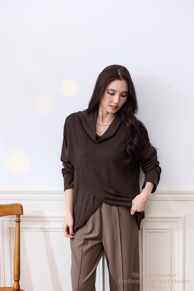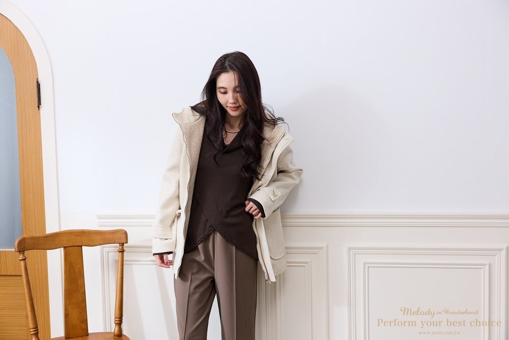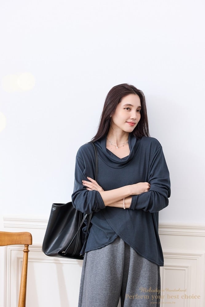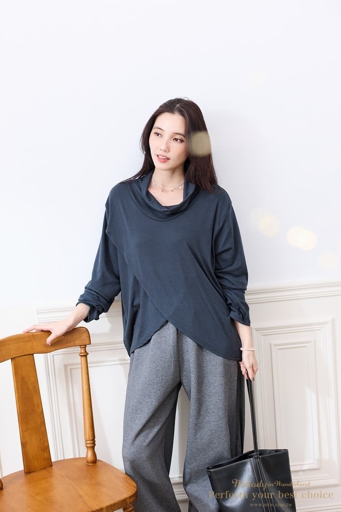 2511-038 慵懶立領下擺開衩造型上衣(3色)