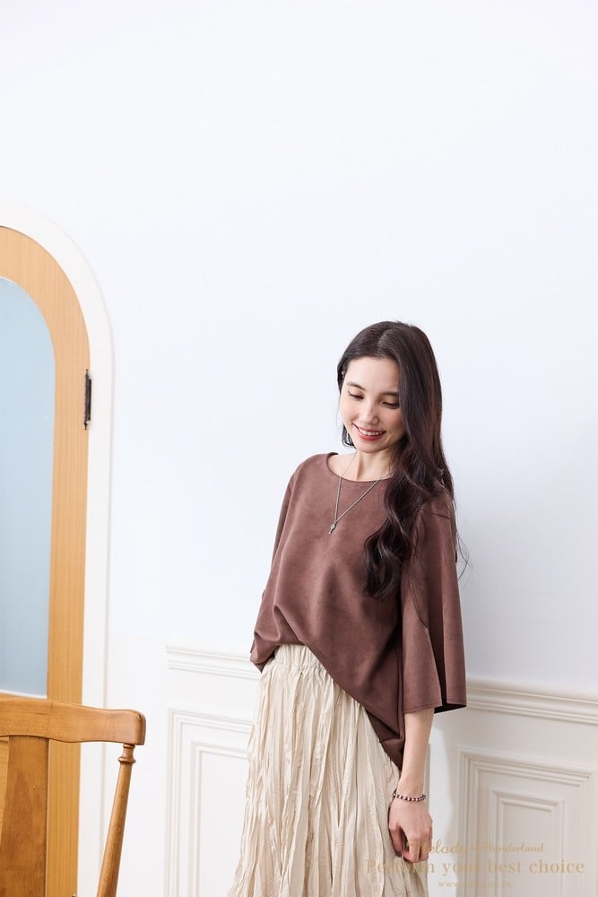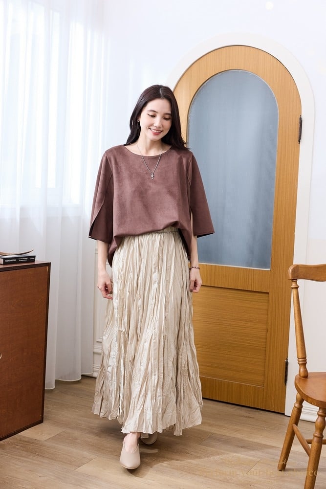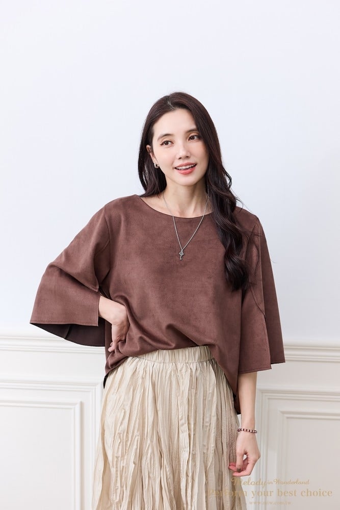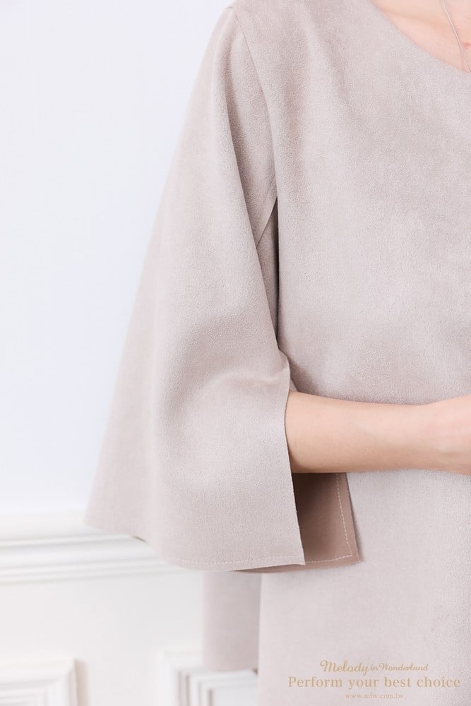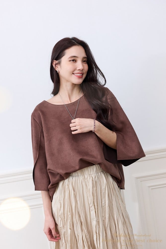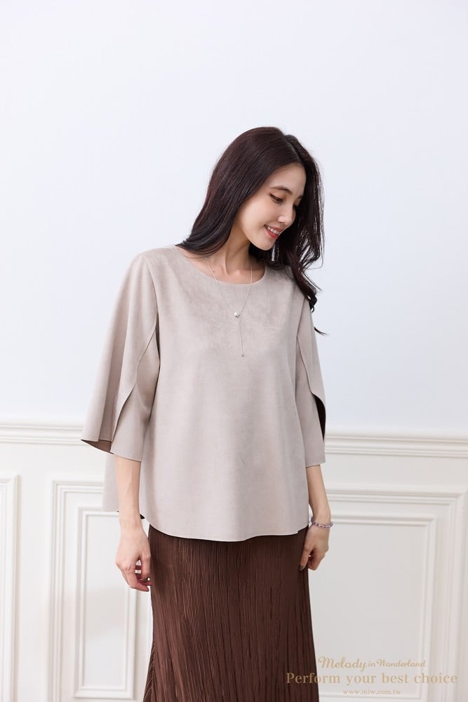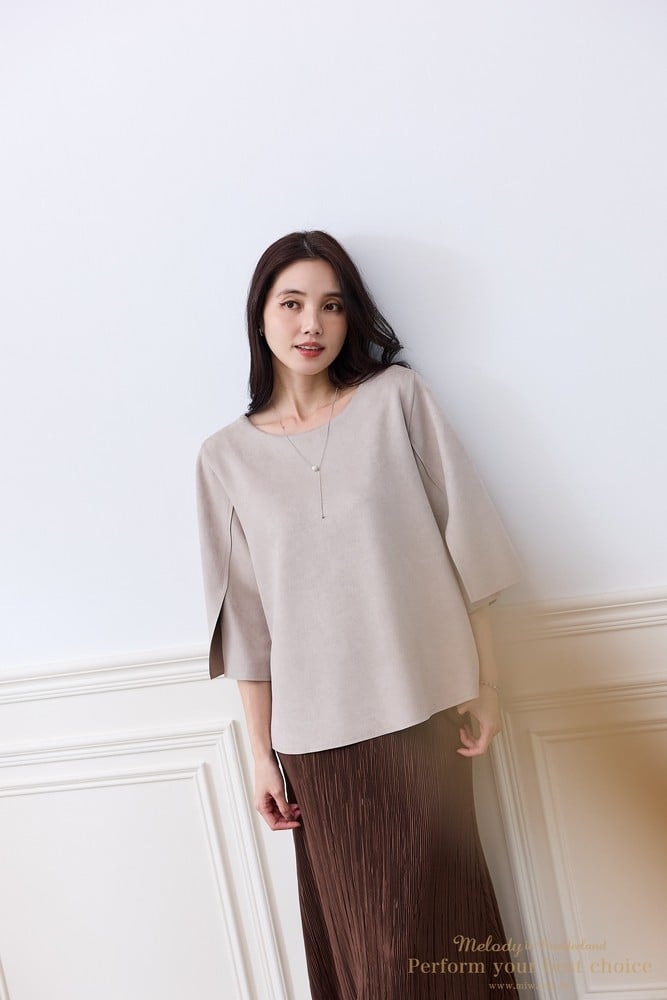 2511-039 氣質圓領袖擺開衩造型上衣(4色)