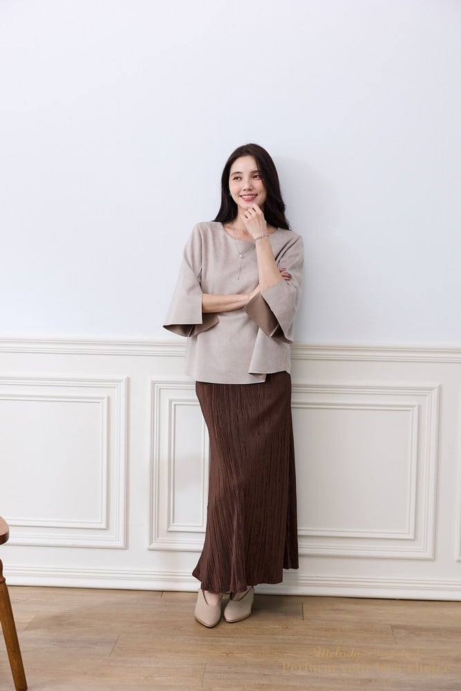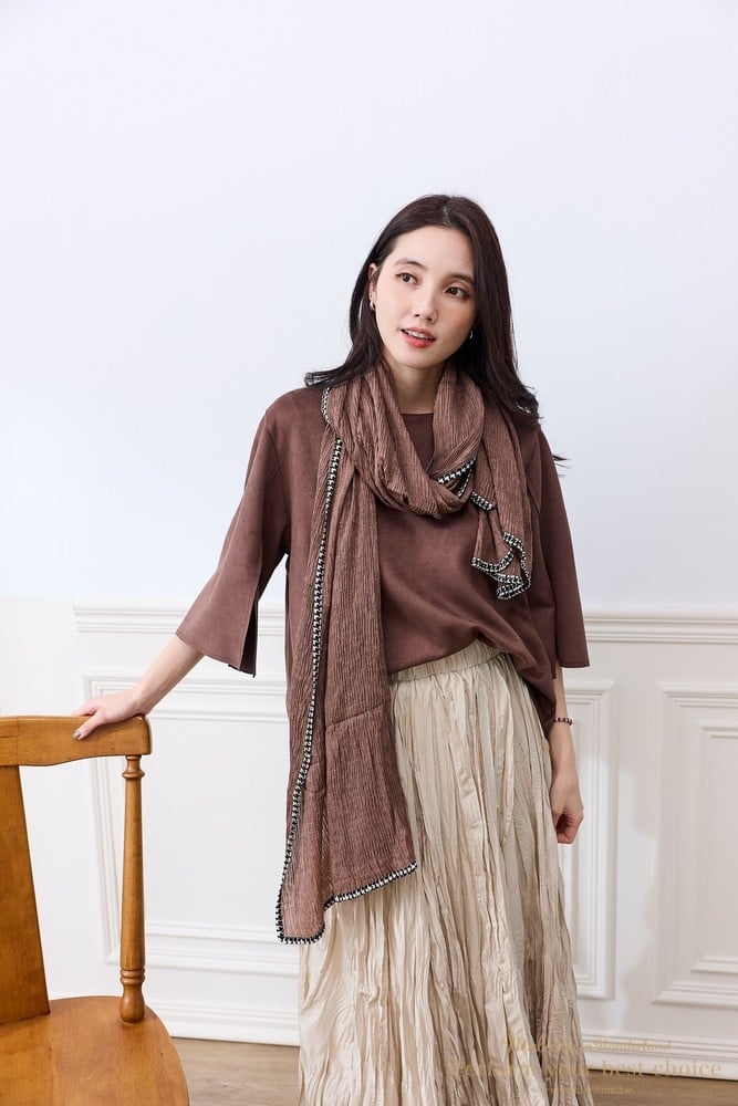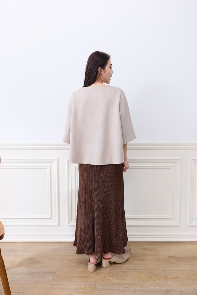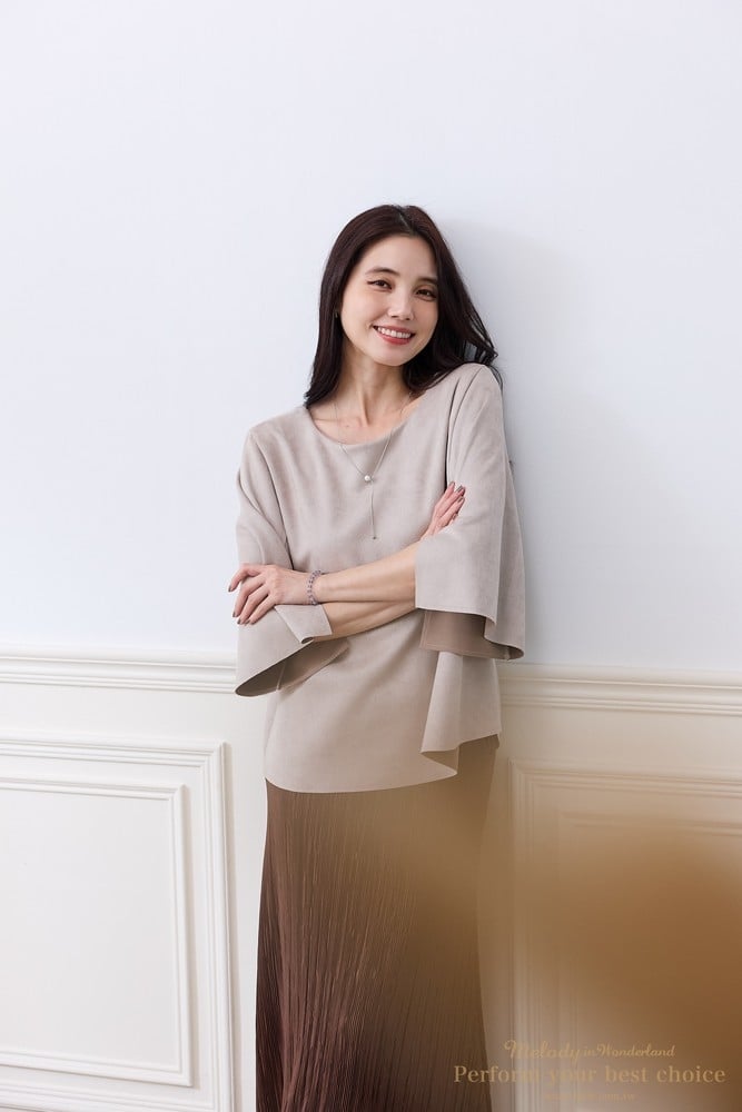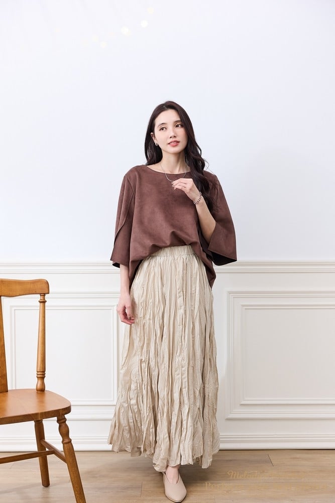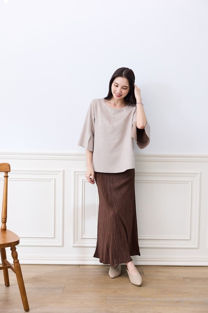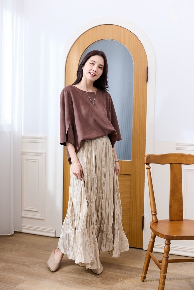 2511-039 氣質圓領袖擺開衩造型上衣(4色)