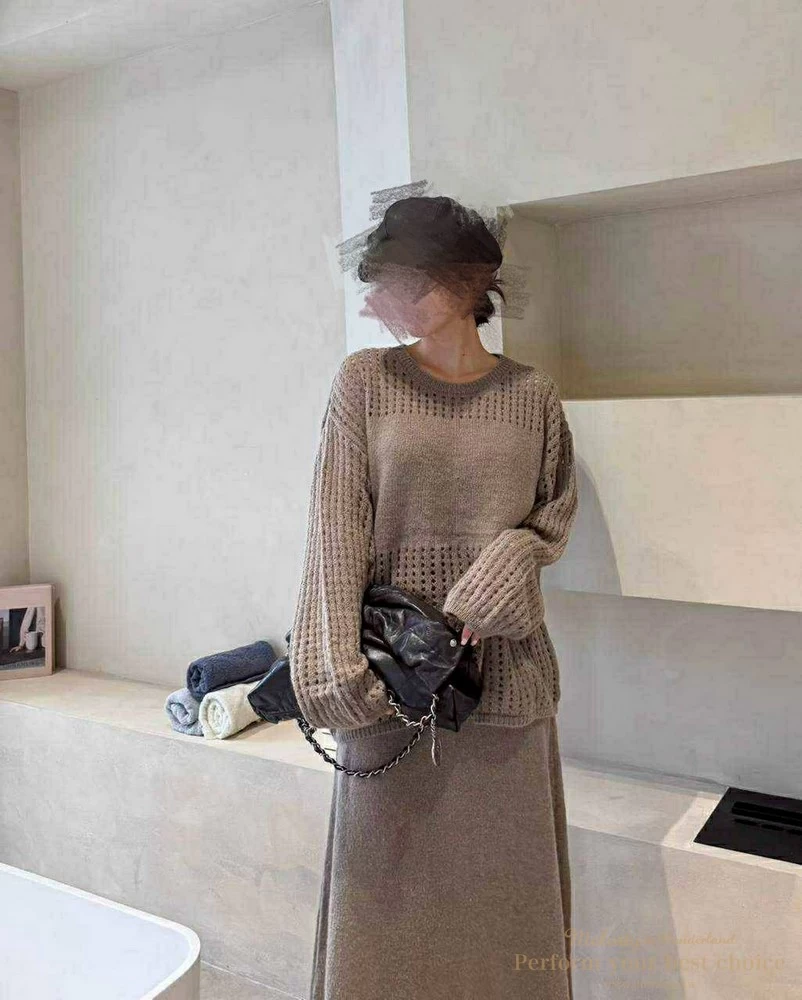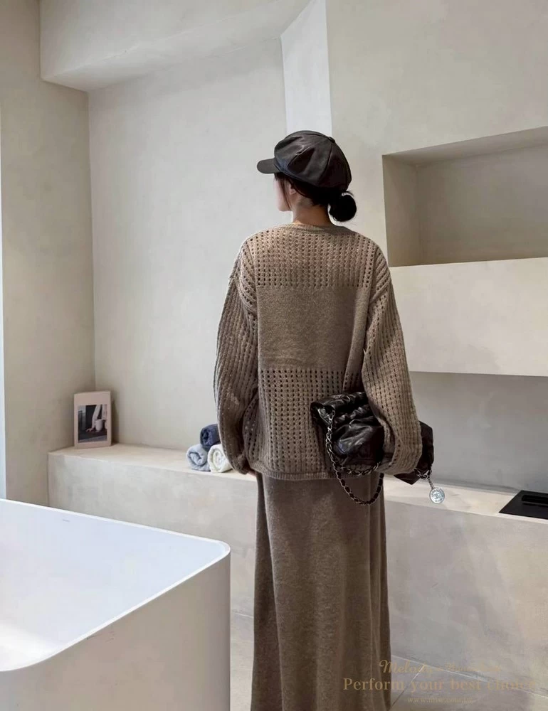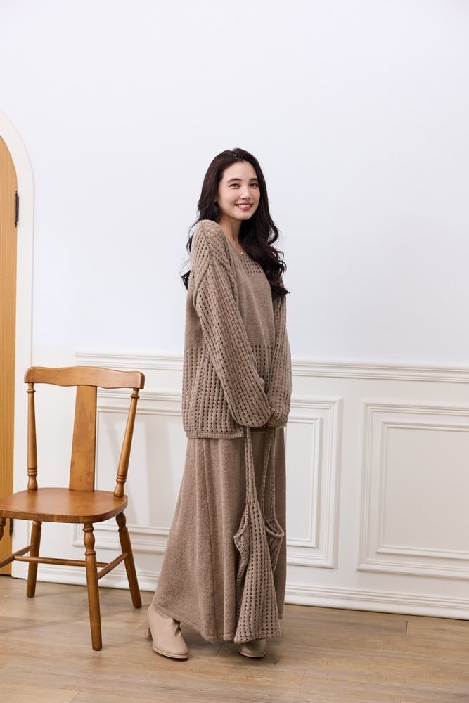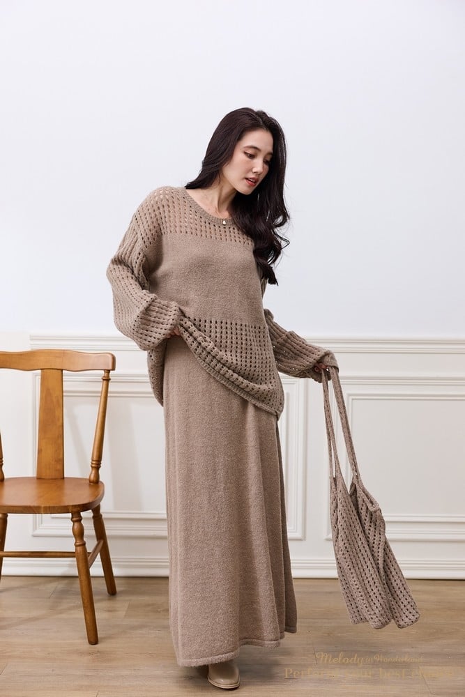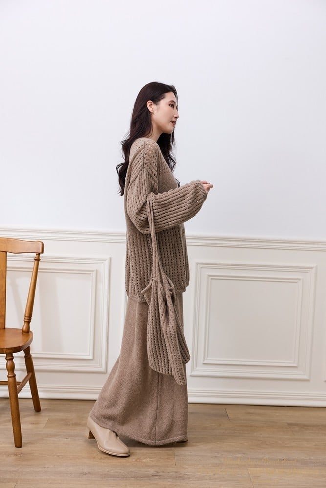 慵懶洞洞針織套裝組-附包包(3色)