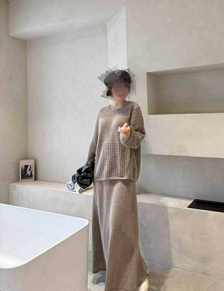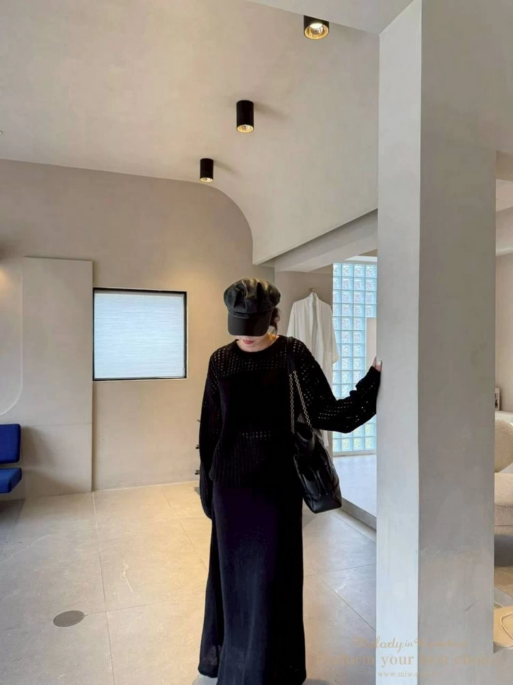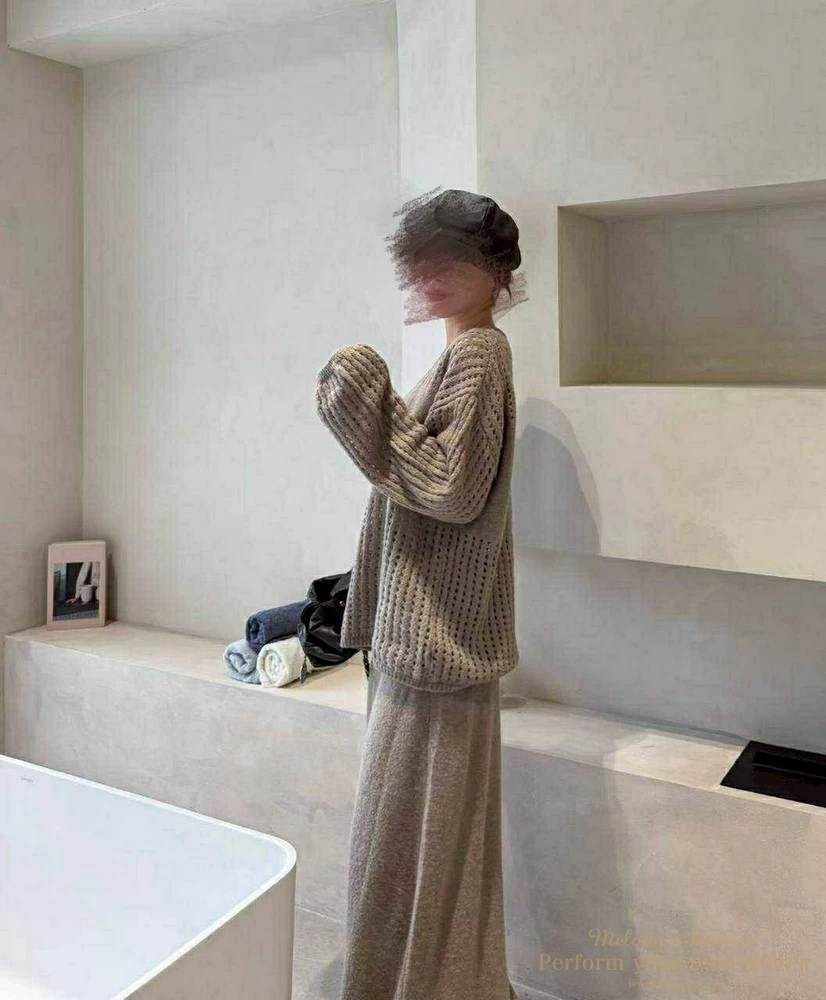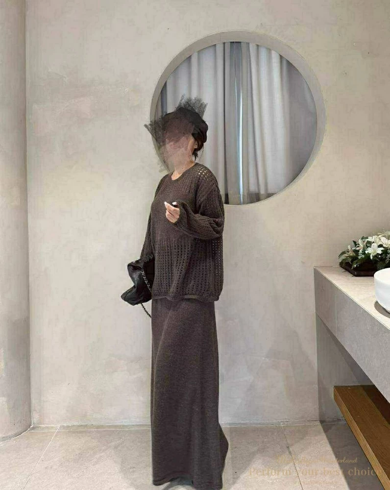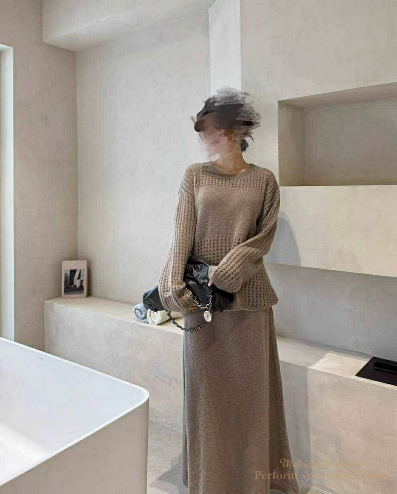 慵懶洞洞針織套裝組-附包包(3色)