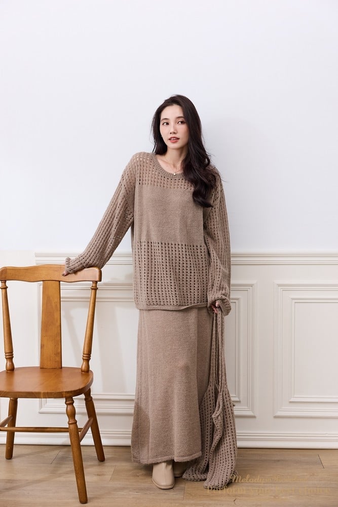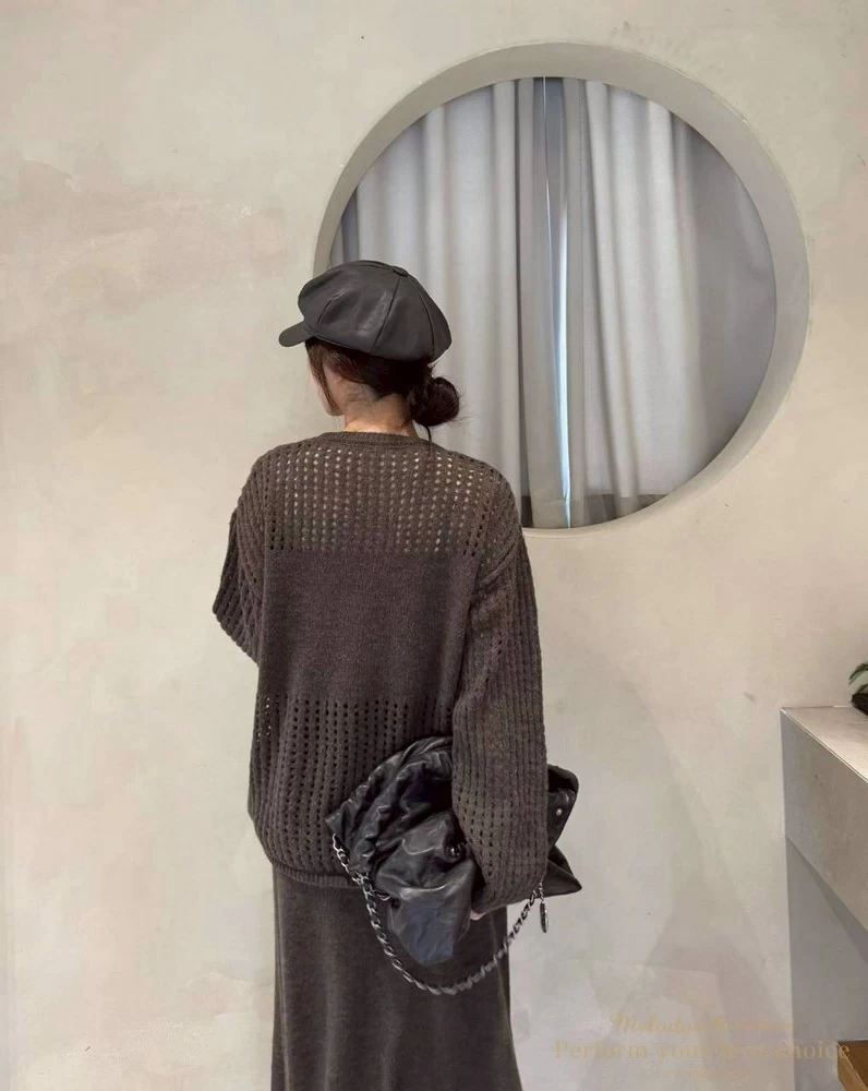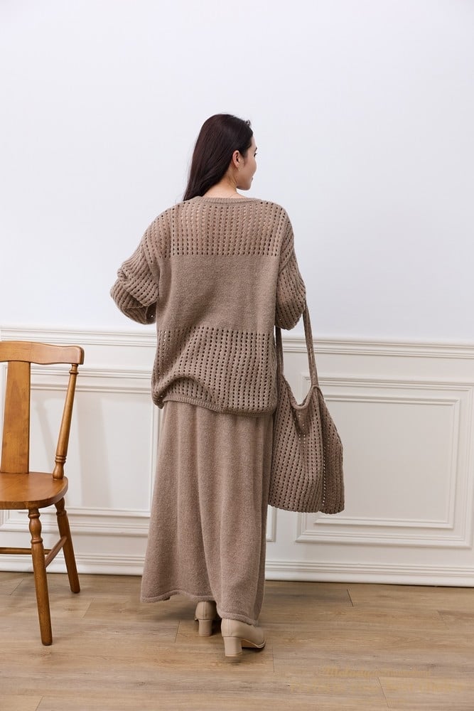 2511-127 慵懶洞洞針織套裝組-附包包(3色)