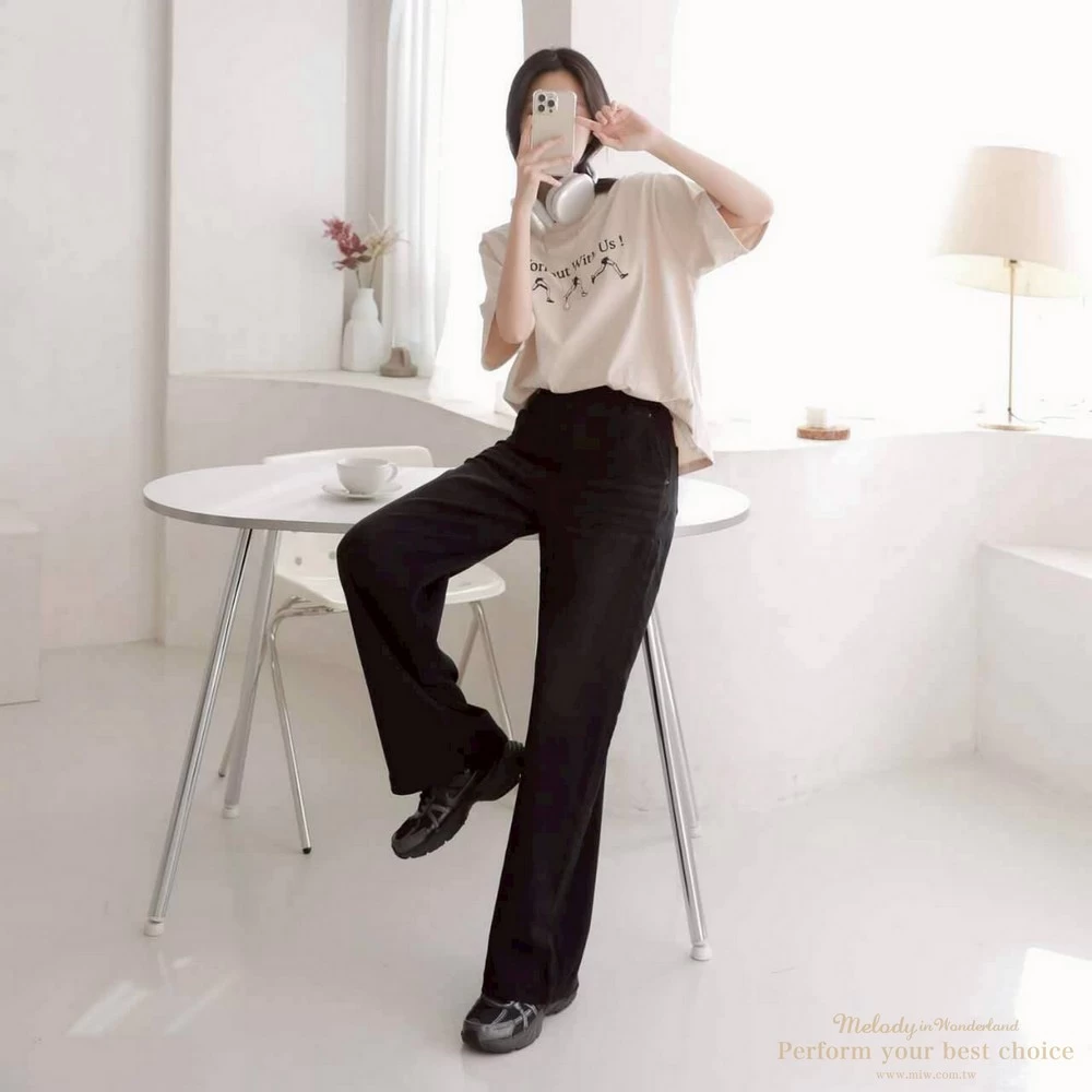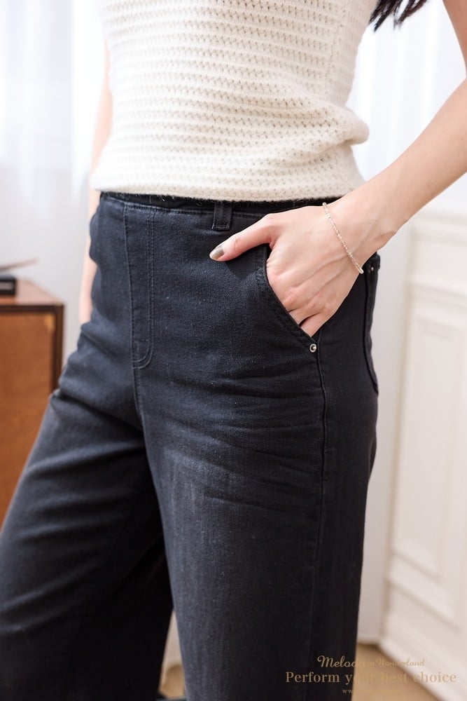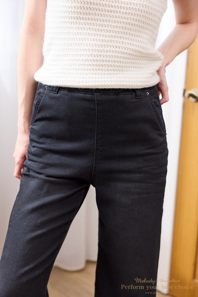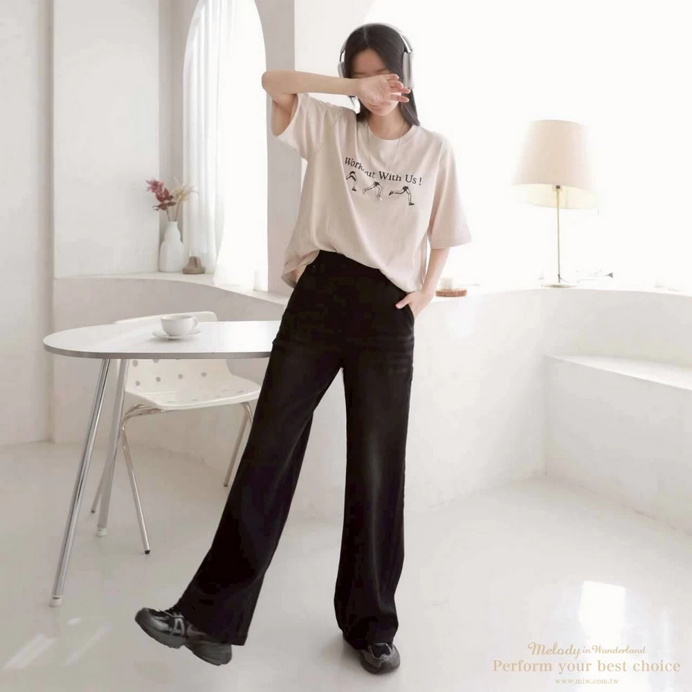 大腿立體洗刷紋/腰部整圈鬆緊帶設計