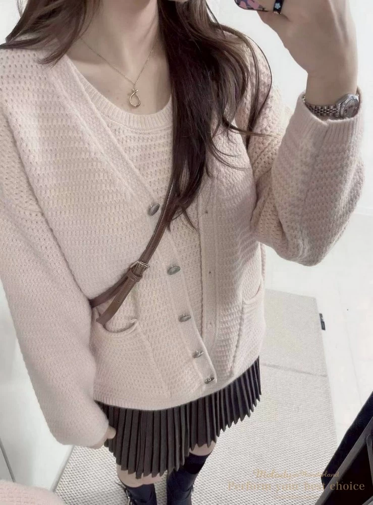 2511-082 兩件式雲朵毛線外套背心組(2色)