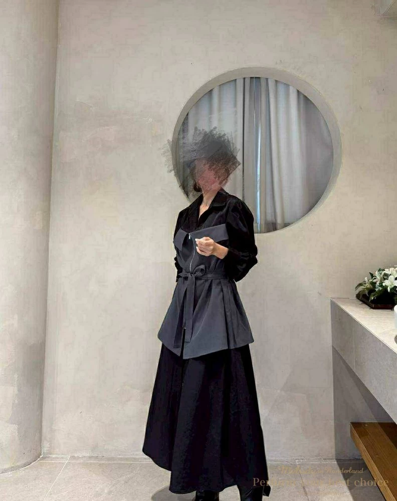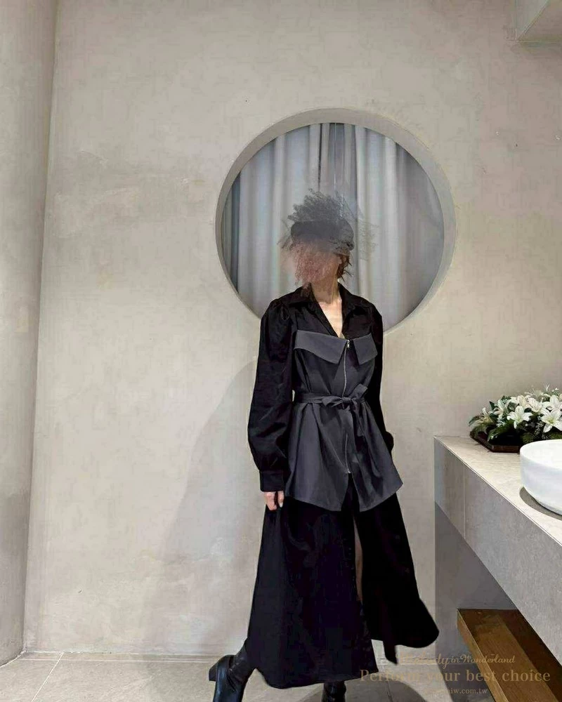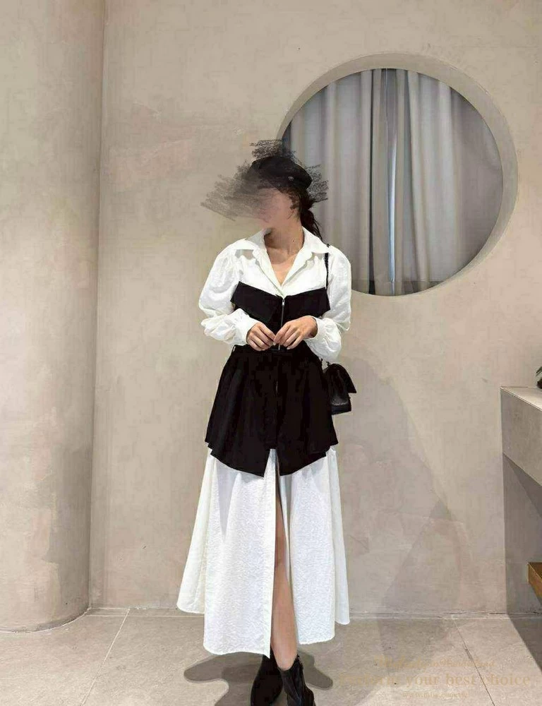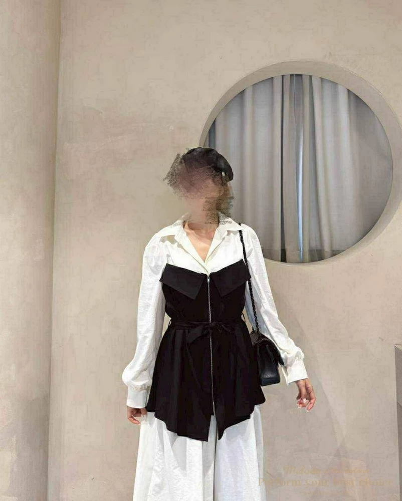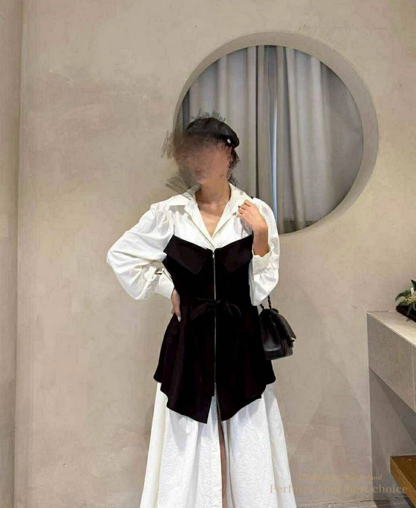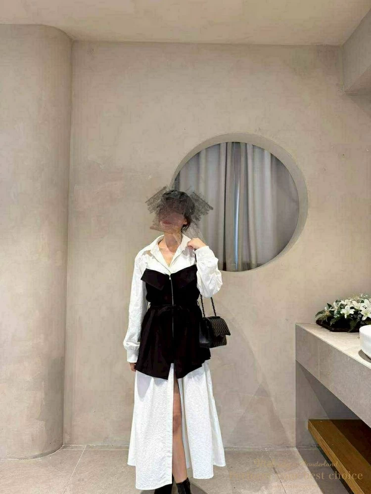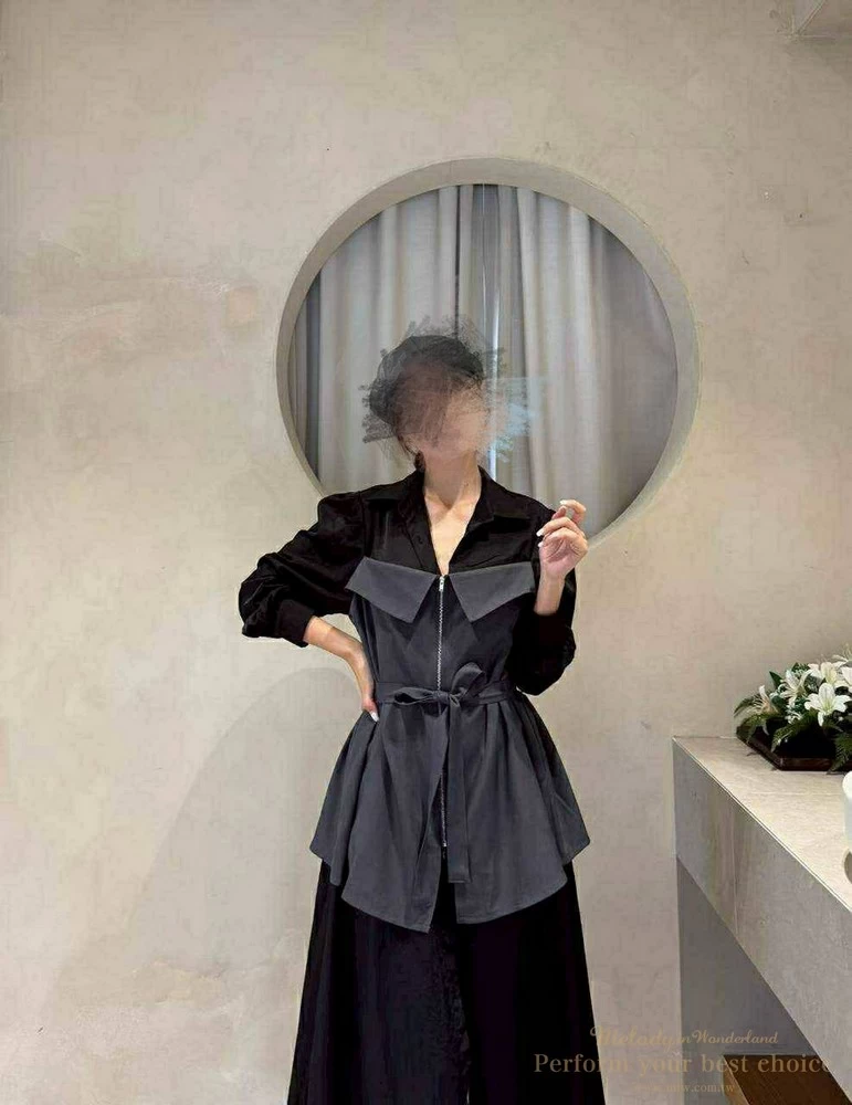 2511-125 假兩件翻領背心造型襯衫洋裝-附綁帶(3色)