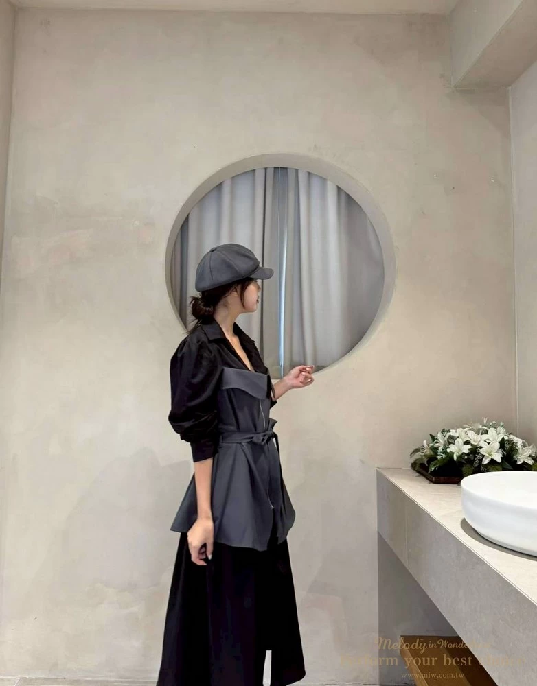 假兩件翻領背心造型襯衫洋裝-附綁帶(3色)