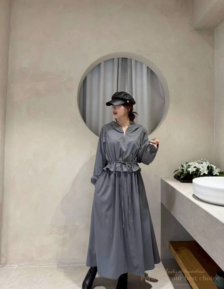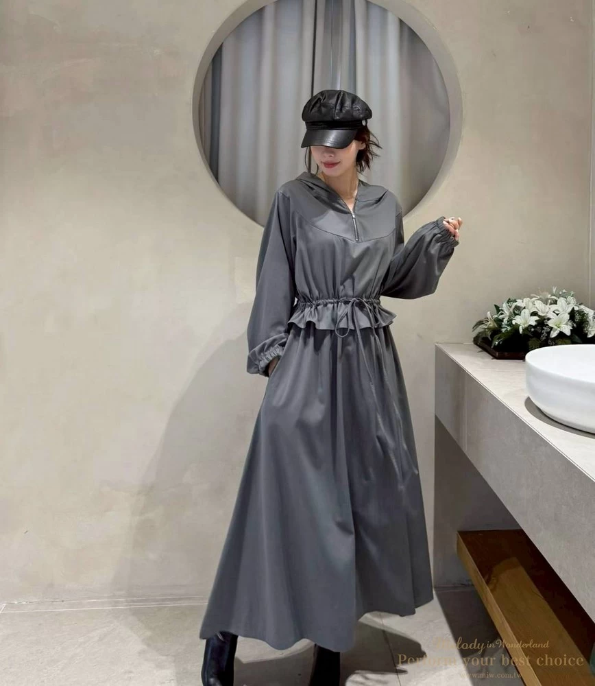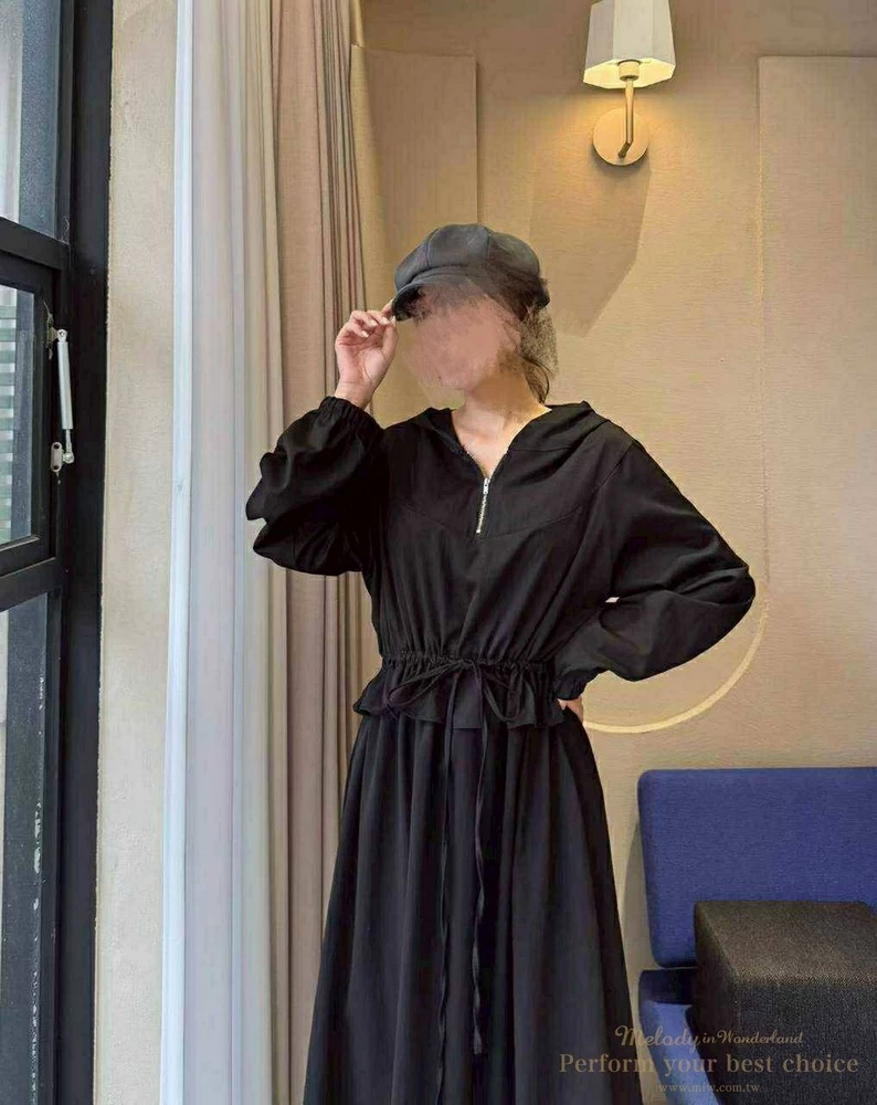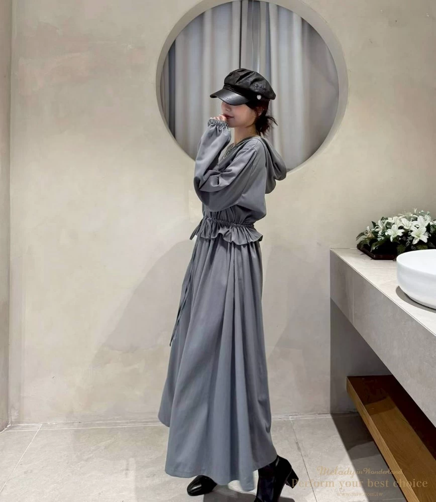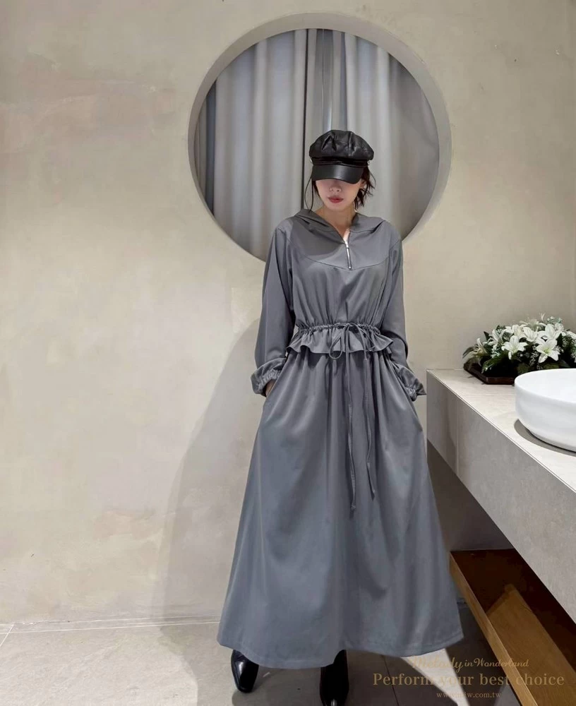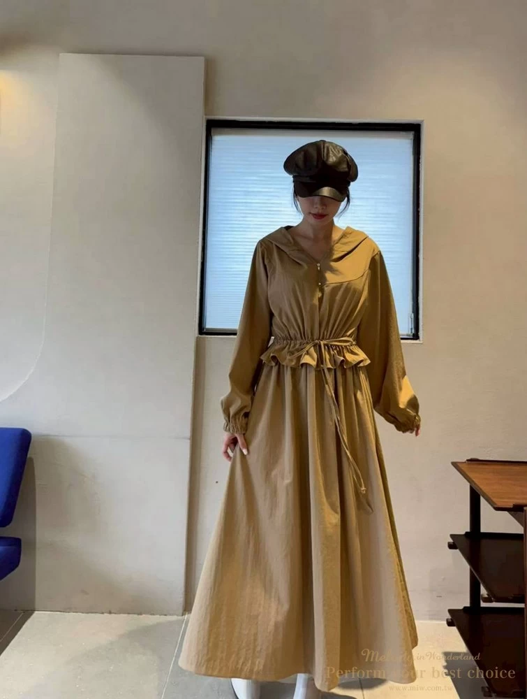 2511-124 修身綁帶連帽造型長洋(3色)