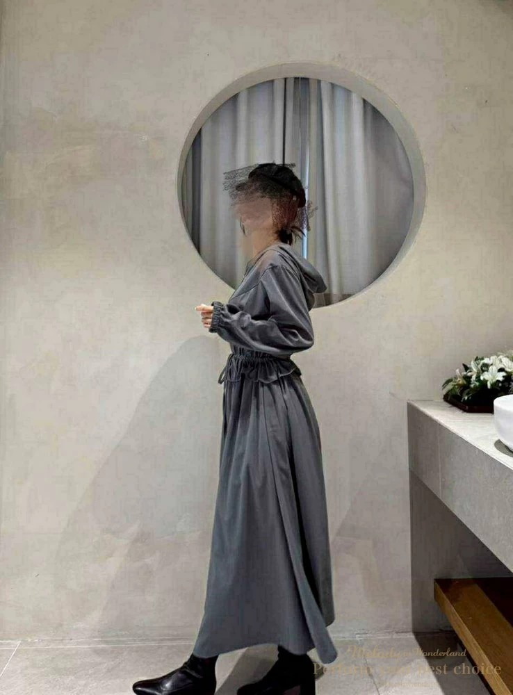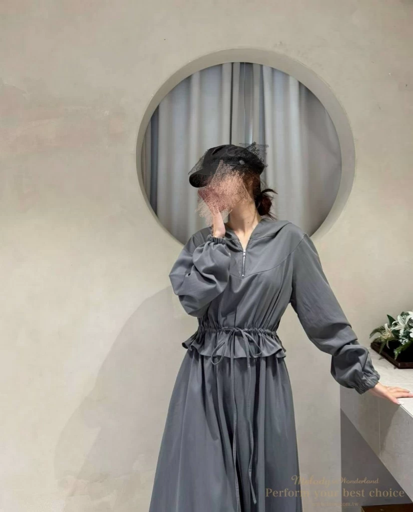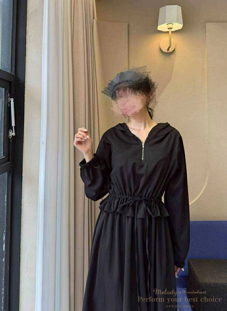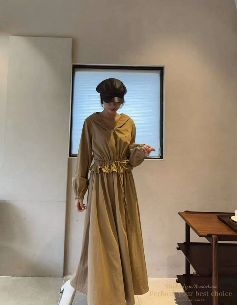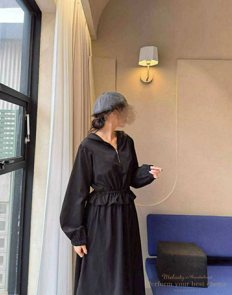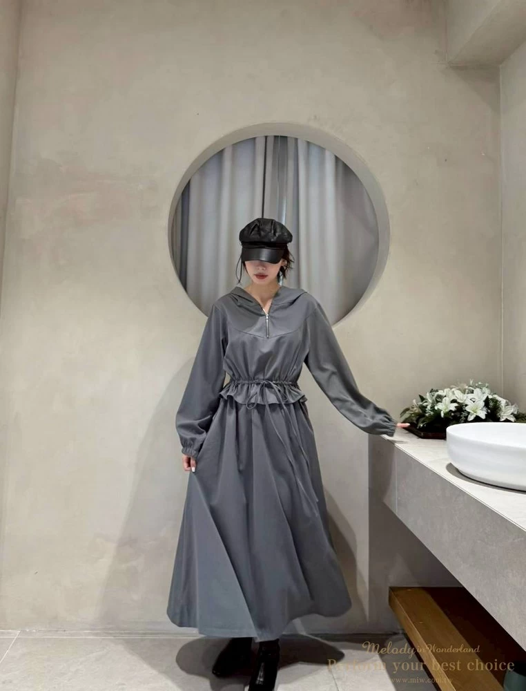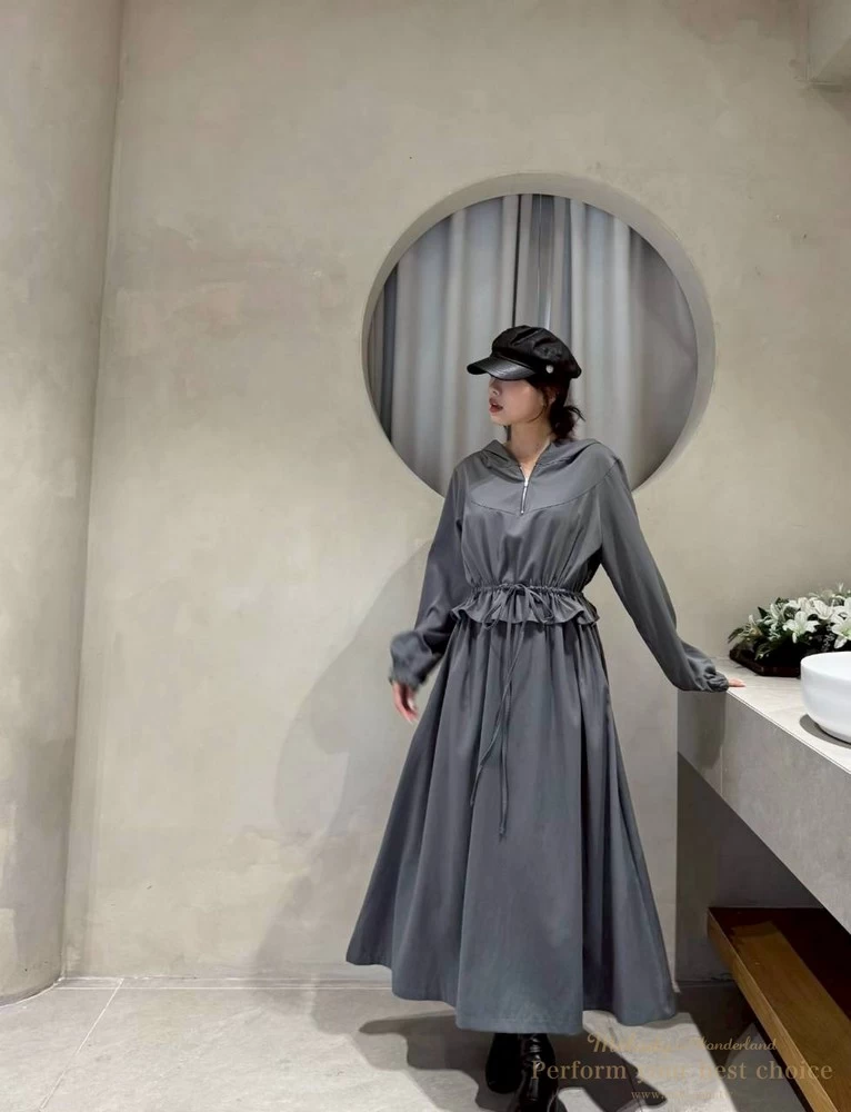 2511-124 修身綁帶連帽造型長洋(3色)