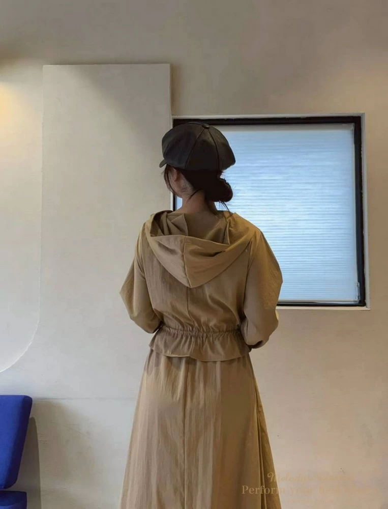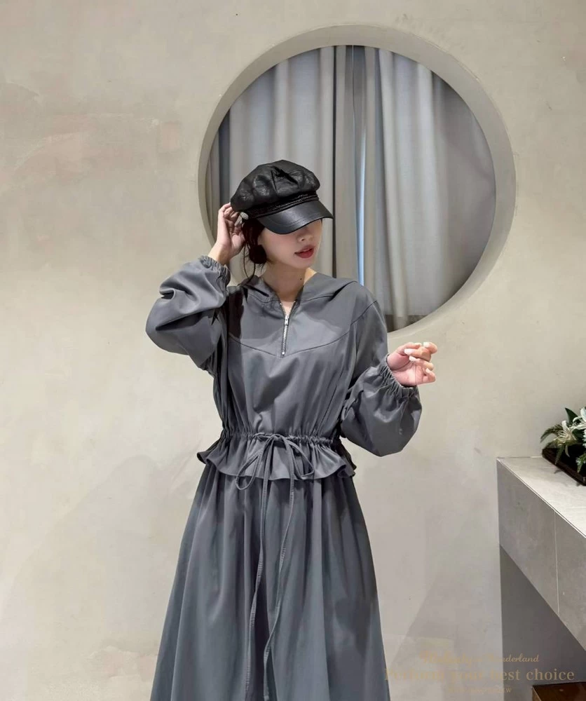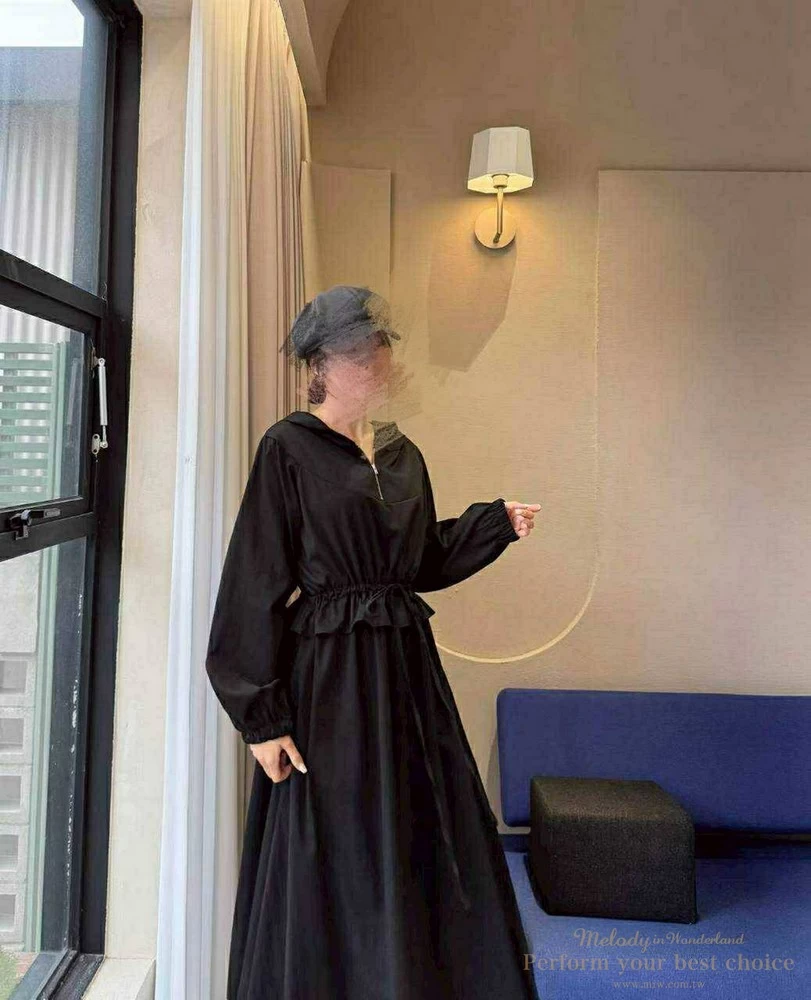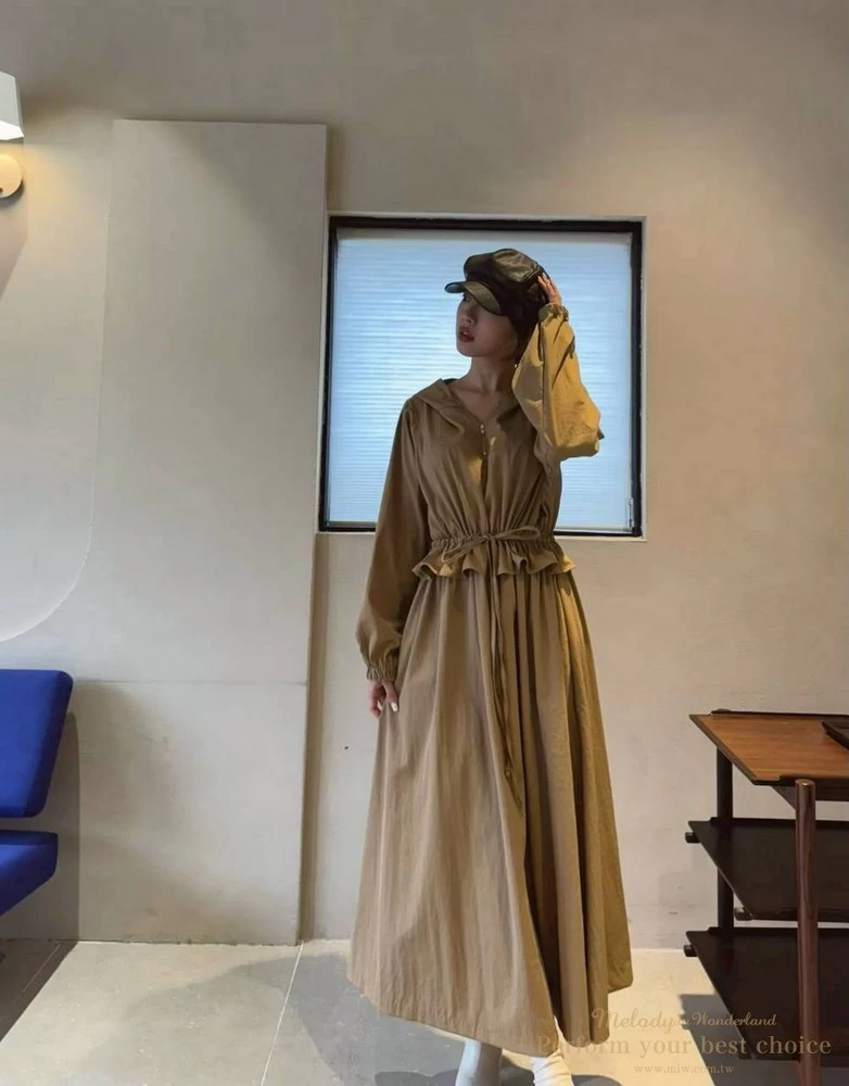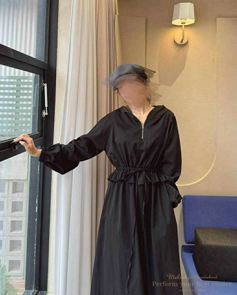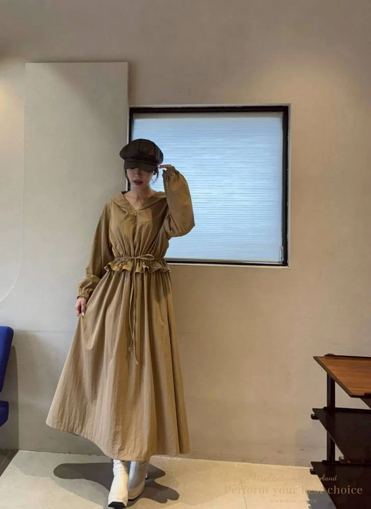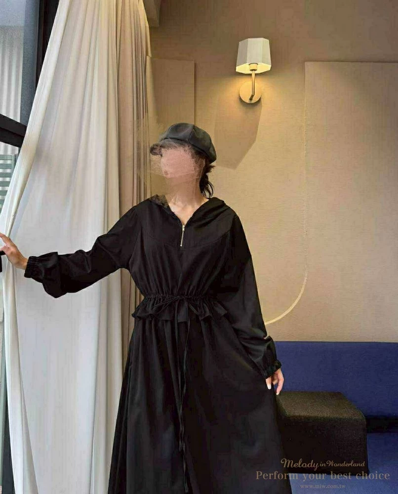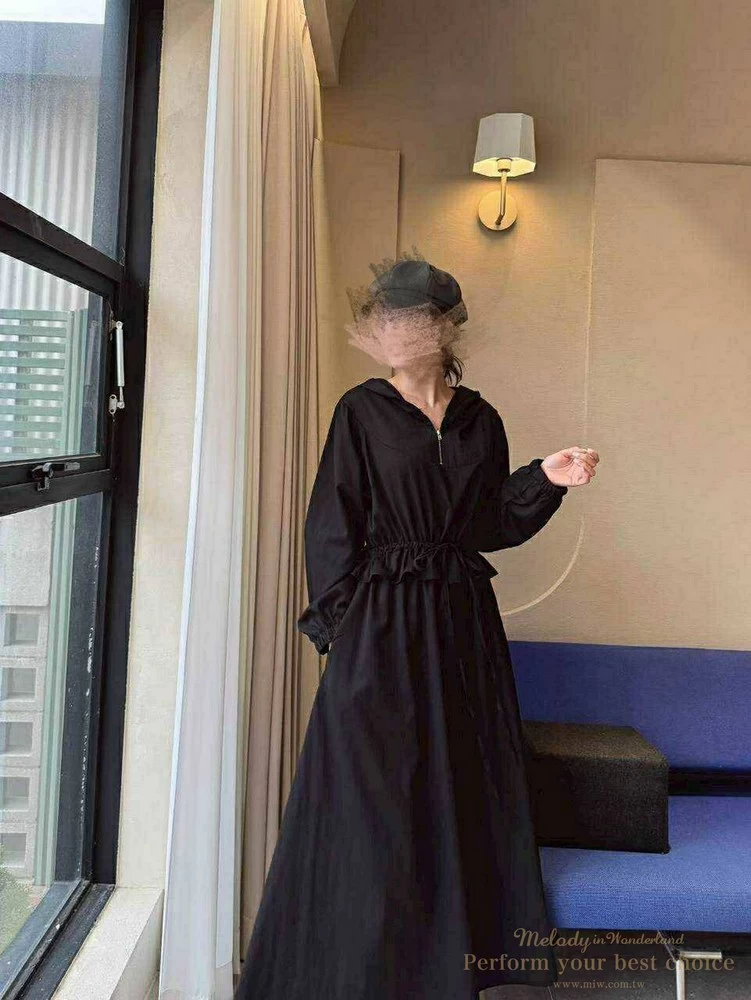 修身綁帶連帽造型長洋(3色)