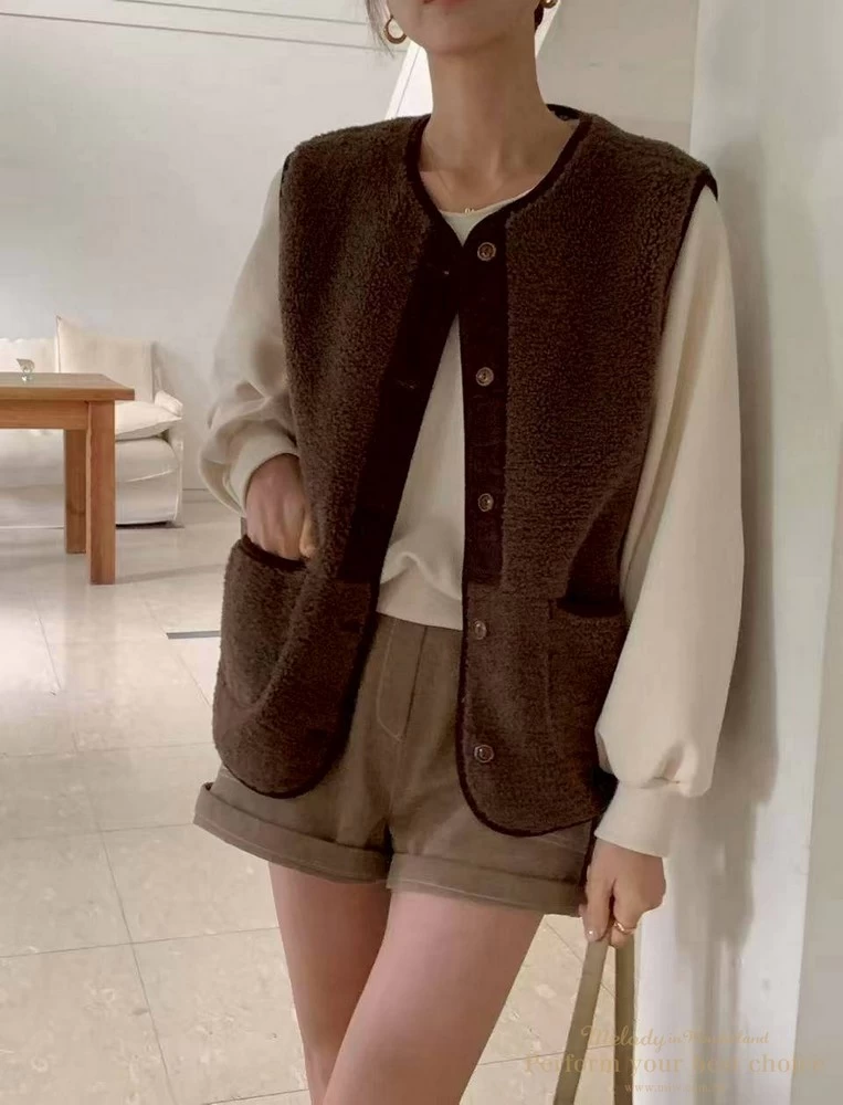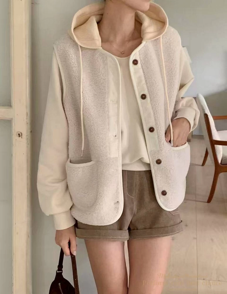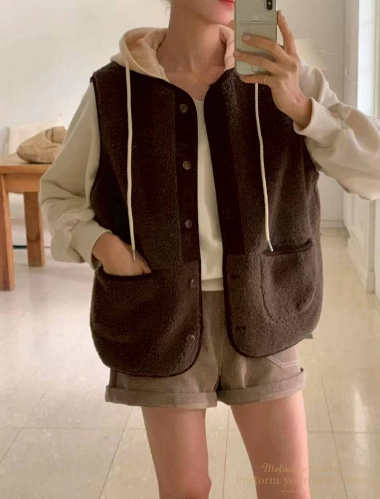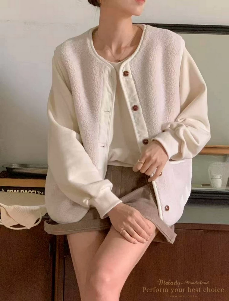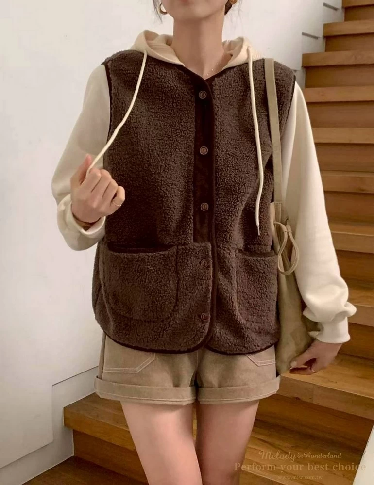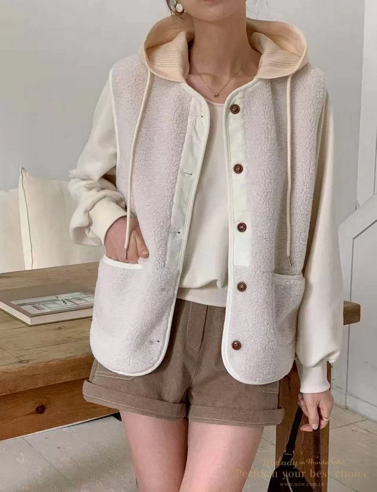 2511-087 泰迪毛毛防風連帽背心(2色)