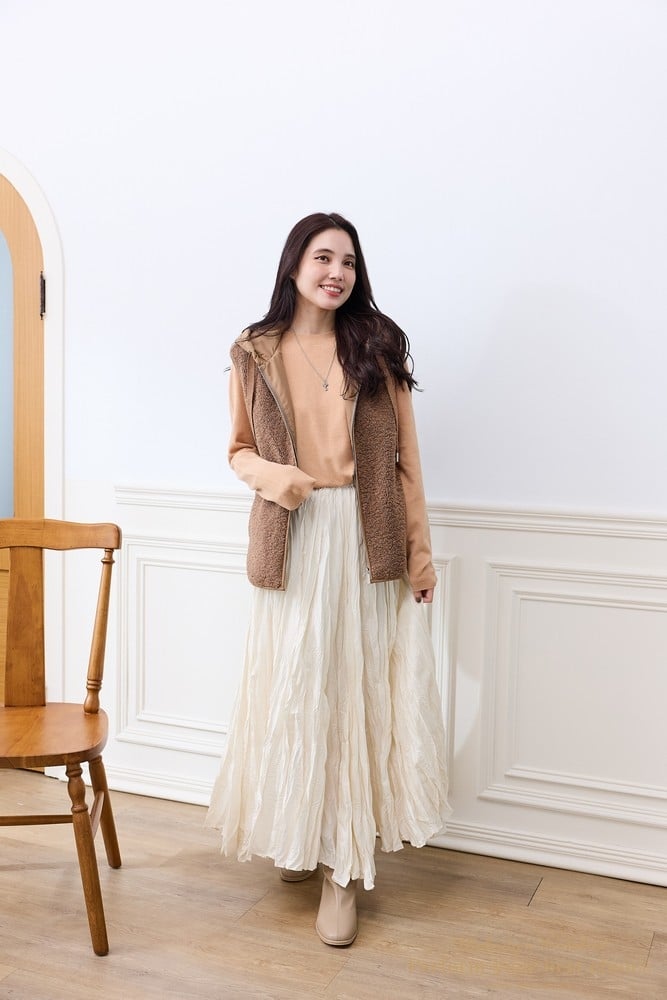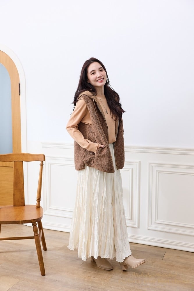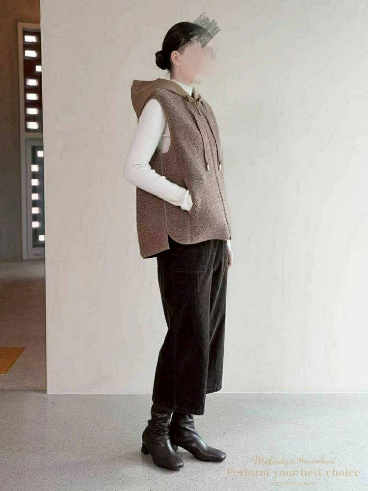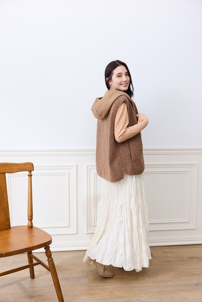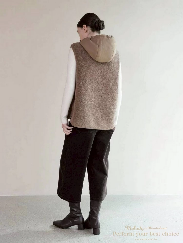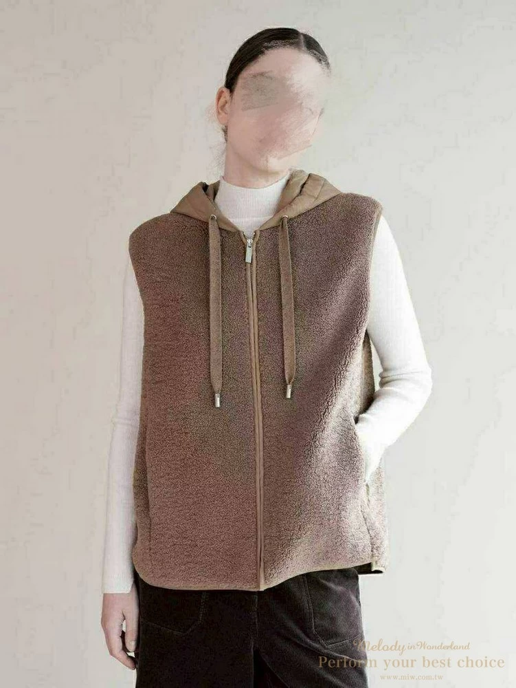 異材質拼接毛毛連帽拉鍊背心(3色)
