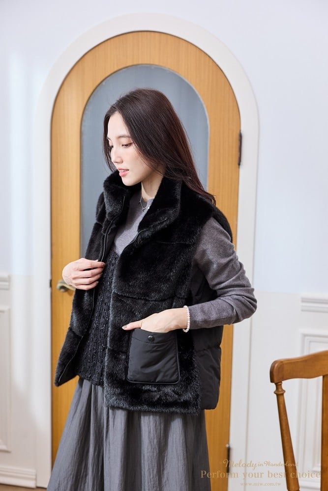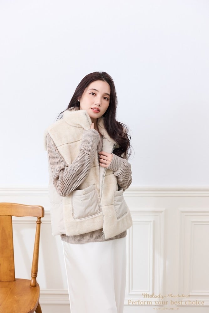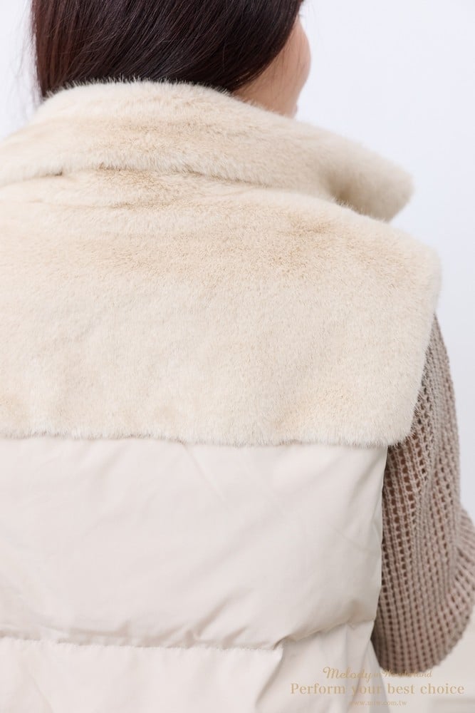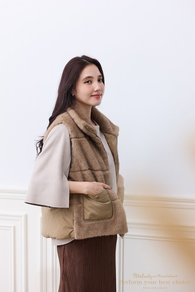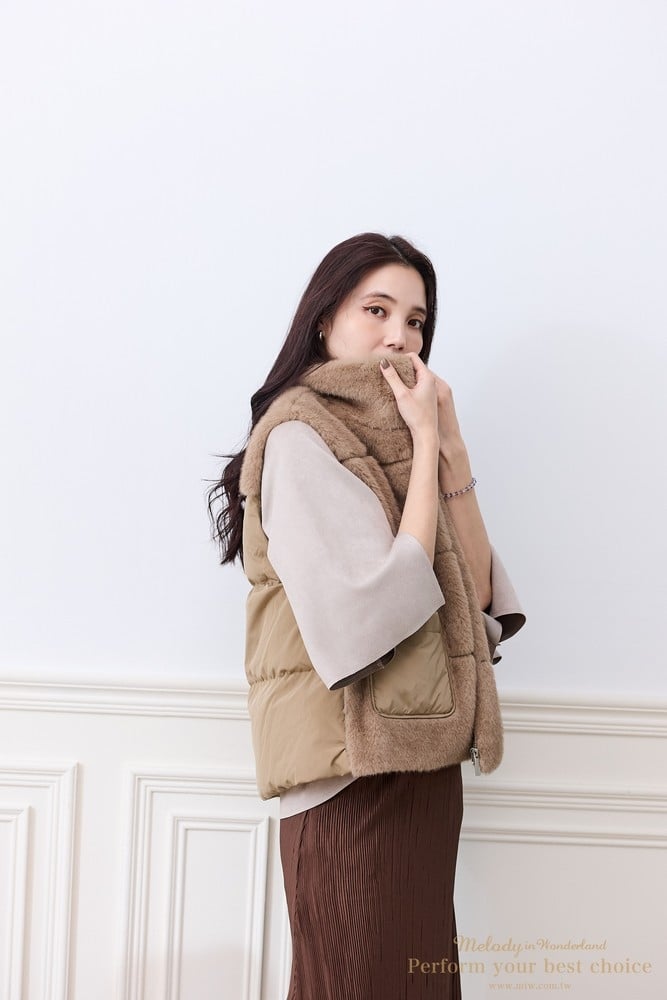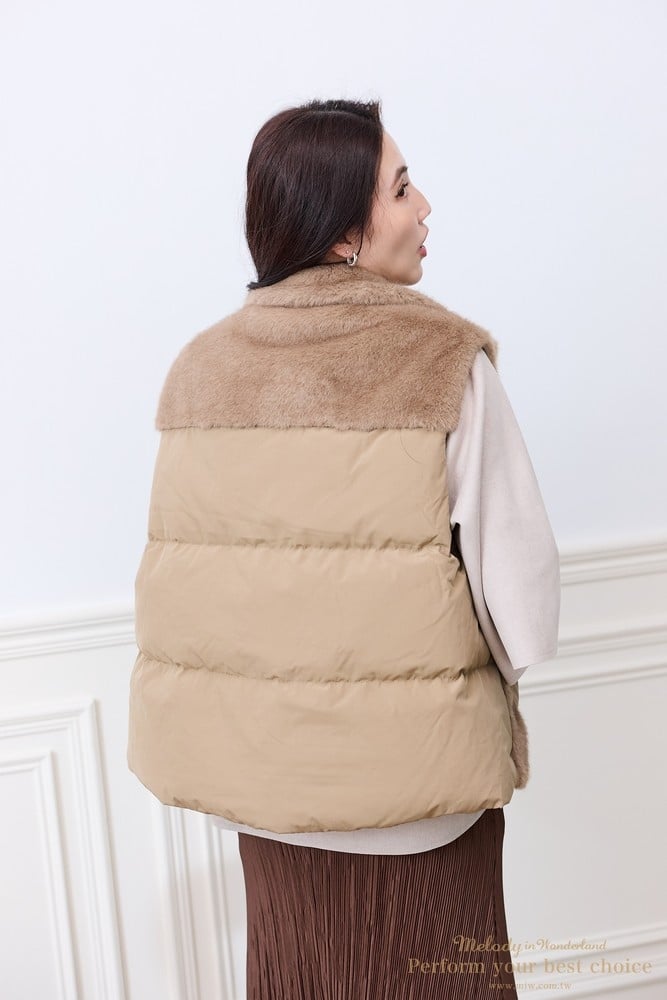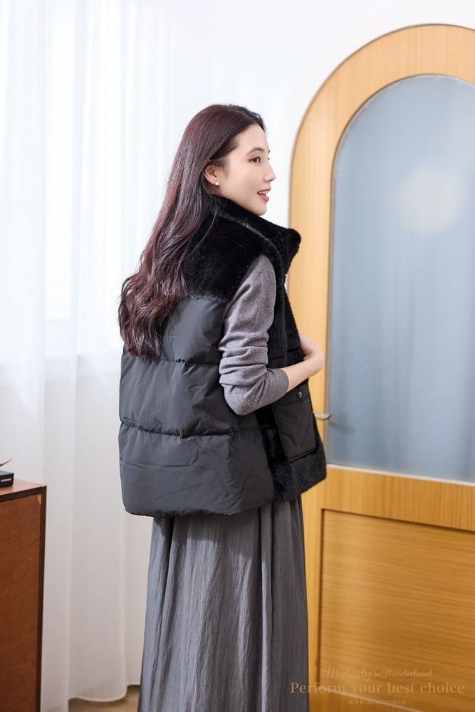 2511-089 貴氣毛海拼接羽絨拉鍊背心(3色)