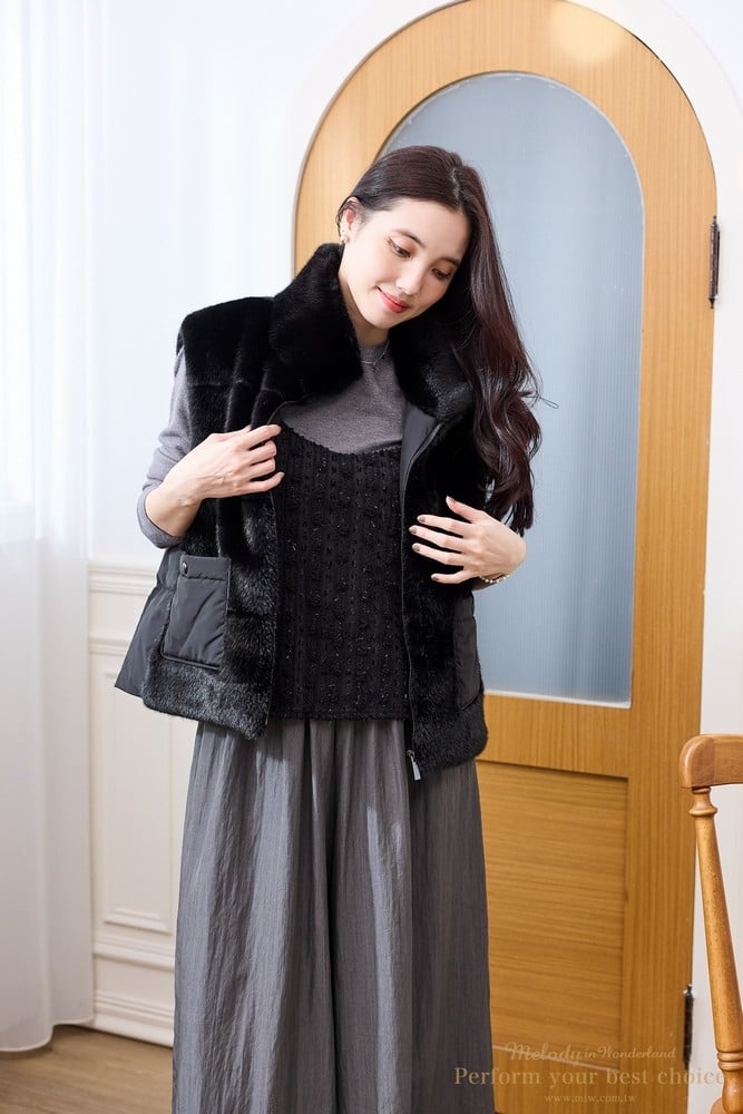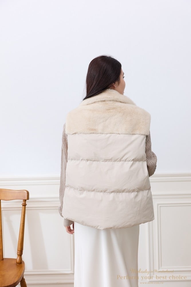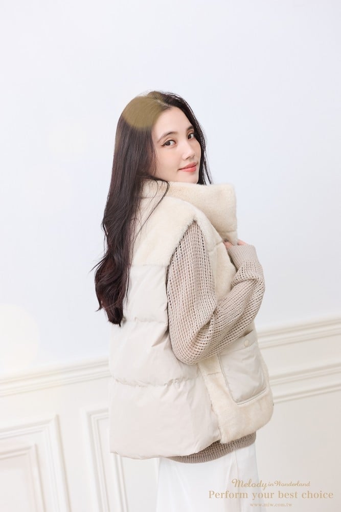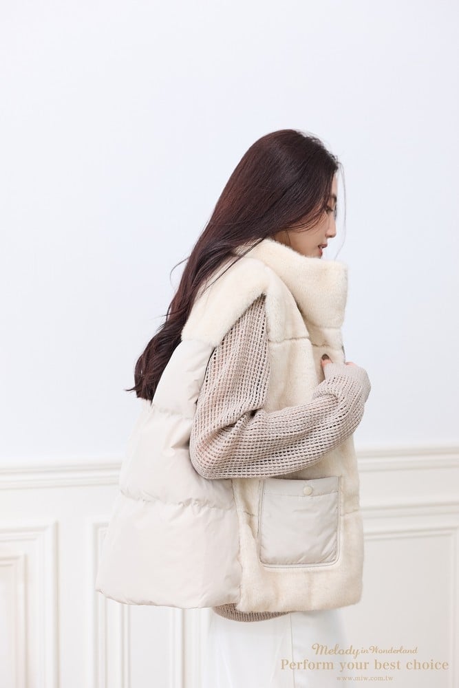 貴氣毛海拼接羽絨拉鍊背心(3色)
