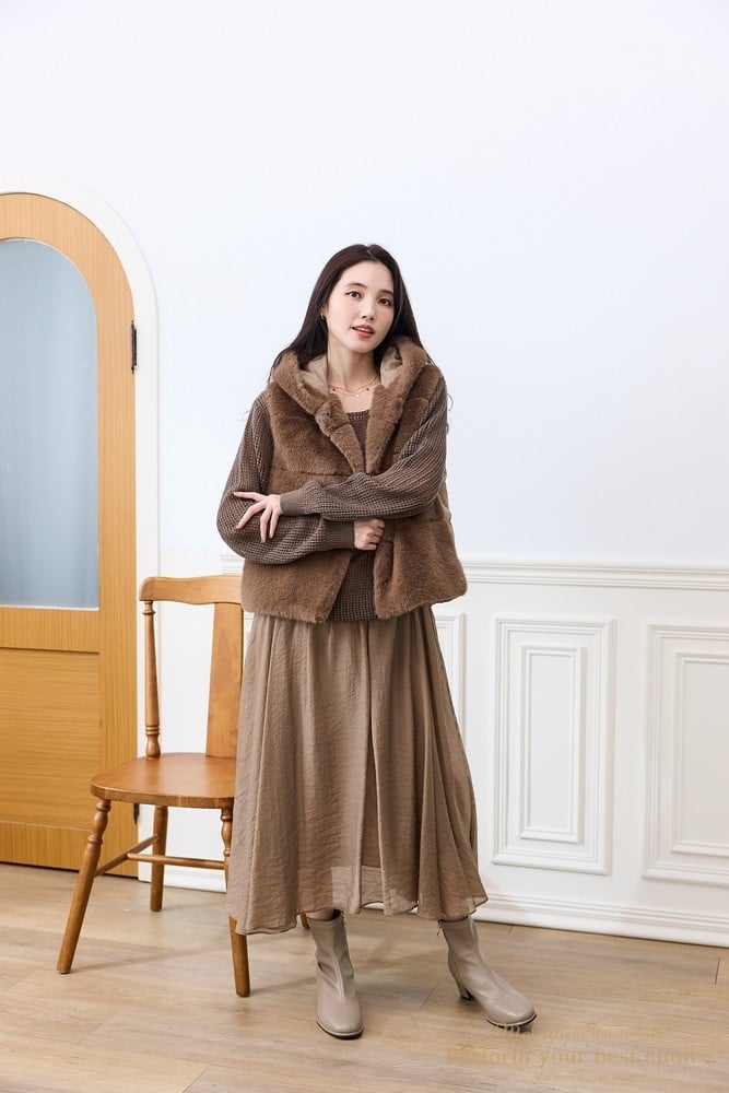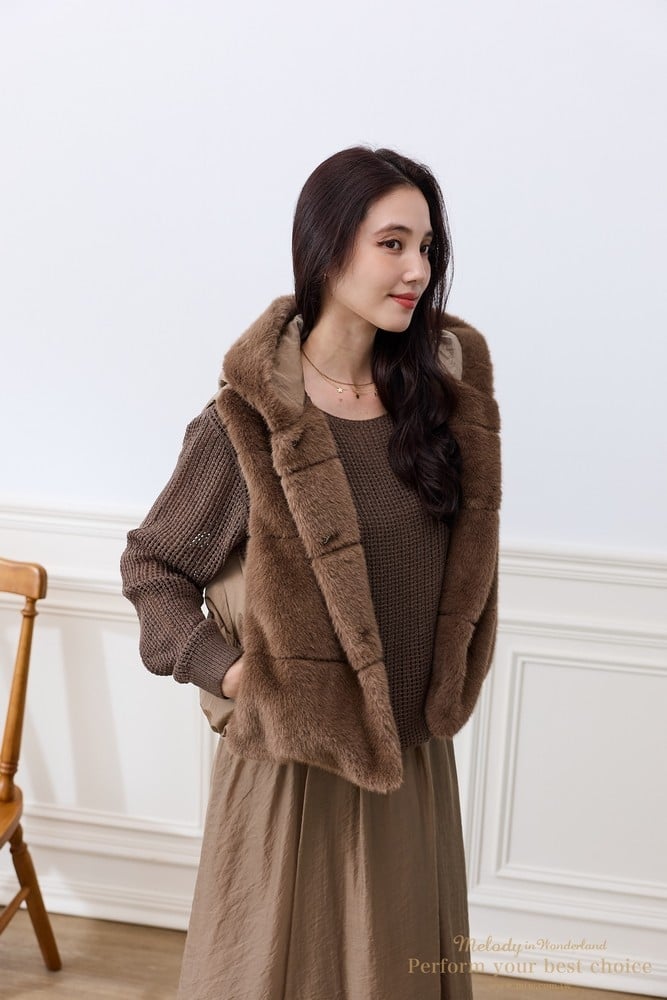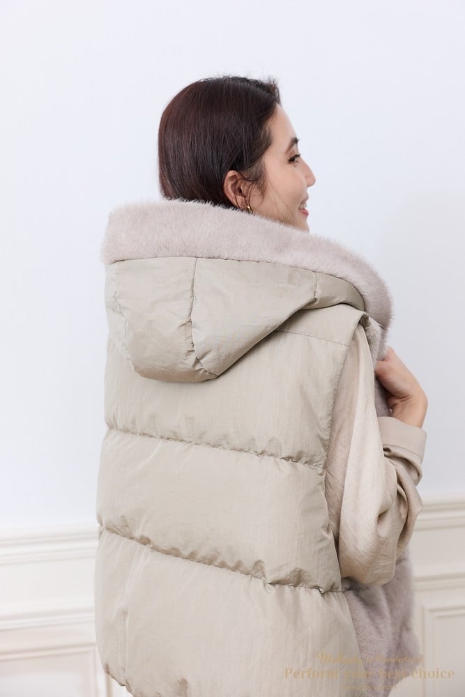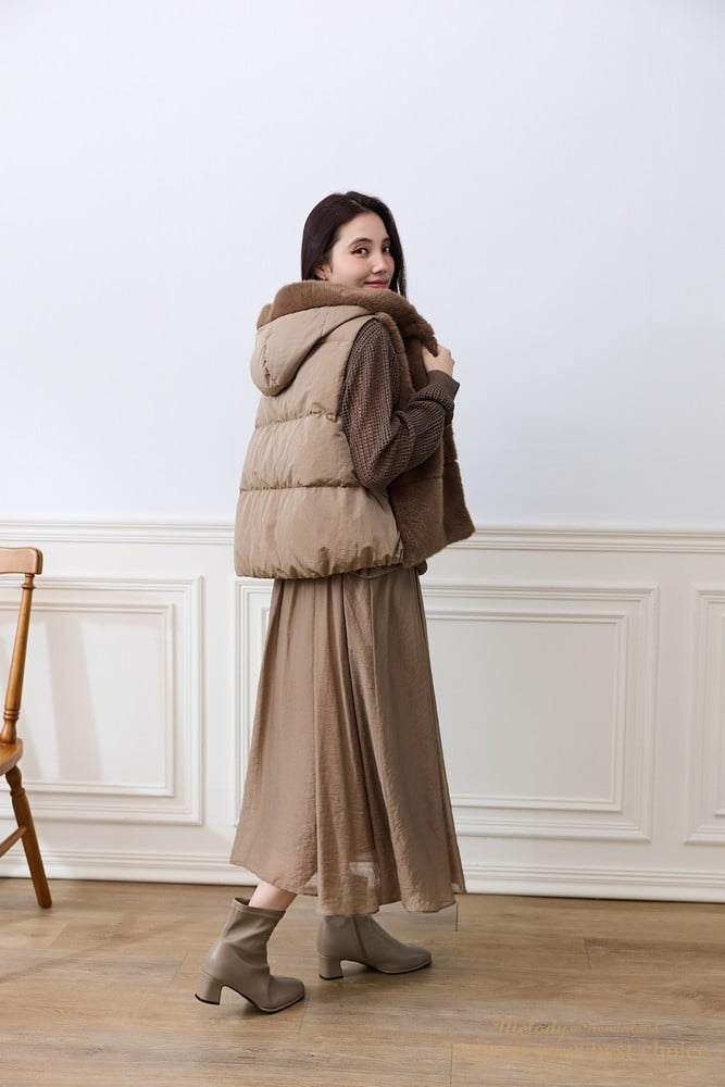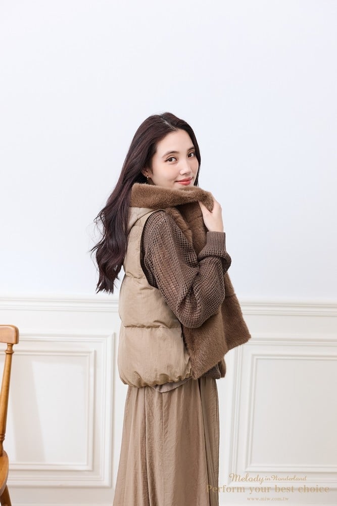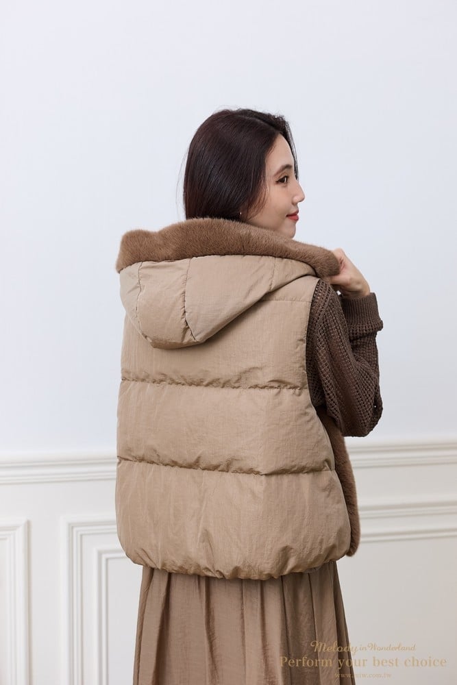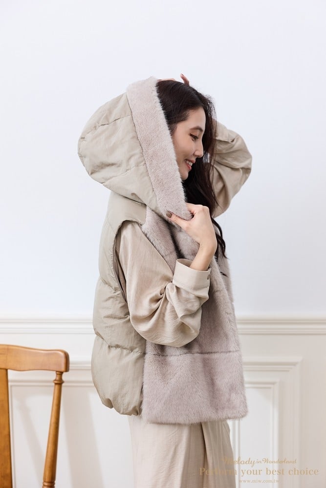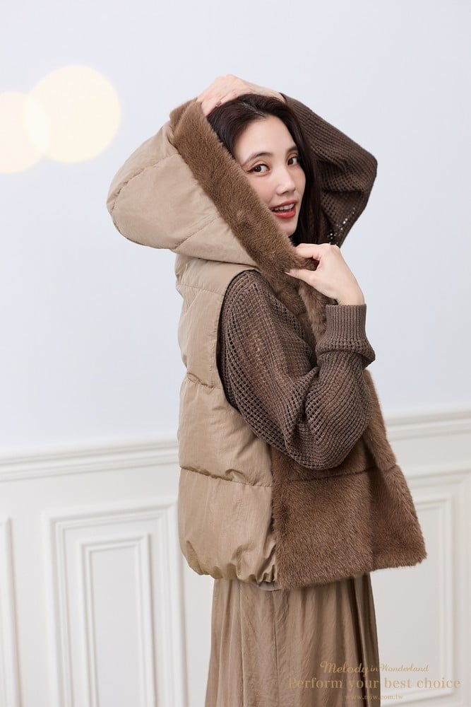 2511-090 質感毛海拼接鵝絨連帽背心(3色)