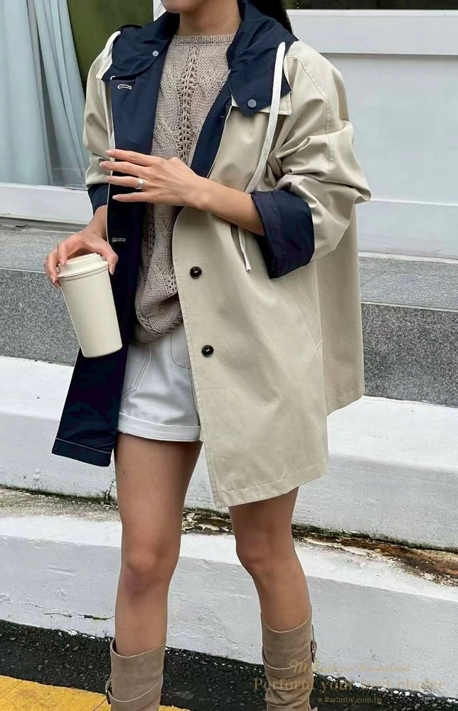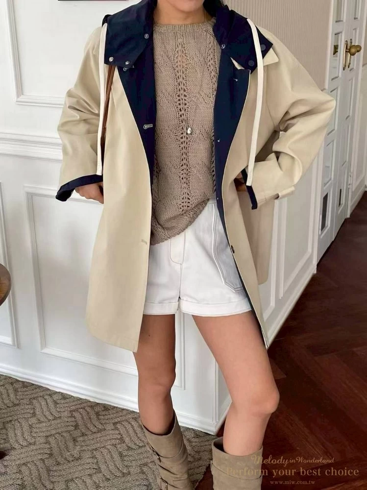 布料無彈性/有內裡/兩側有口袋/連帽可拆