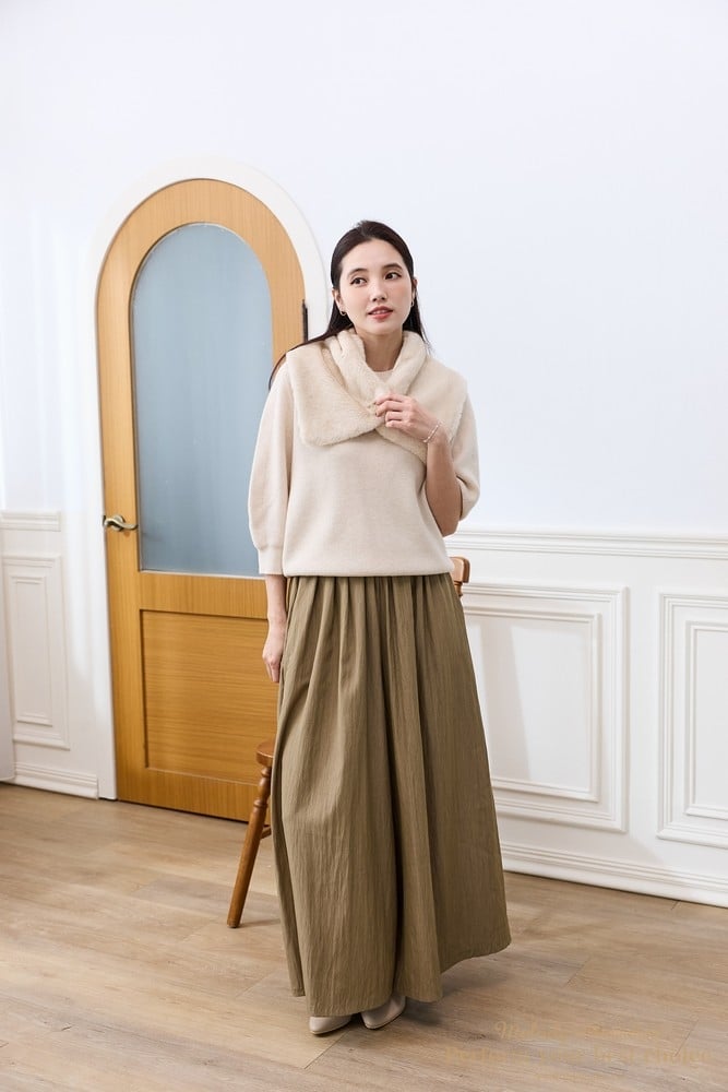 2511-161 隱形鬆緊帶設計抓摺造型褲裙(3色)