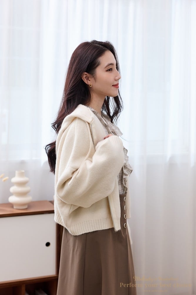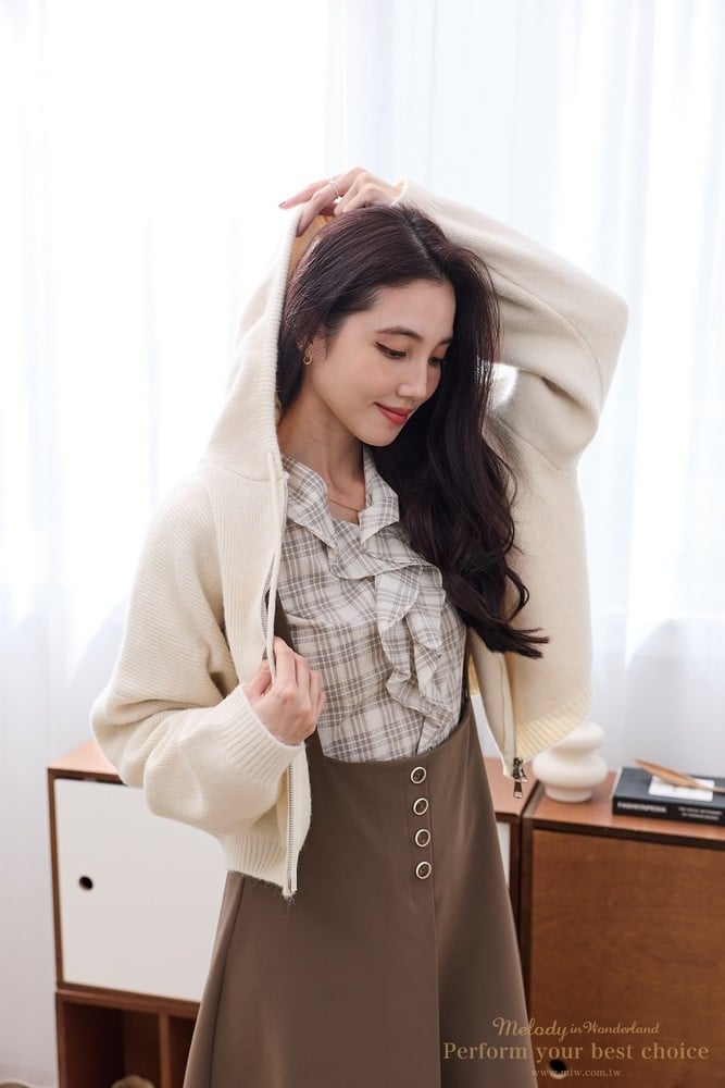 2511-094 落肩連袖連帽拉鍊外套(3色)