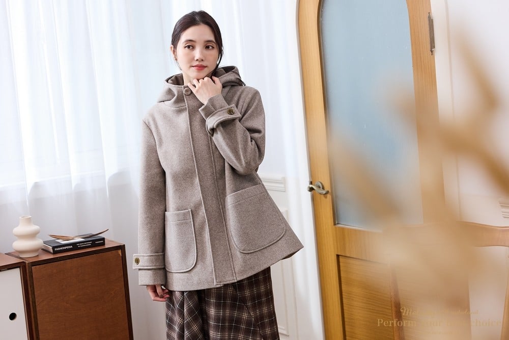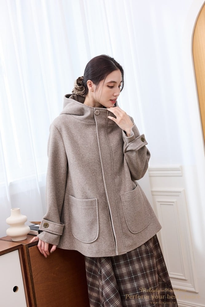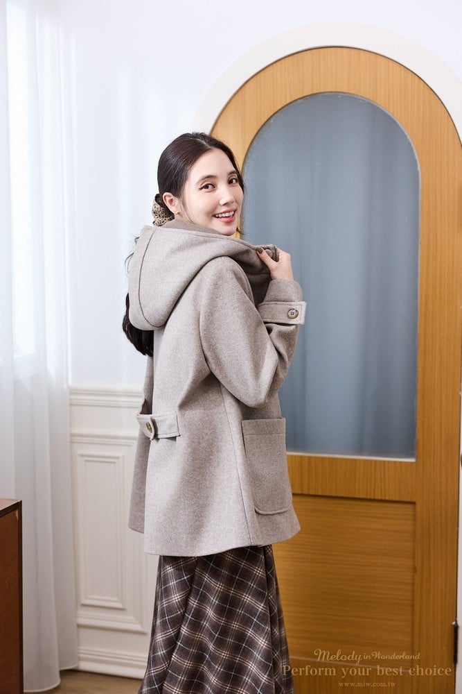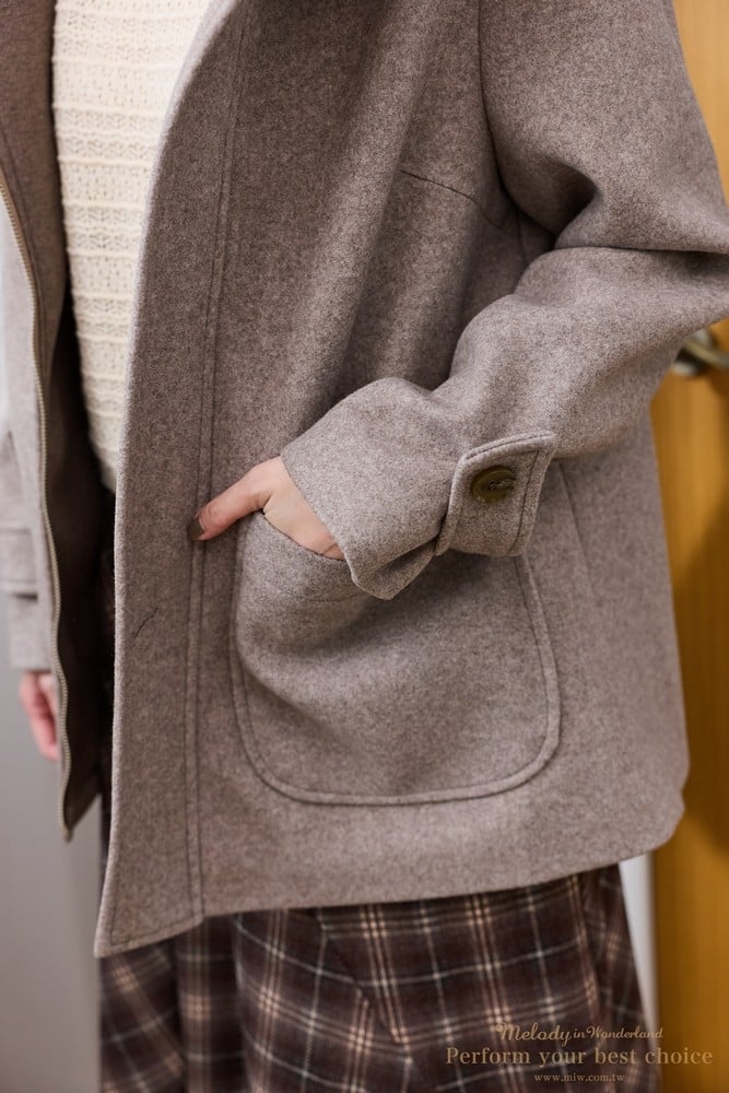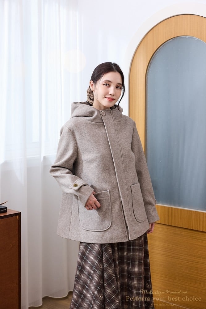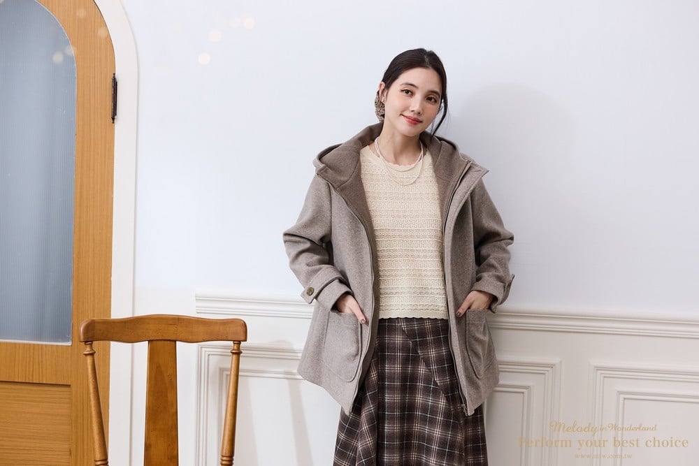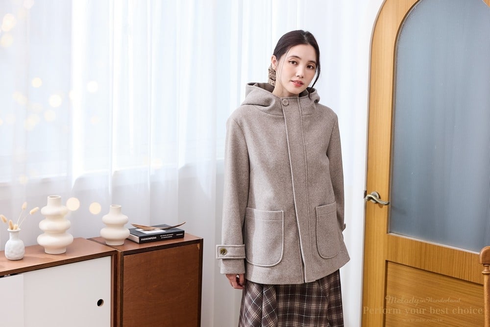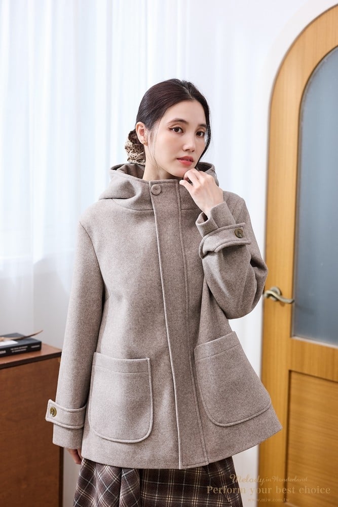 2511-096 氣質連帽拉鍊造型羊毛外套(3色)