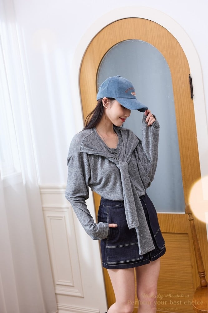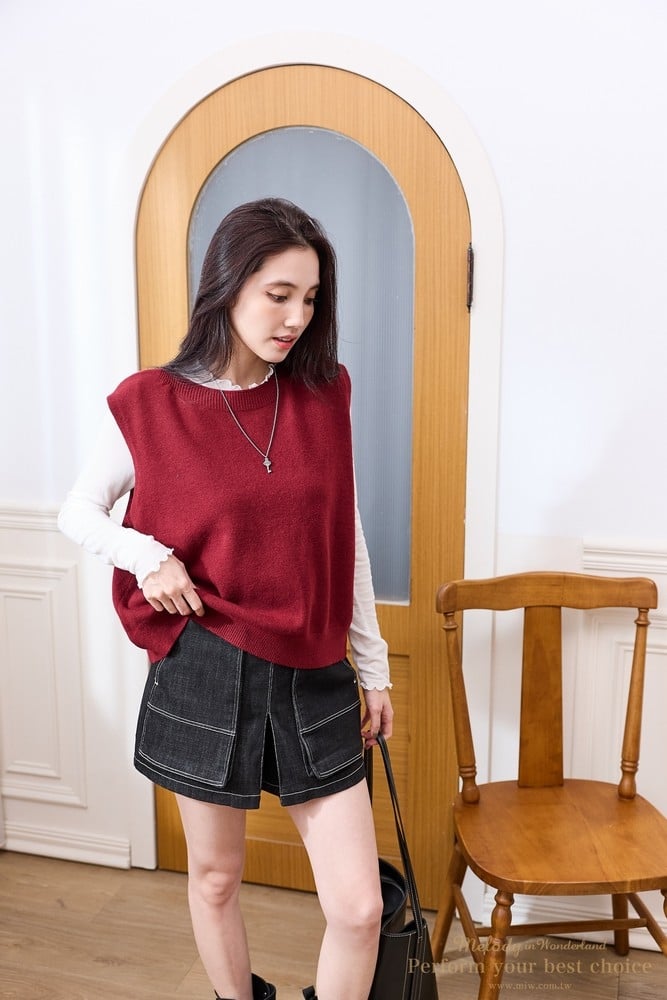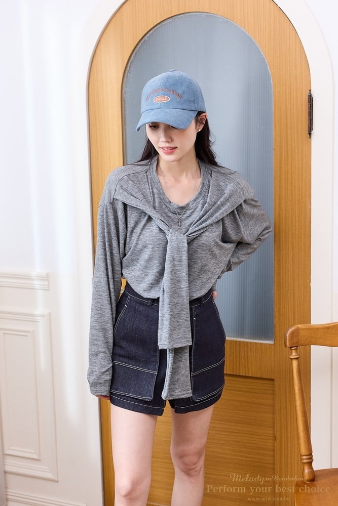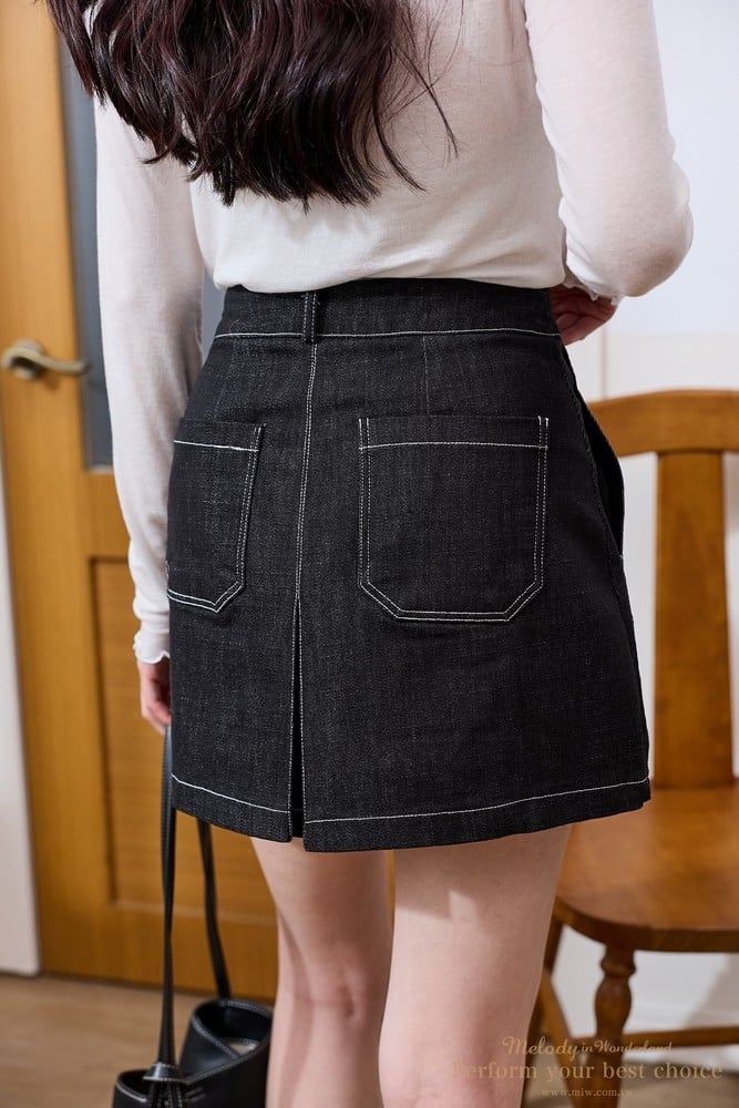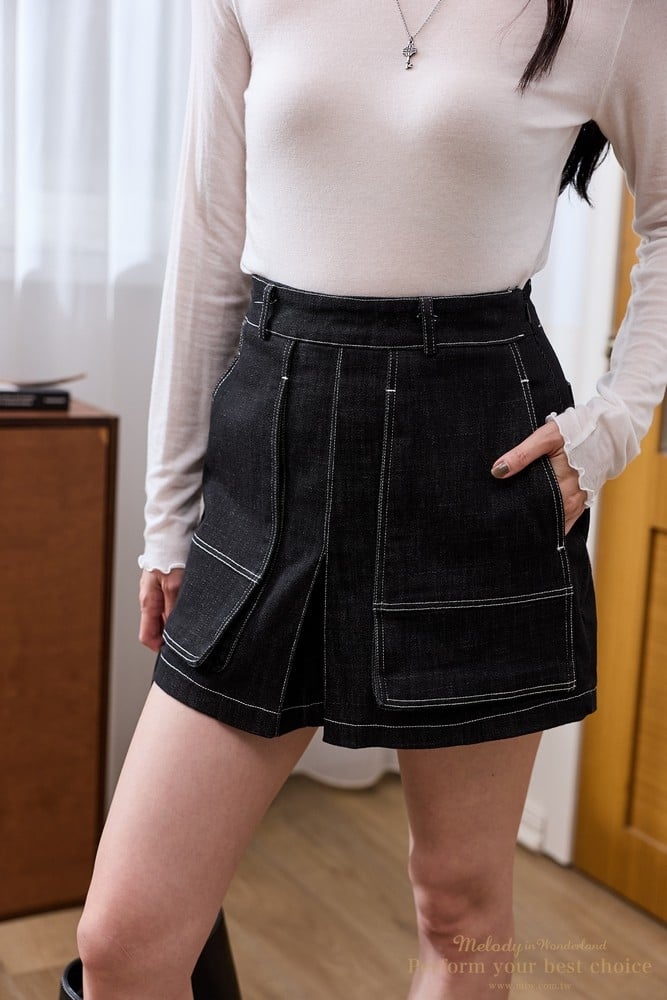 立體車線雙口袋造型牛仔褲裙(2色)