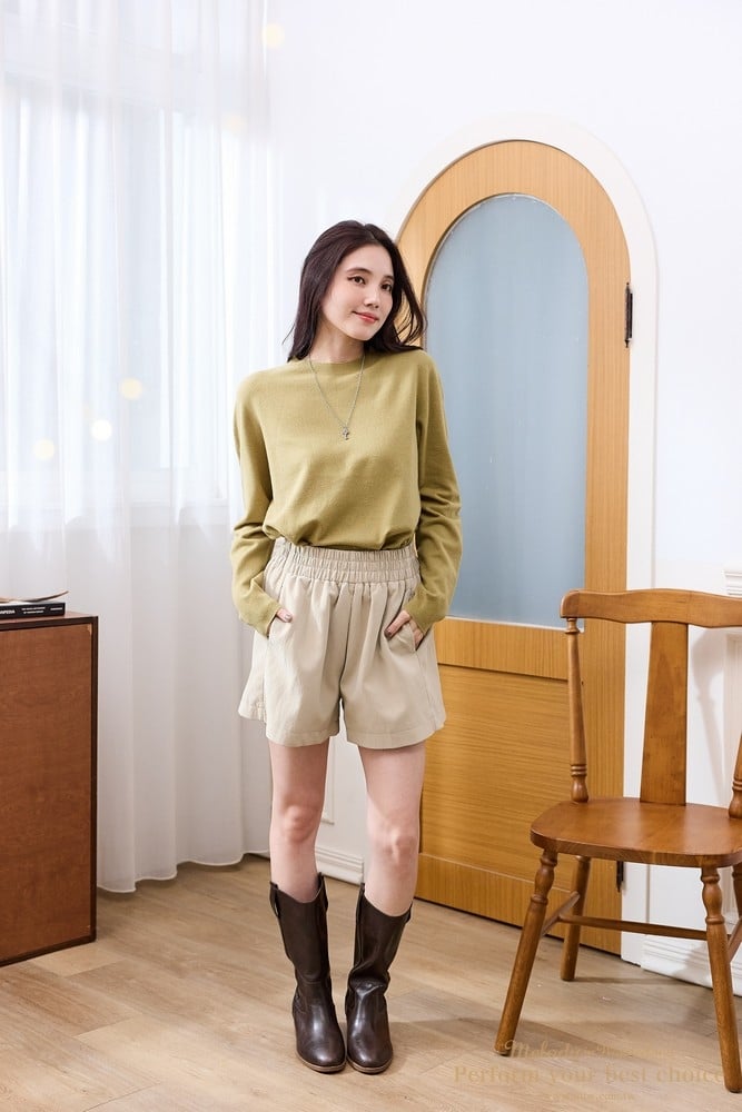 2511-155 寬腰鬆緊帶造型短褲(3色)