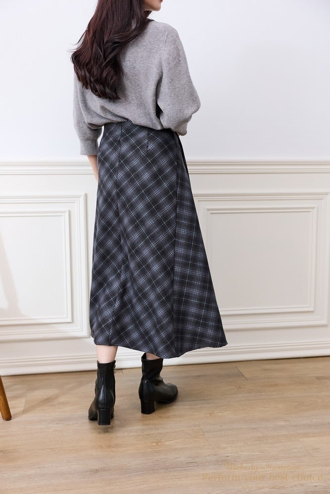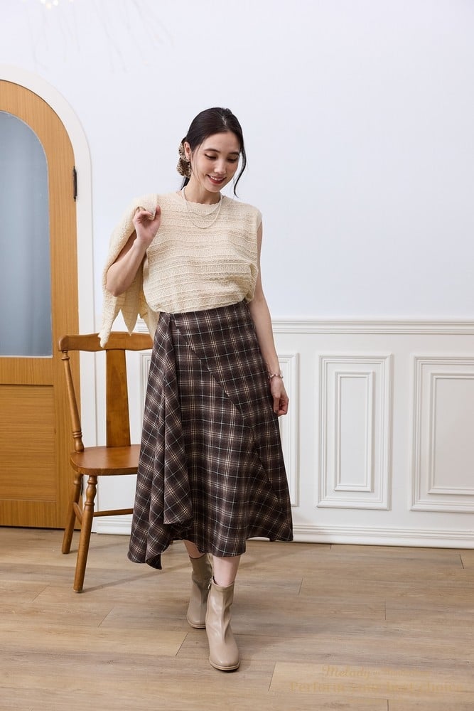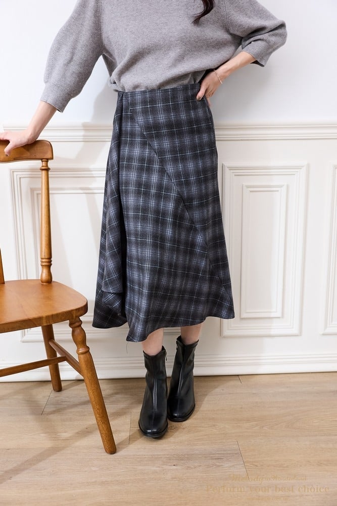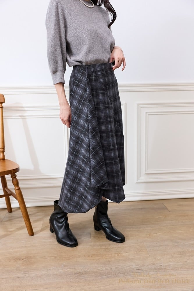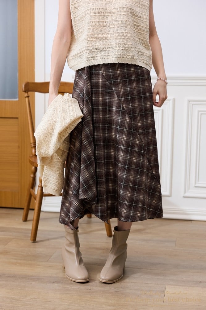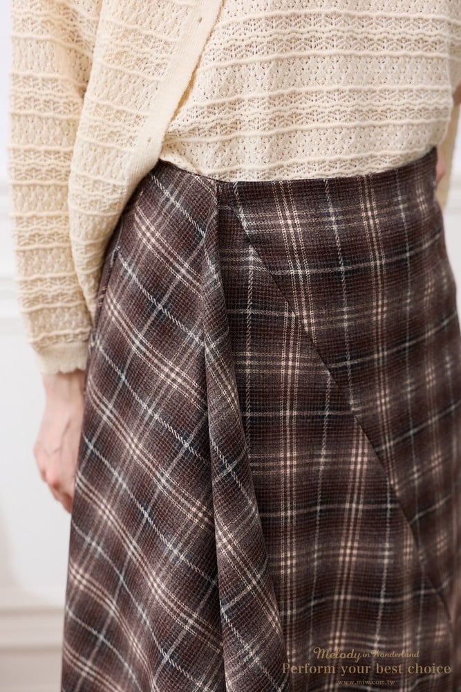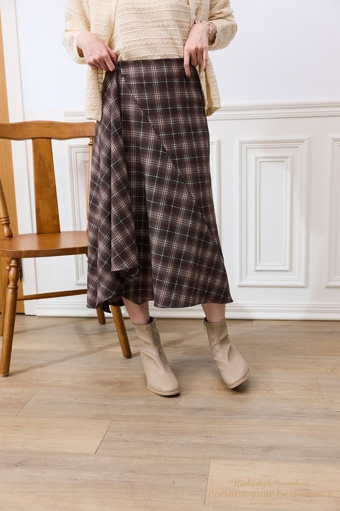 2511-145 不對稱斜擺造型格紋裙(2色)