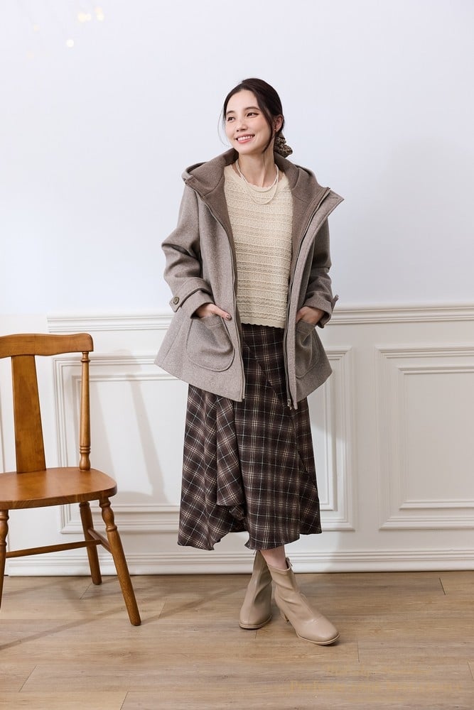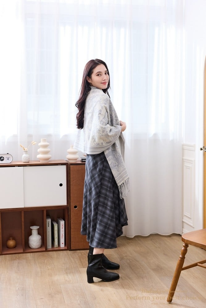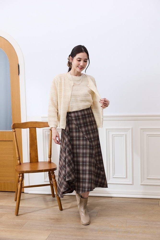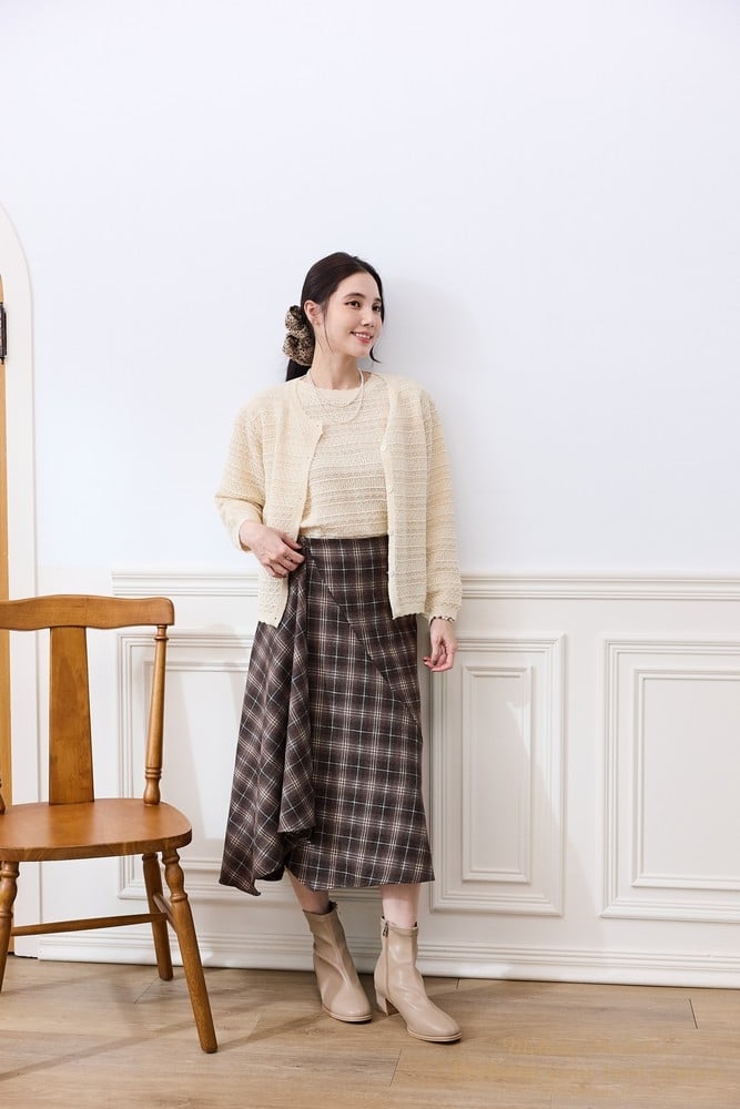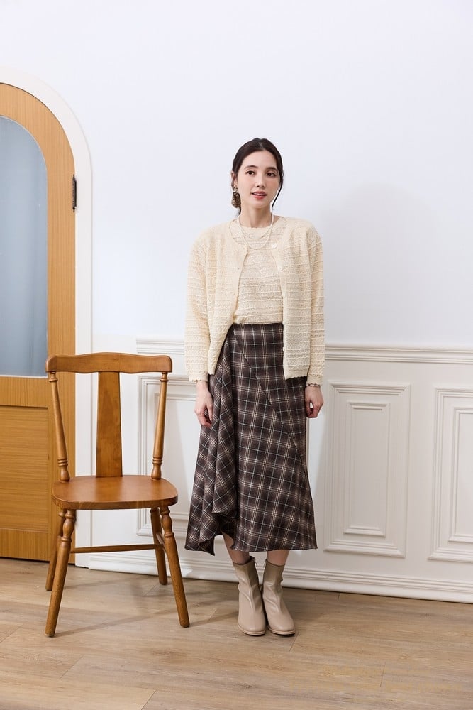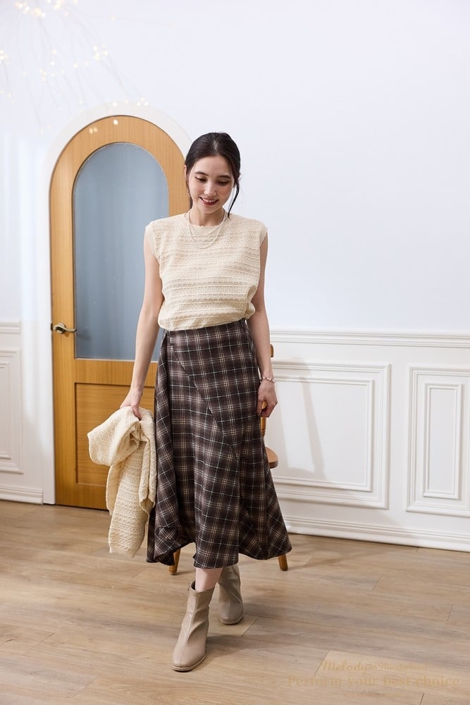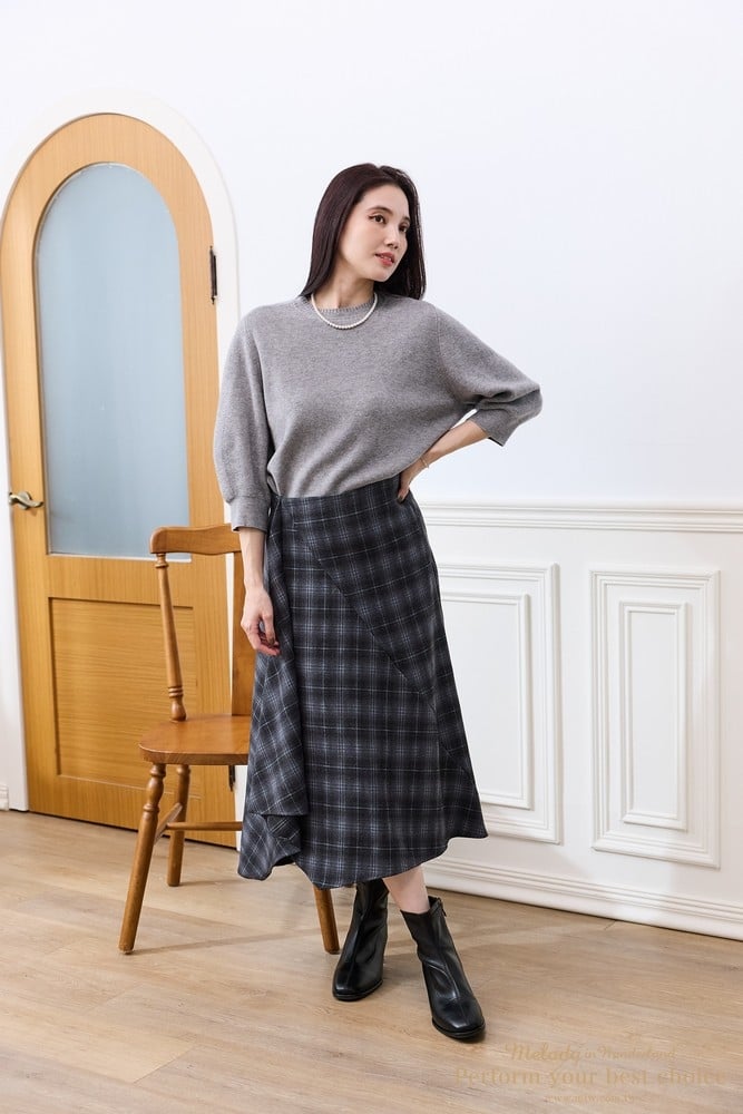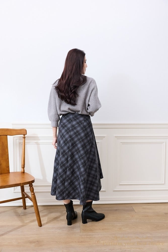 2511-145 不對稱斜擺造型格紋裙(2色)