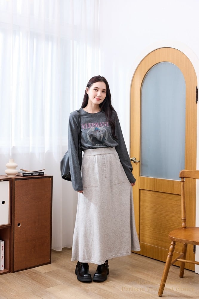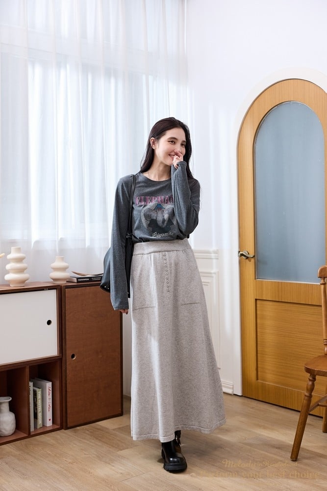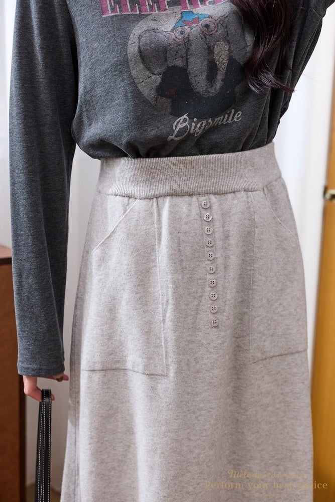 2511-146 排釦造型A-LINE垂感針織裙(2色)