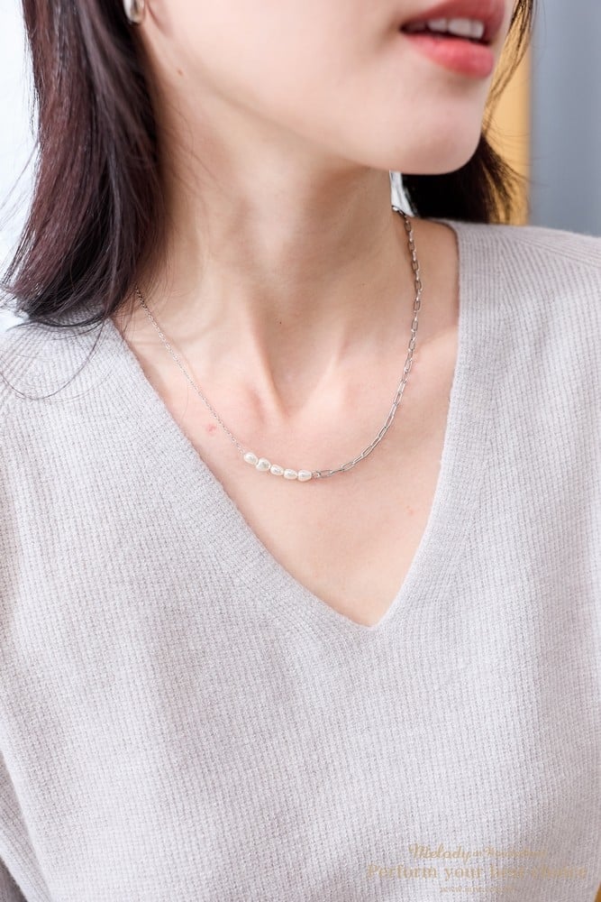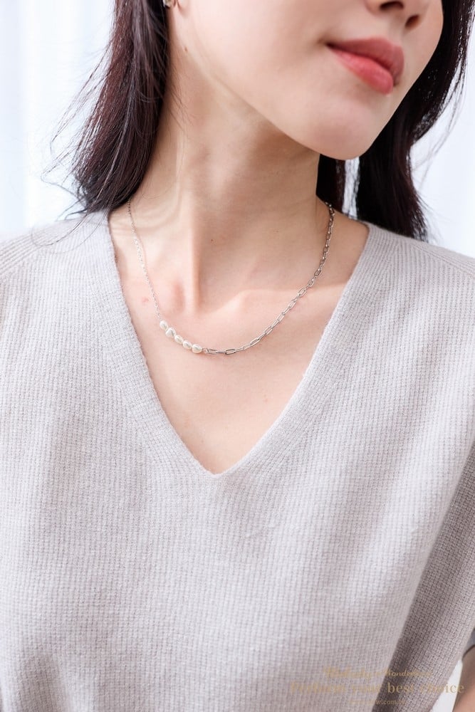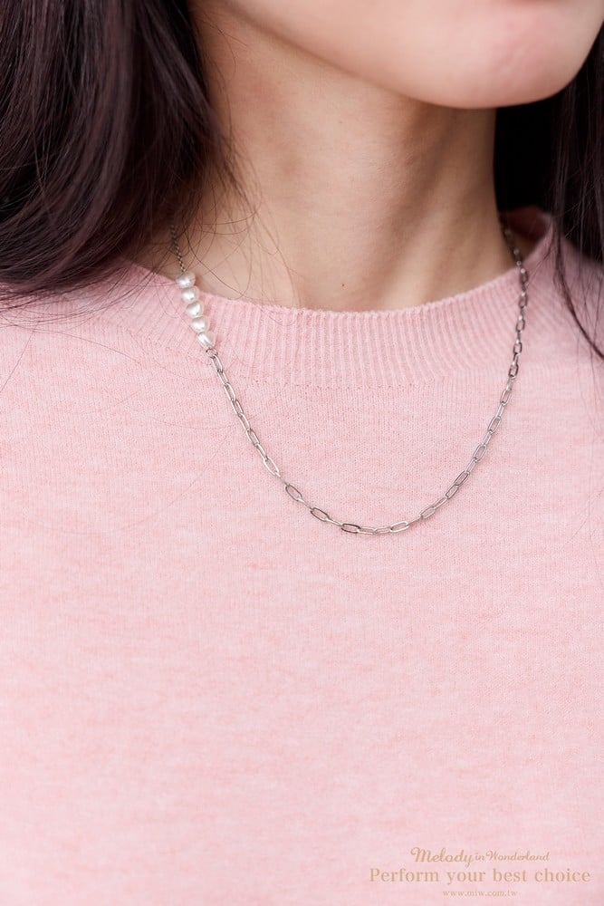 2511-250 愛心珍珠造拼接鍊條造型項鍊