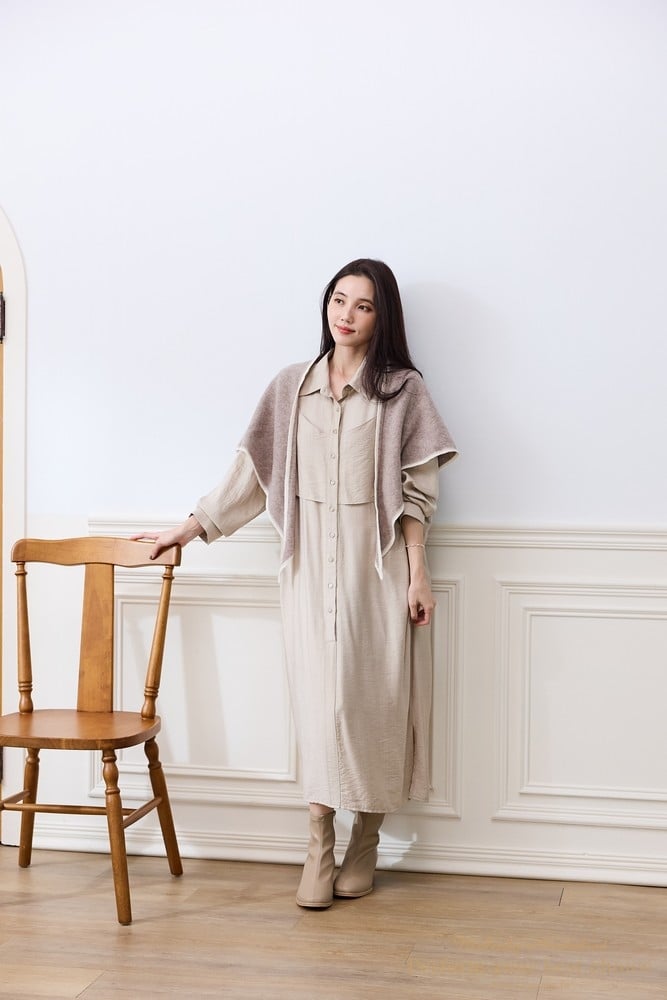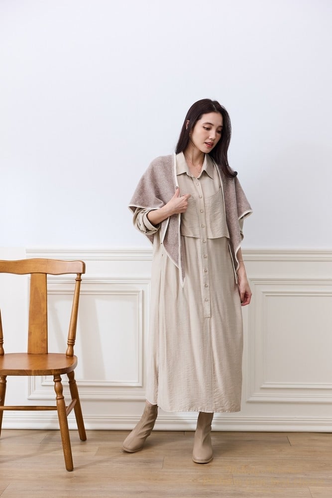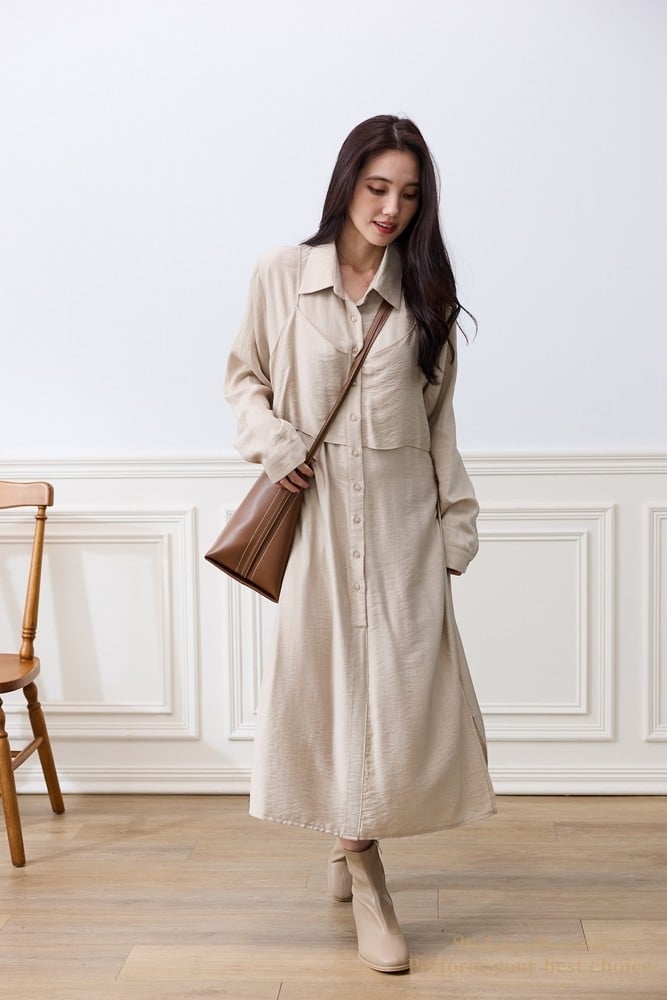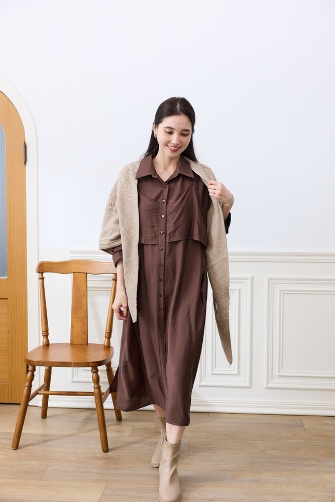 自訂款-假兩件背心外罩襯衫長洋(2色)