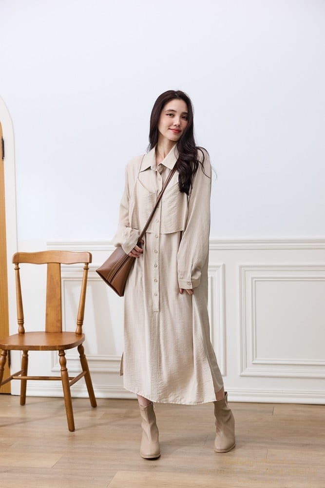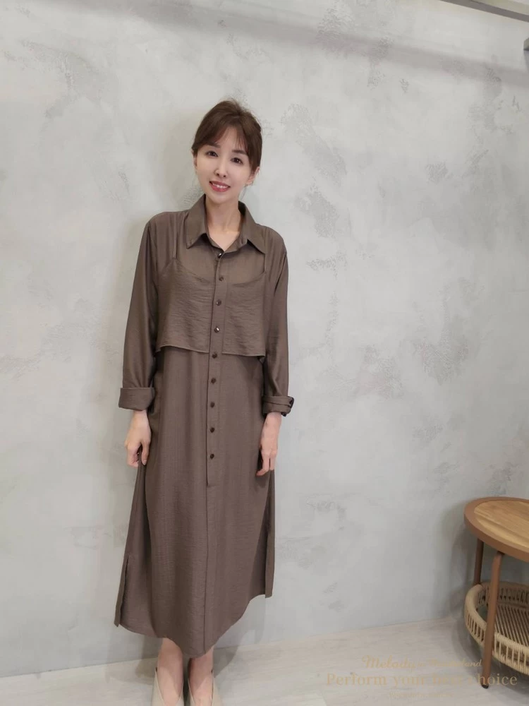 2511-114 自訂款-假兩件背心外罩襯衫長洋(2色)