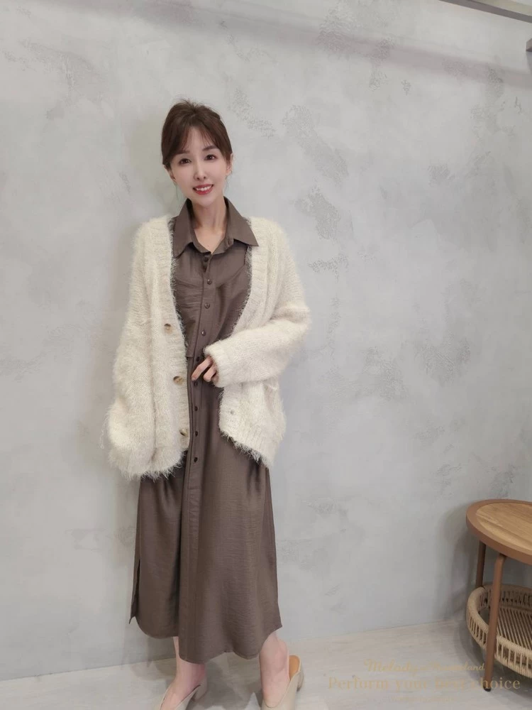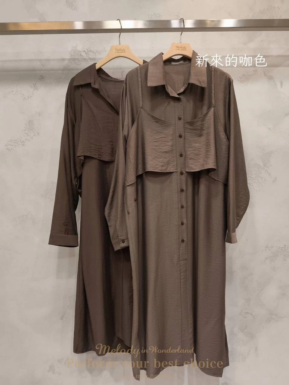 (僅販售現貨)-自訂款-假兩件背心外罩襯衫長洋(2色)