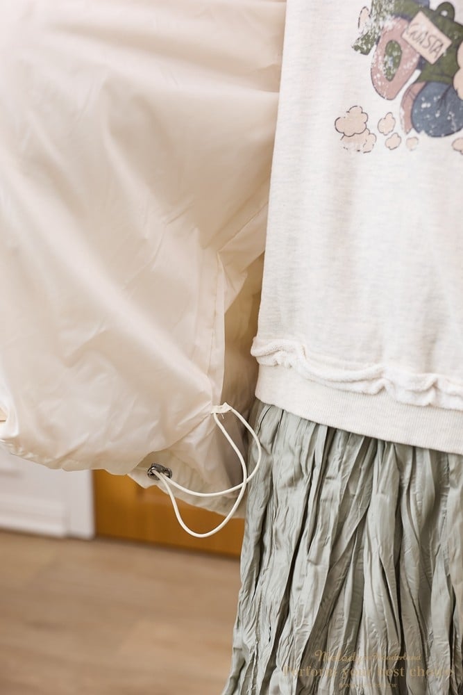 此款外套超不挑身形寬鬆版型(S-2XL皆可穿,孕媽咪也沒問題)下擺抽繩拉一下,視覺上會比較俐落