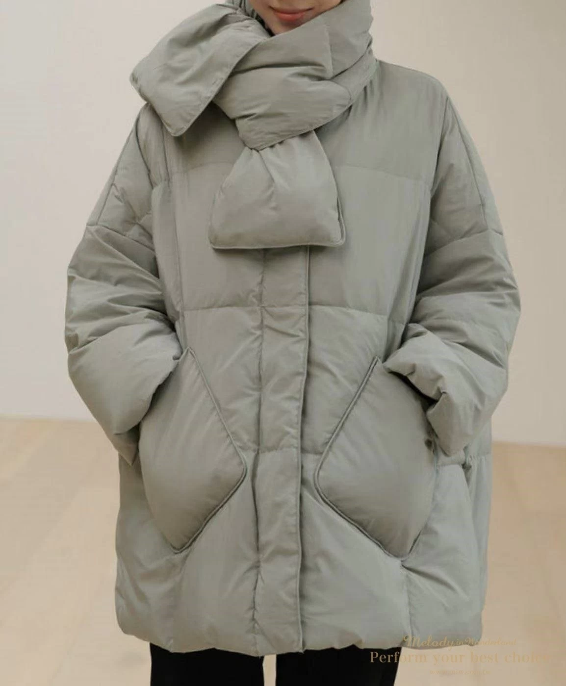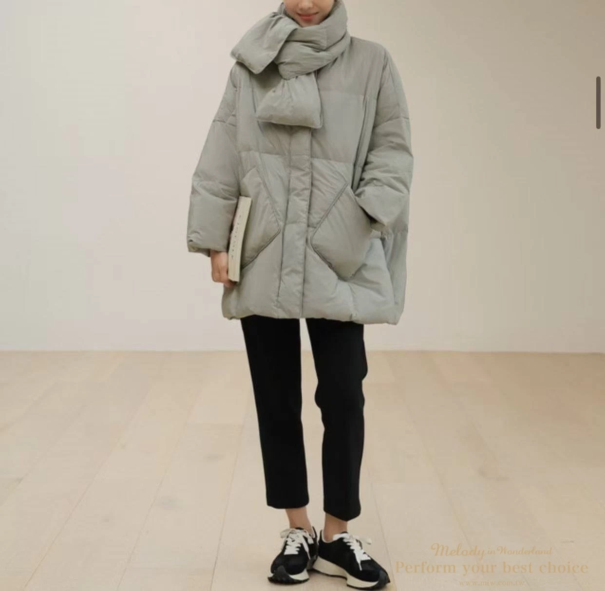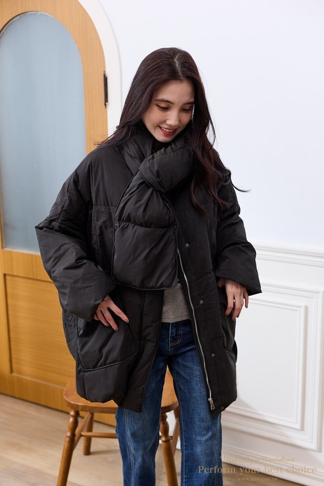 2511-113 圍巾造型澎暖羽絨外套(3色)