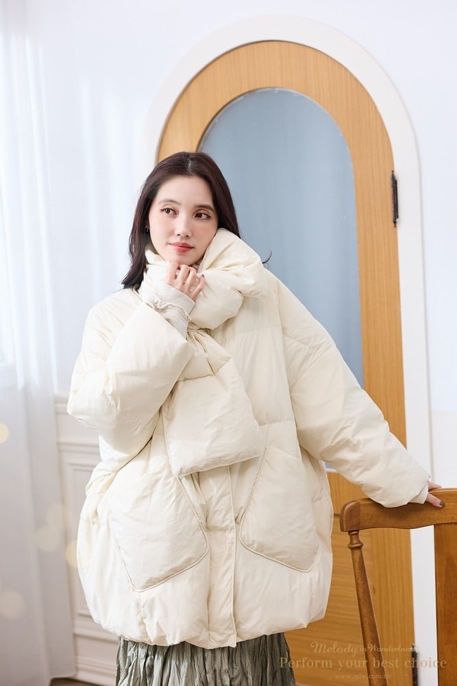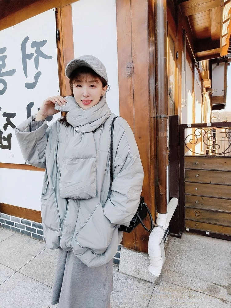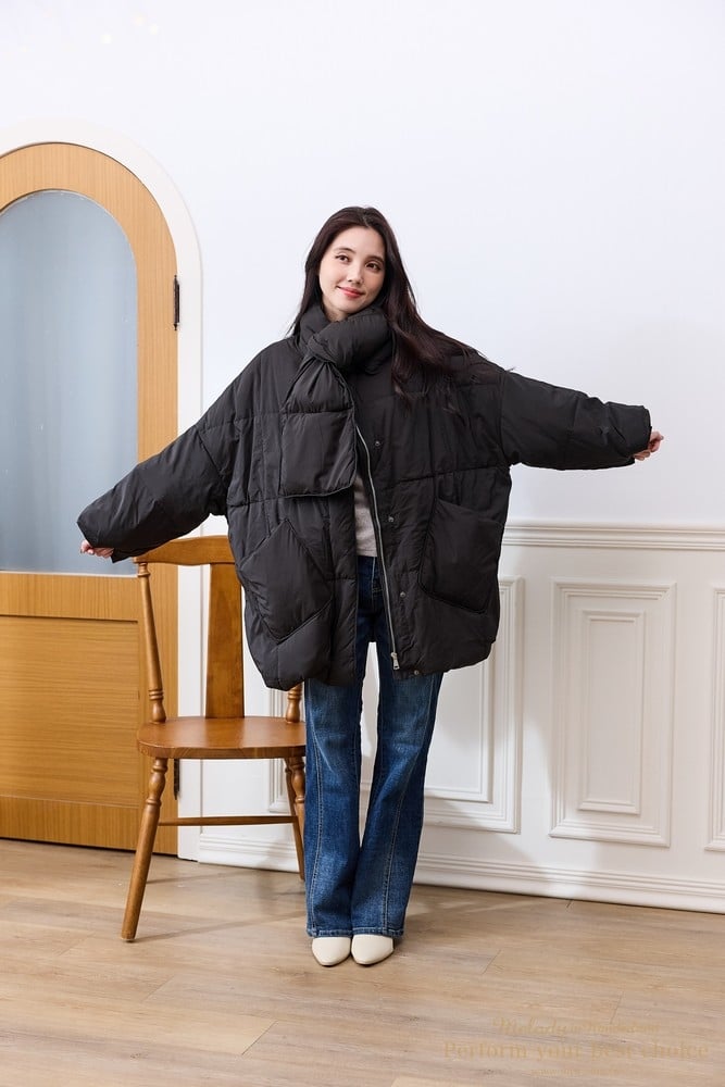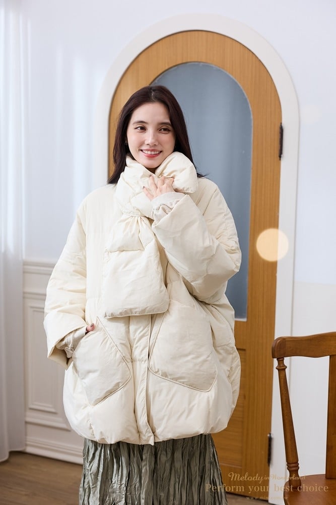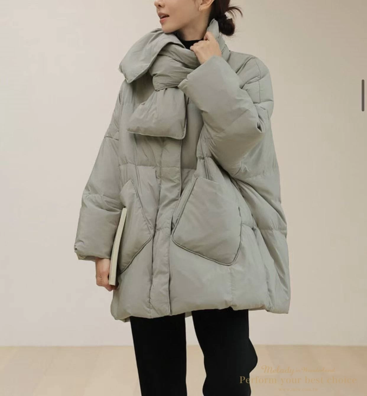 2511-113 圍巾造型澎暖羽絨外套(3色)