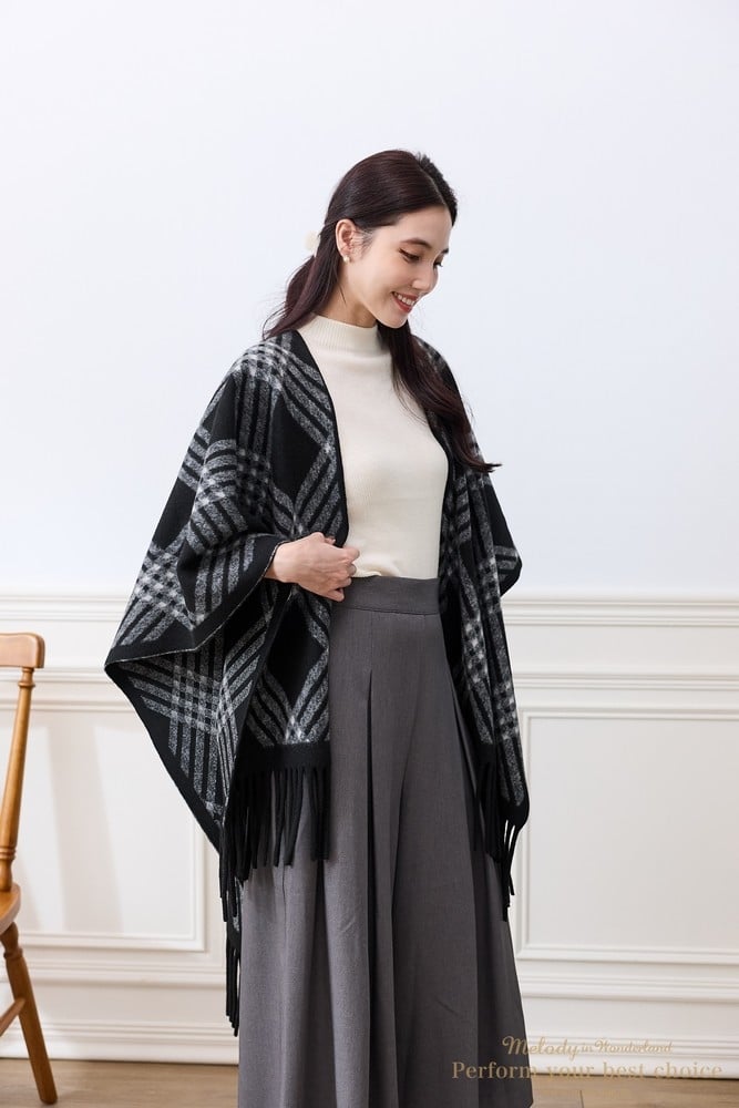 2511-217 蘇格蘭紋流蘇披肩(3色)
