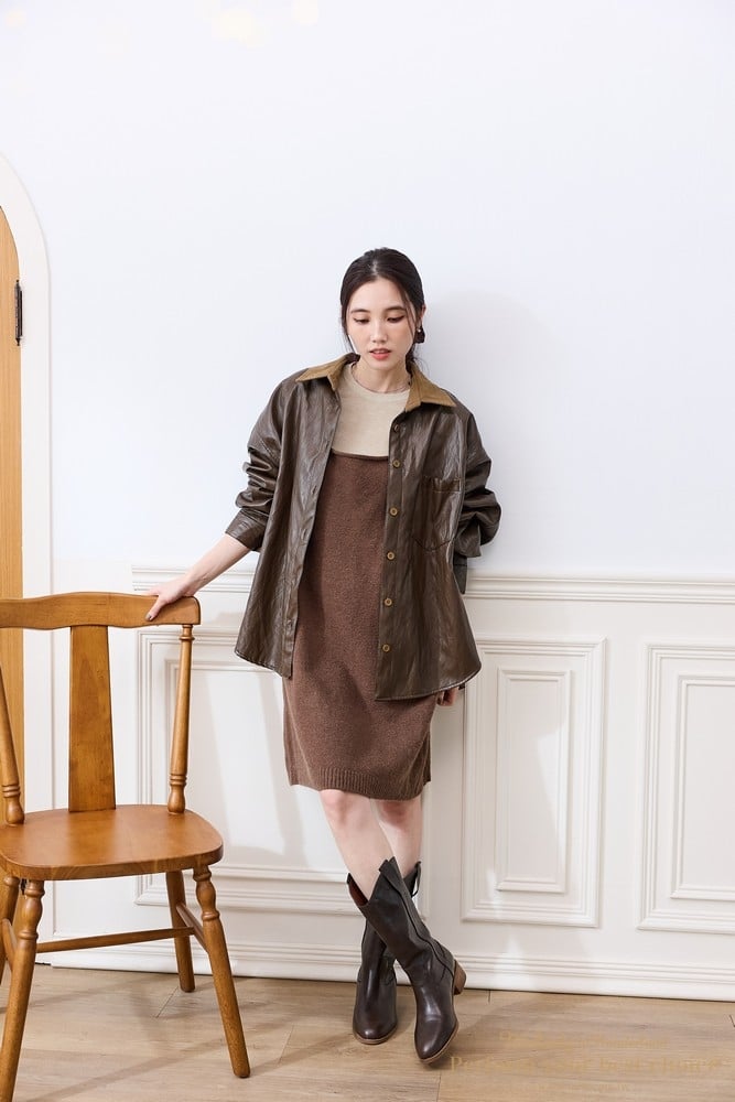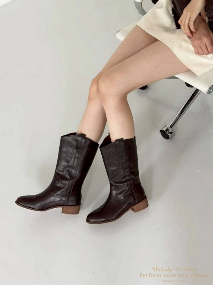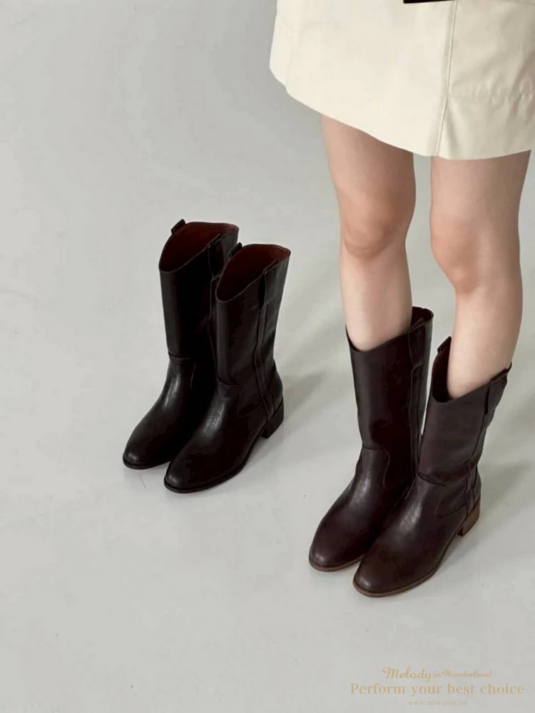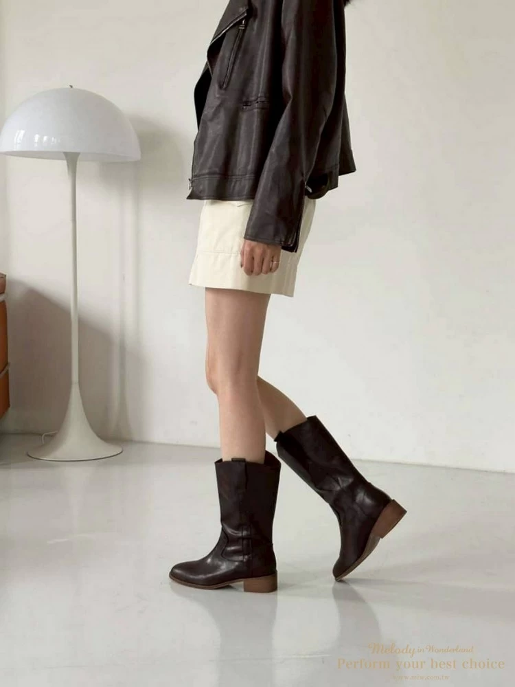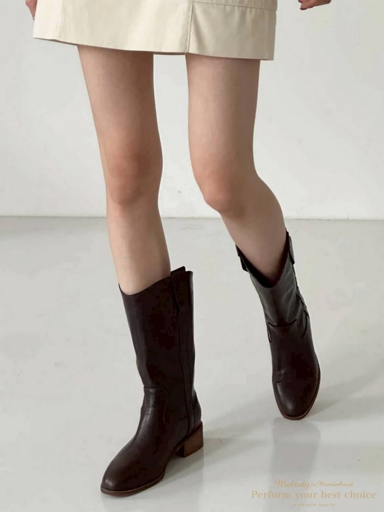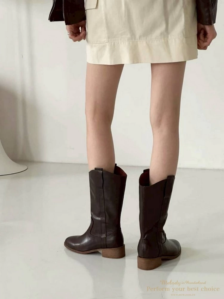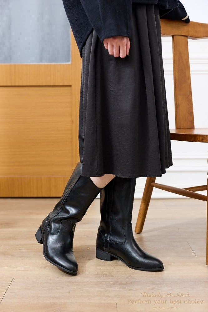 2511-280 霧面油皮騎士風中筒靴(2色)