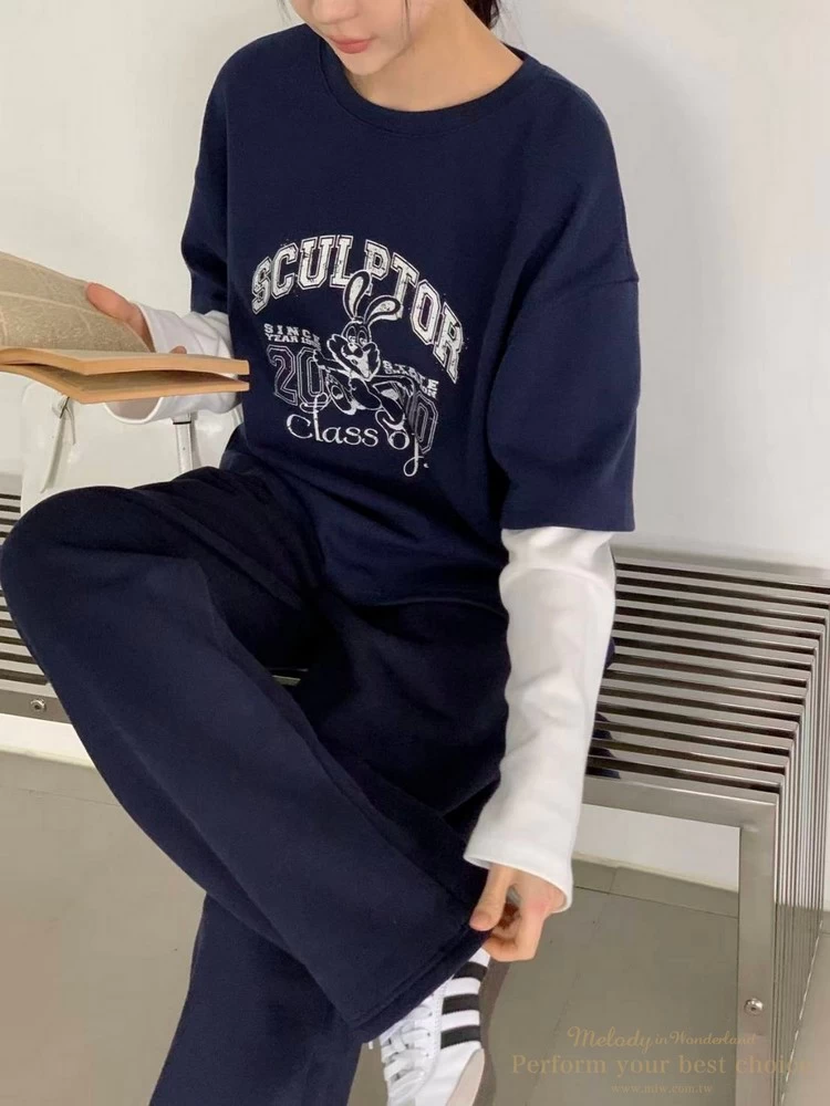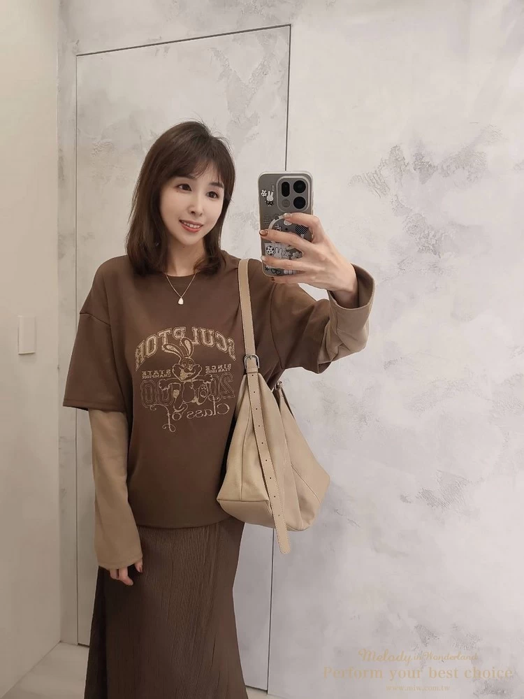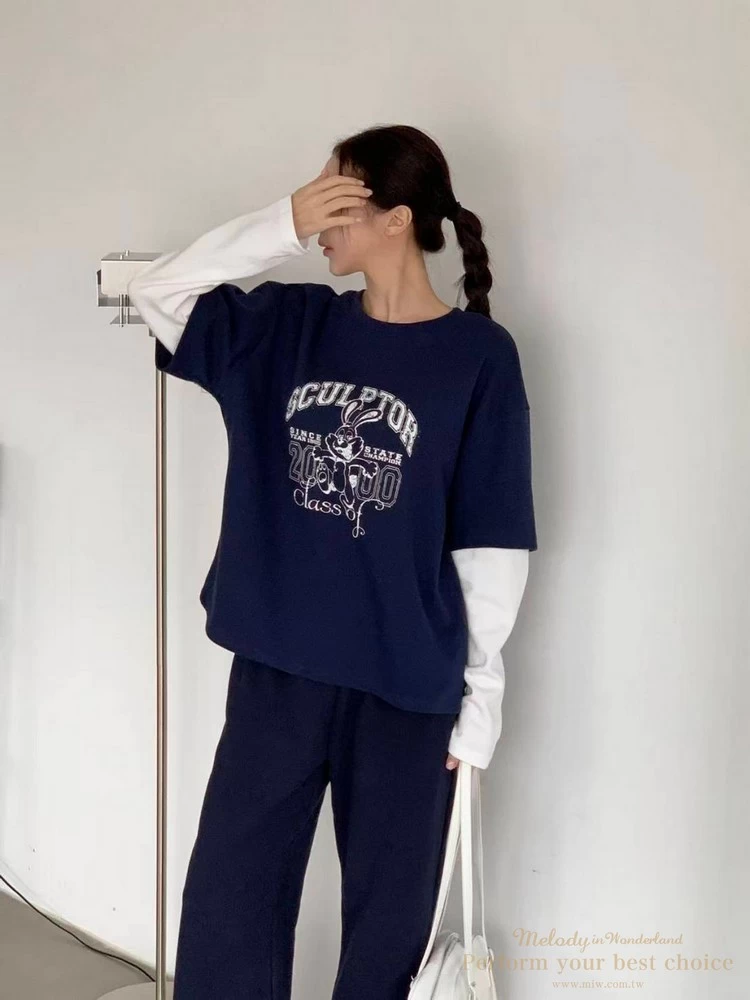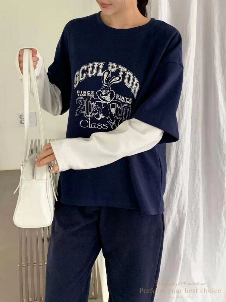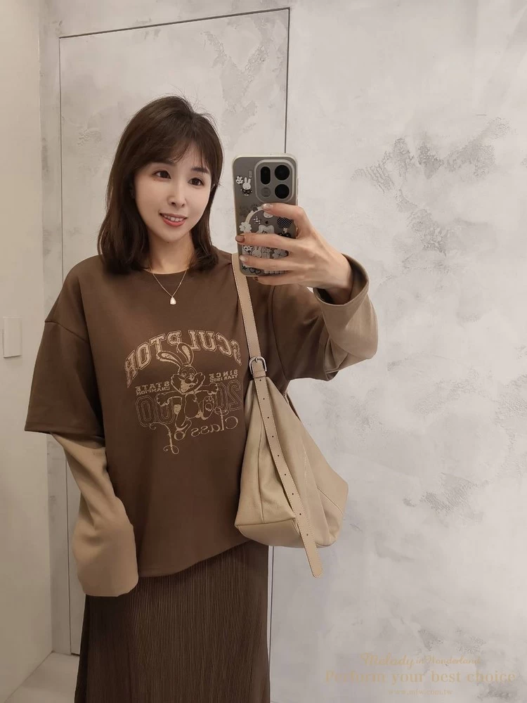 2511-045 假兩件仿舊兔子圖騰上衣(3色)