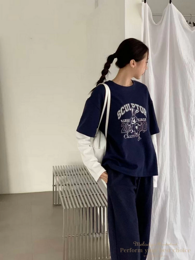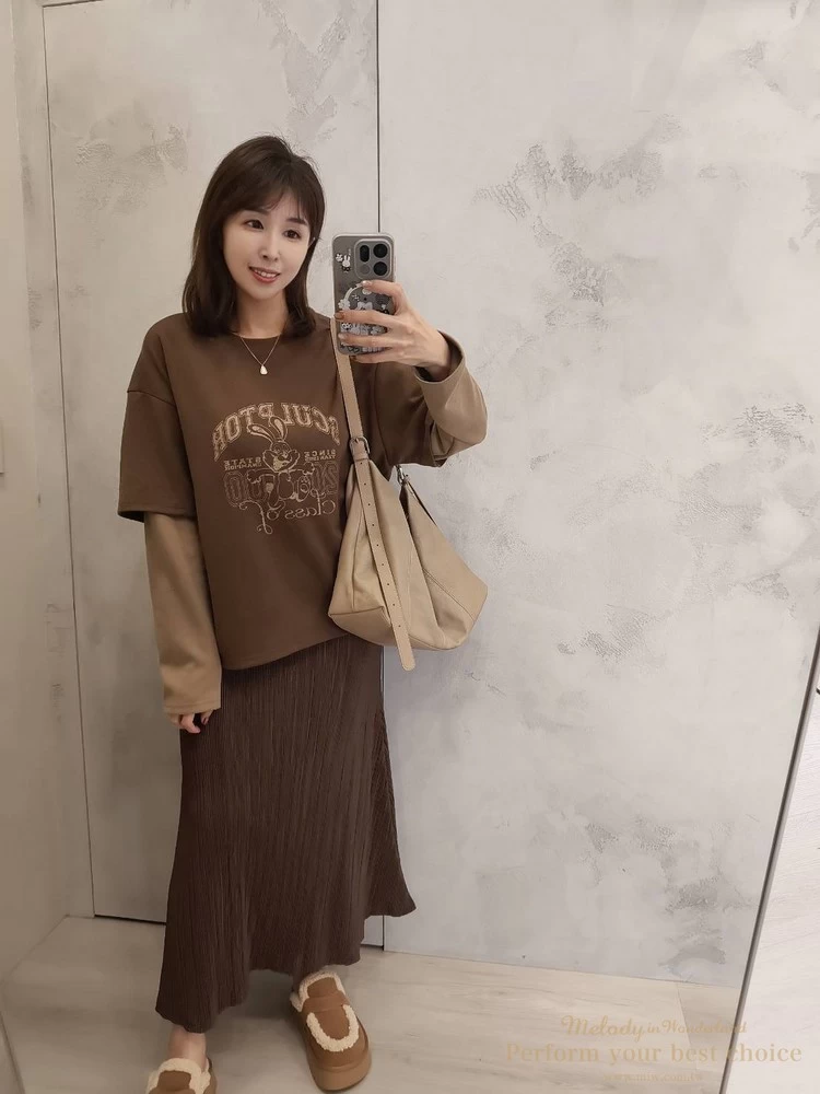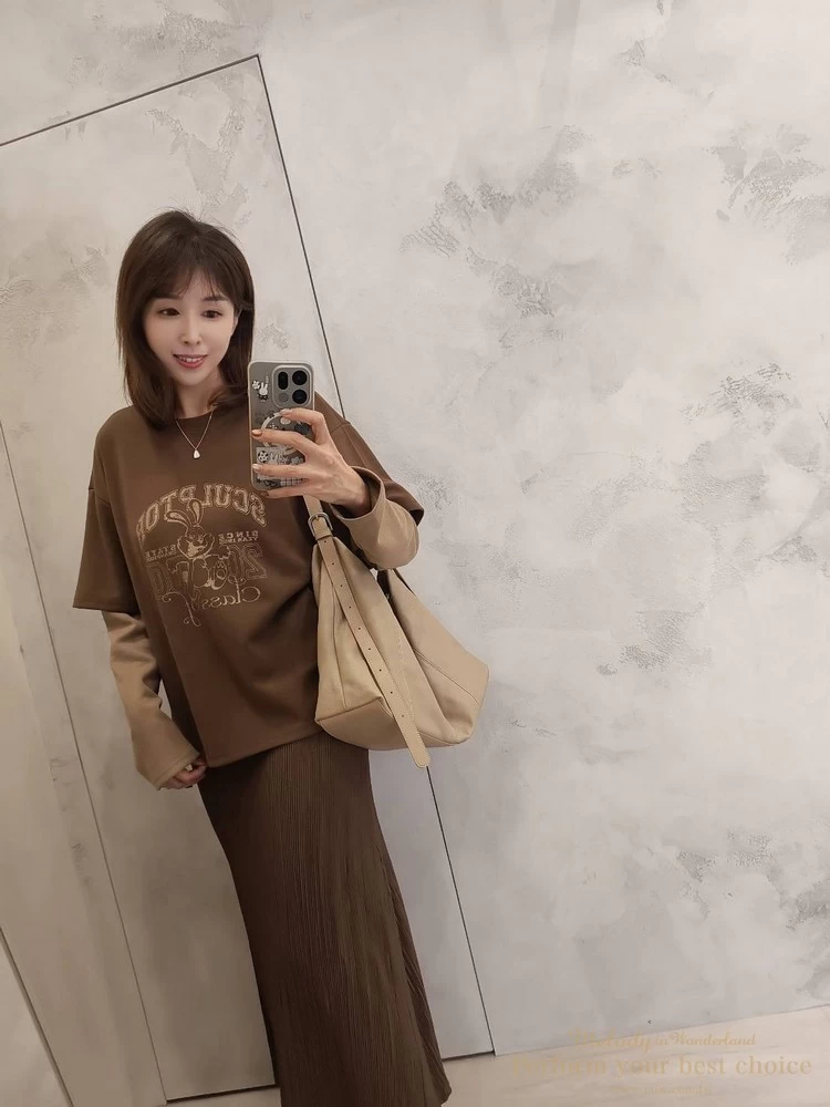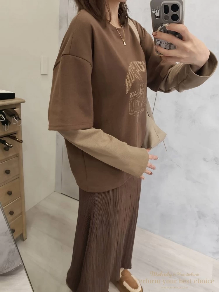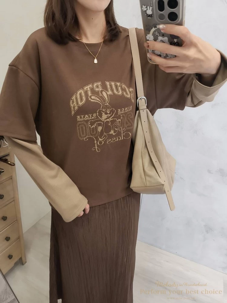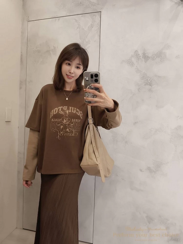 2511-045 假兩件仿舊兔子圖騰上衣(3色)